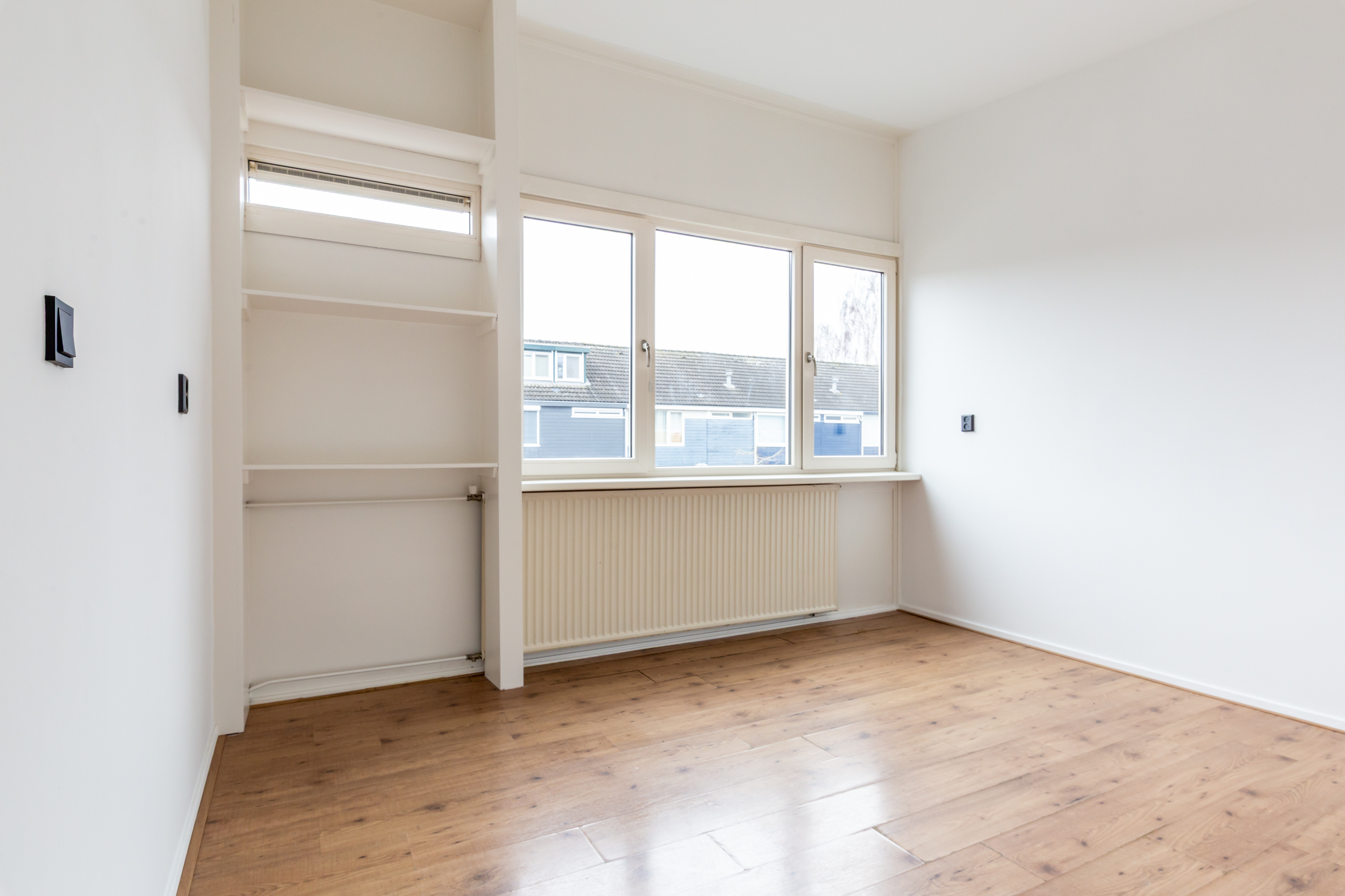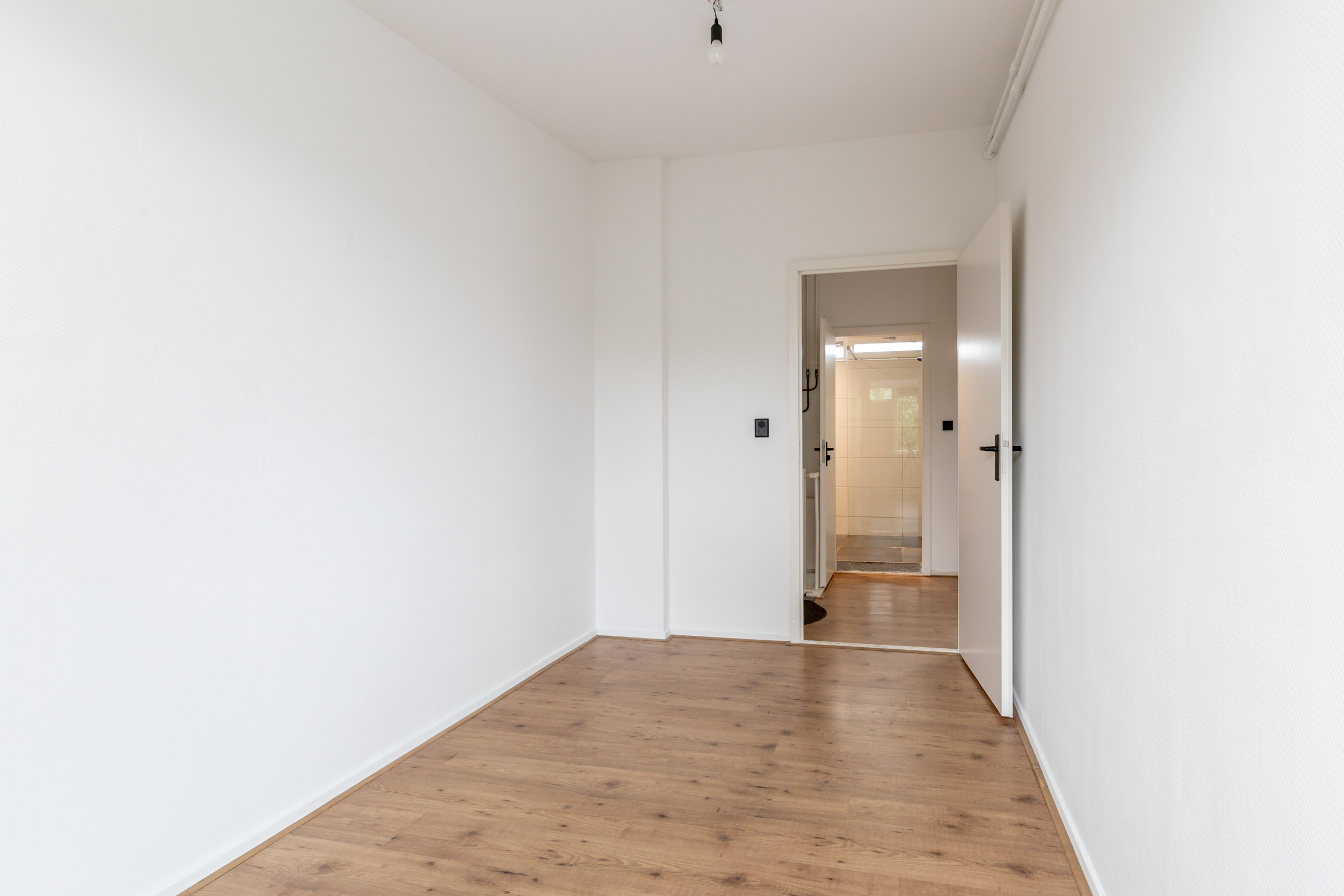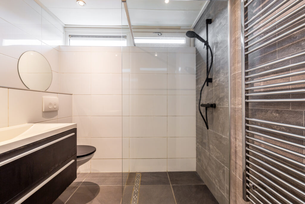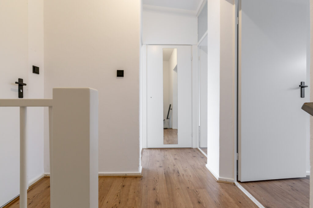 Overloop met de opstelplaats van de cv-ketel (2016), een praktische bergkast en toegang tot 3 ruime slaapkamers (ca. 16 / 12 / 9 m2), waarbij de slaapkamer aan de achterzijde is voorzien van een ingebouwde kastenwand. Moderne badkamer met een (inloop)douche, 2e toilet, wastafelmeubel, een designradiator en een raam voor de natuurlijke ventilatie. De verdieping is voorzien van een laminaatvloer.
