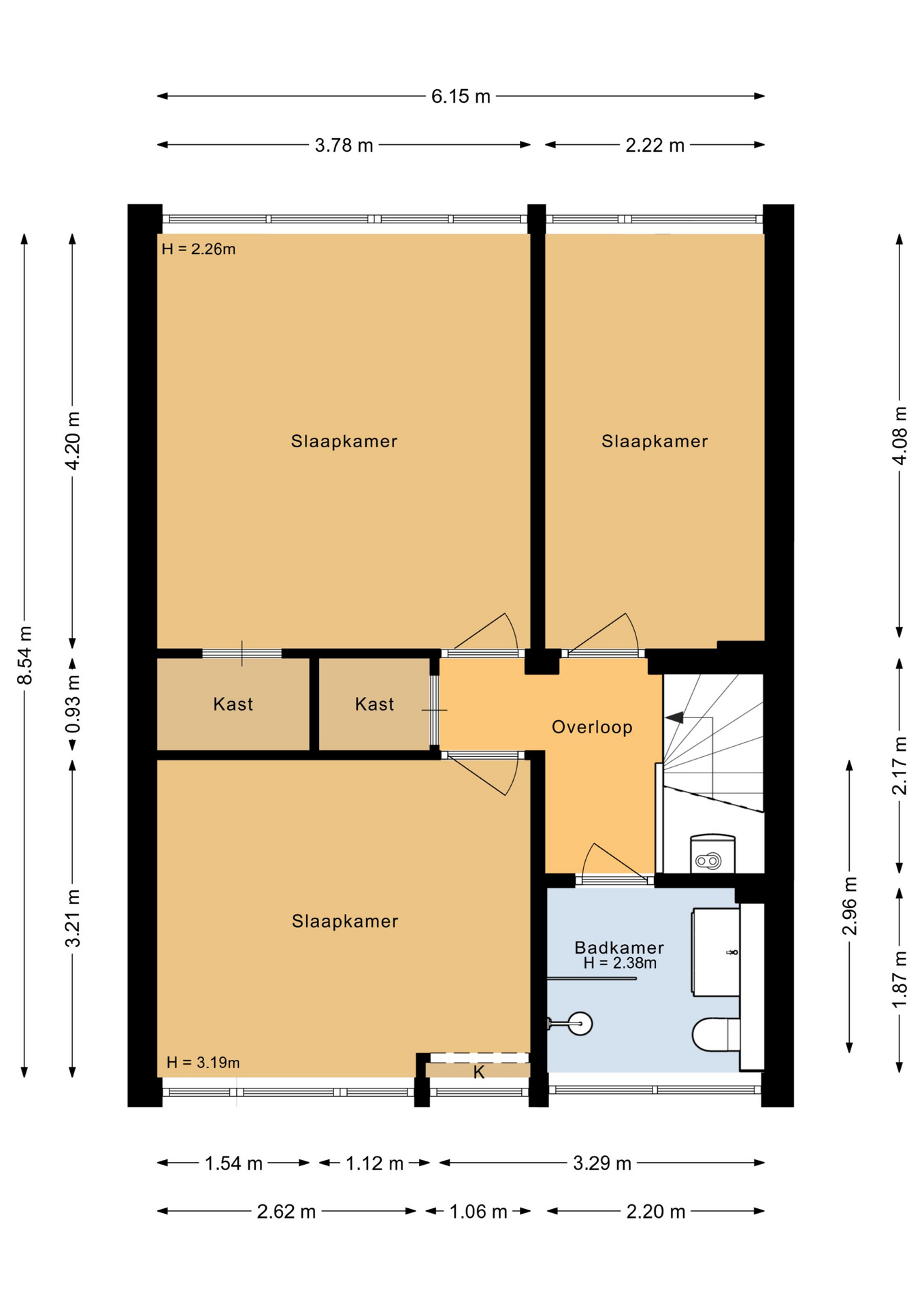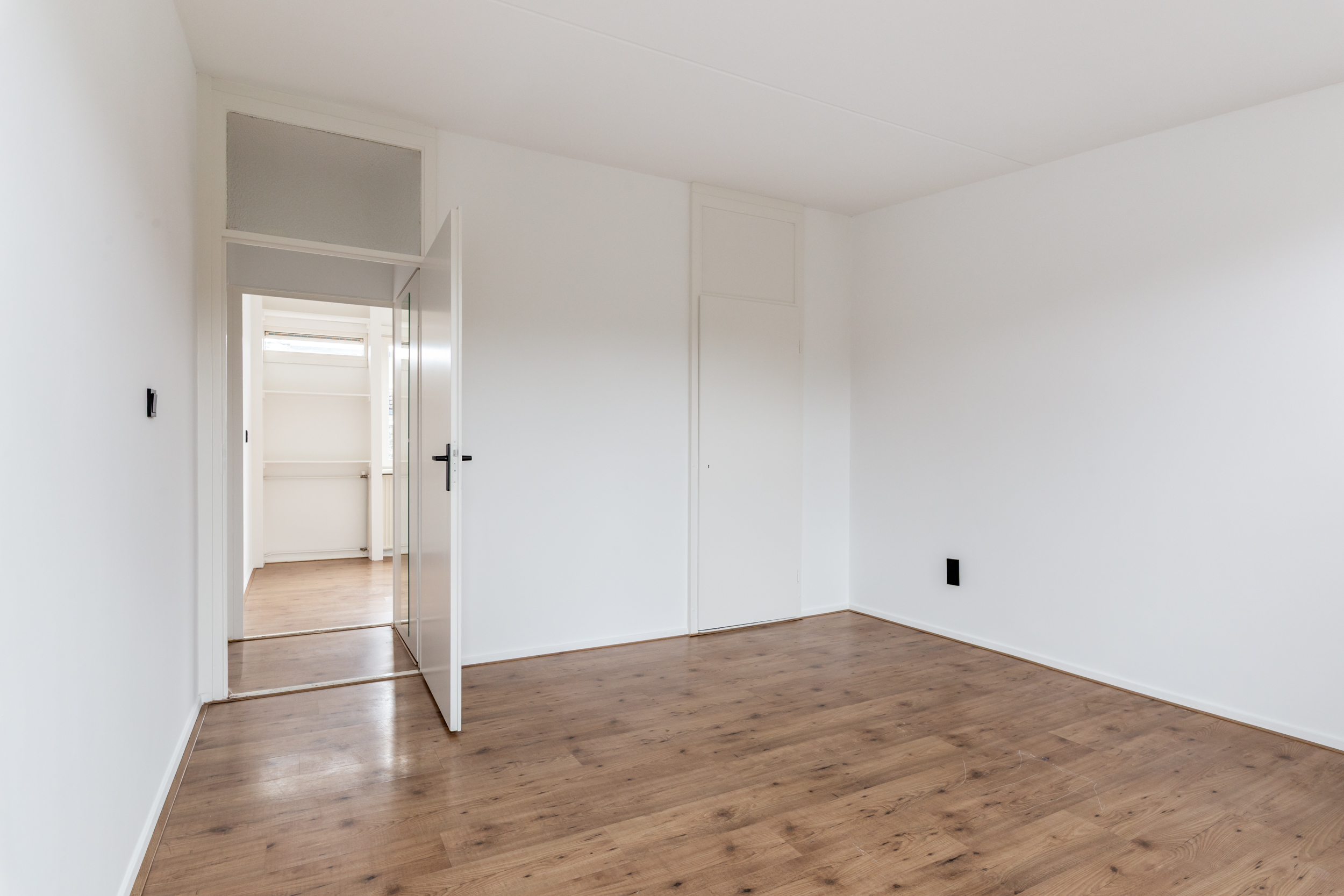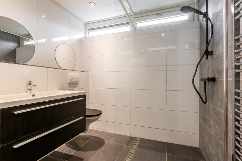 Overloop met de opstelplaats van de cv-ketel (2016), een praktische bergkast en toegang tot 3 ruime slaapkamers (ca. 16 / 12 / 9 m2), waarbij de slaapkamer aan de achterzijde is voorzien van een ingebouwde kastenwand. Moderne badkamer met een (inloop)douche, 2e toilet, wastafelmeubel, een designradiator en een raam voor de natuurlijke ventilatie. De verdieping is voorzien van een laminaatvloer.