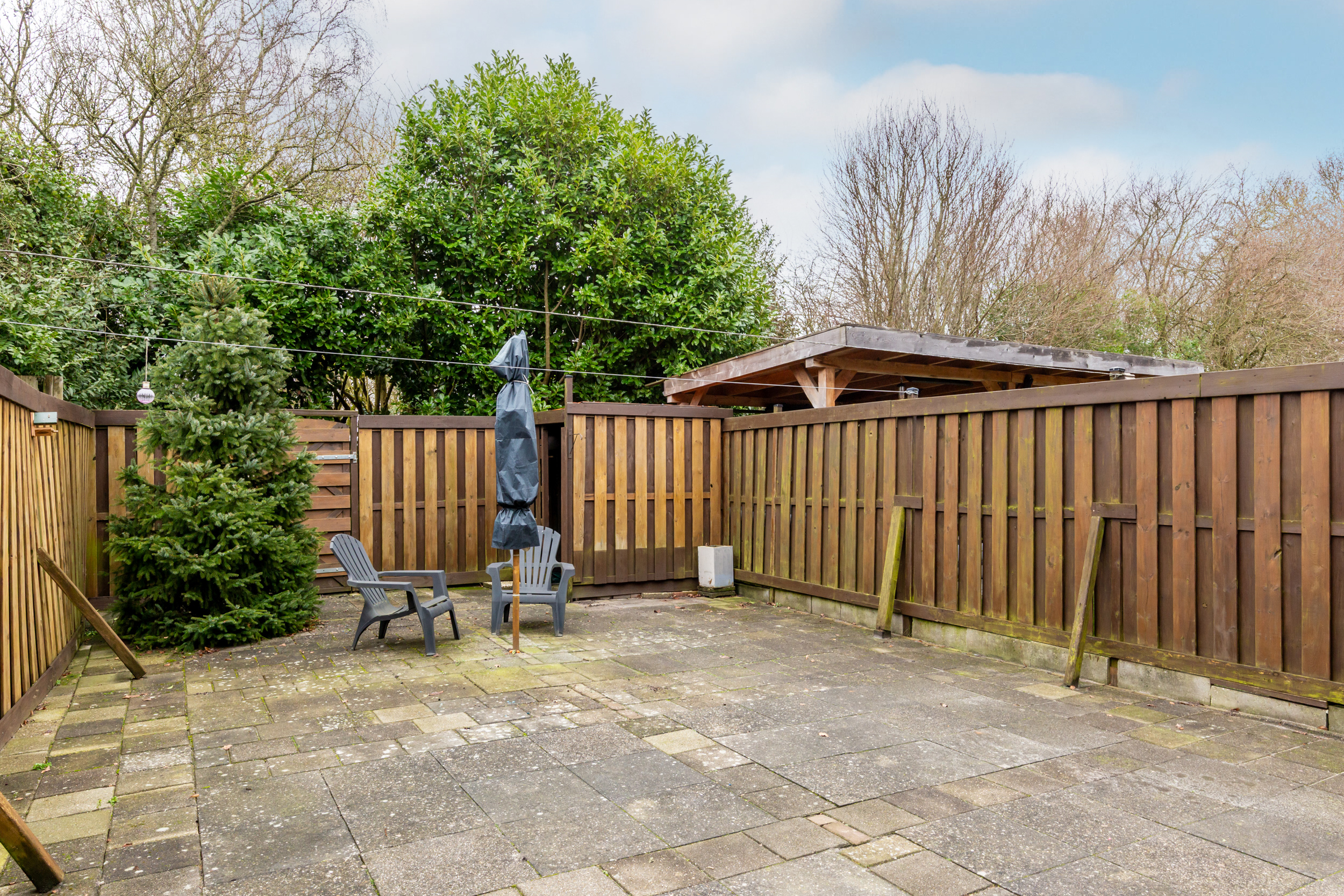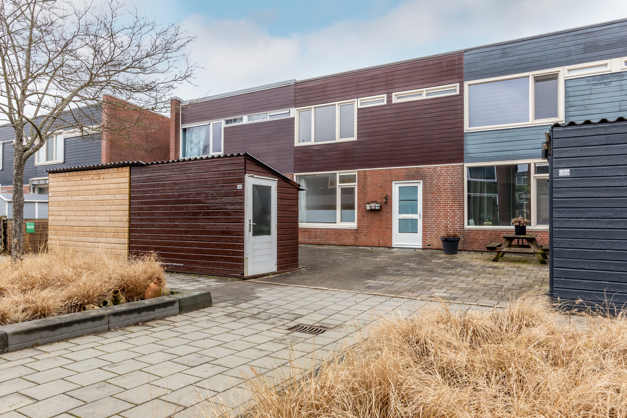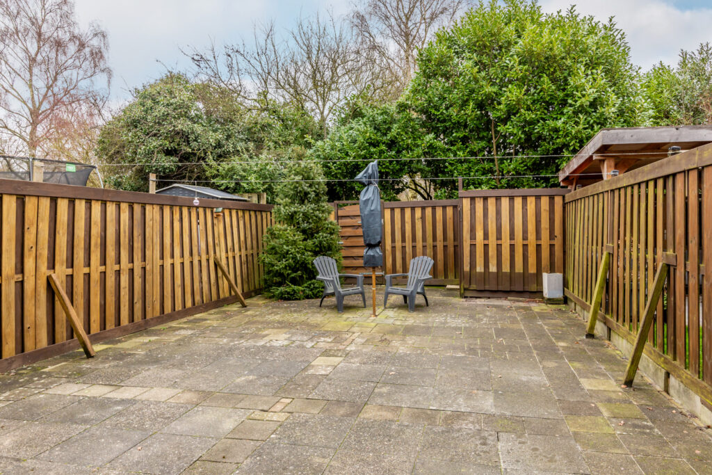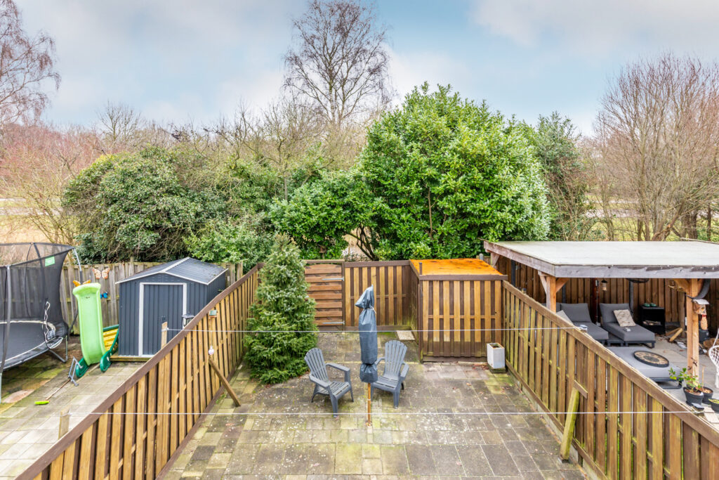 * De woning is aan de voorzijde voorzien van een vrijstaande houten berging (ca. 6 m2)