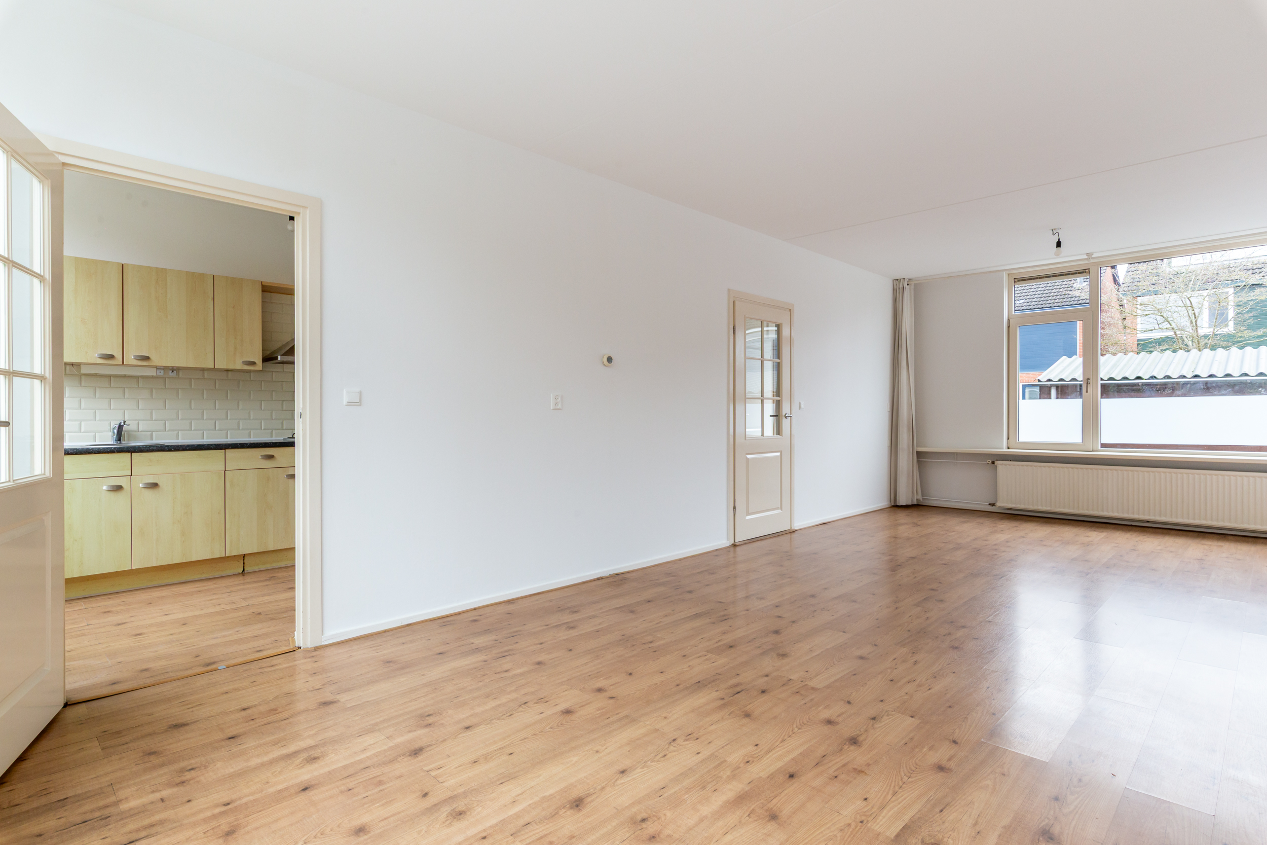 * Een heerlijke ruime woonkamer van ca. 32 m2, welke zowel tuingericht alsmede straatgericht kan worden ingericht