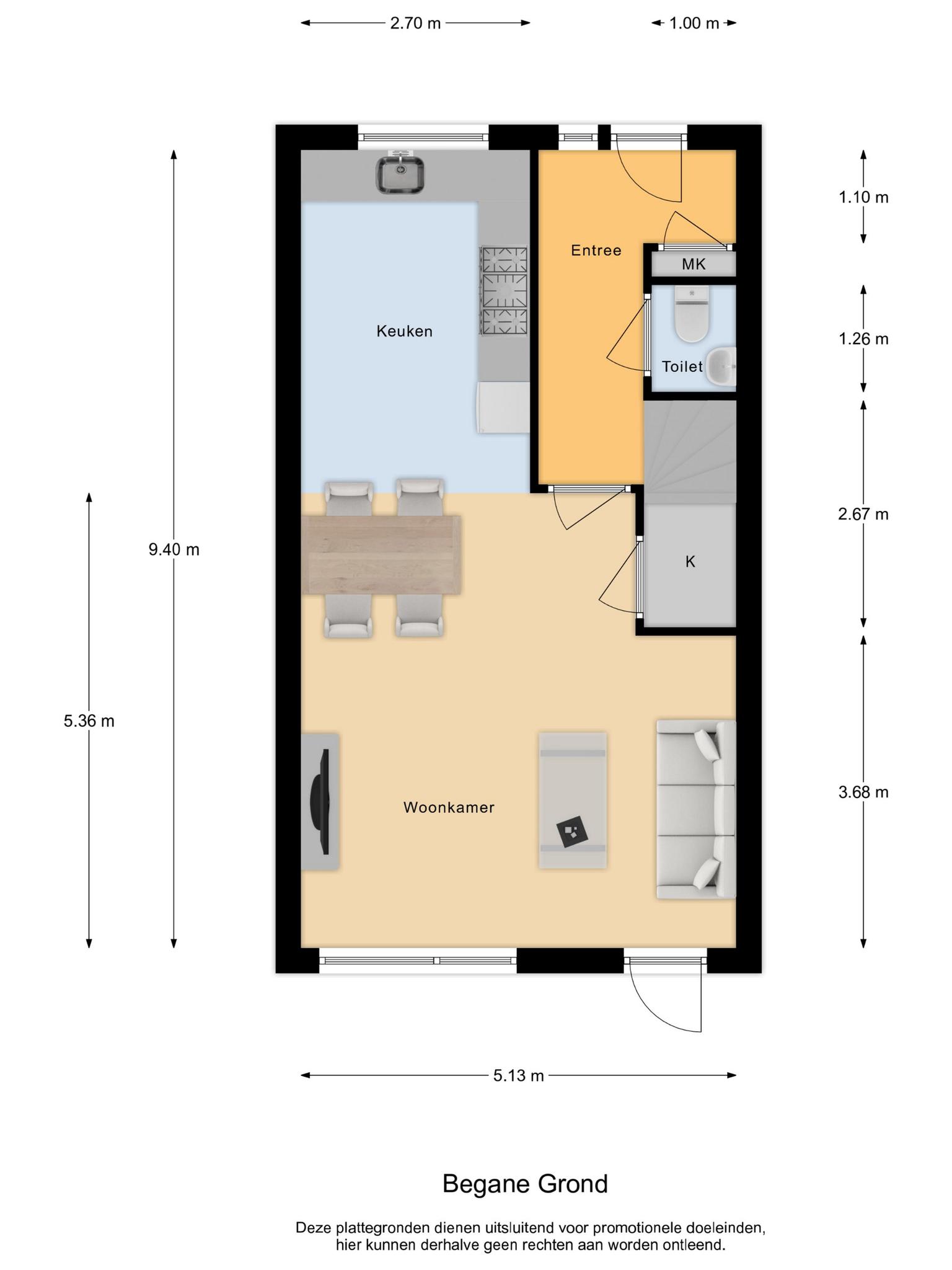 Entree, hal, modern hangend toilet met fonteintje, ruime woonkamer (ca. 25 m²) met deur naar tuin, trapkast, moderne open L-vormige keuken (straatgericht) voorzien van inbouwapparatuur en een Quooker.