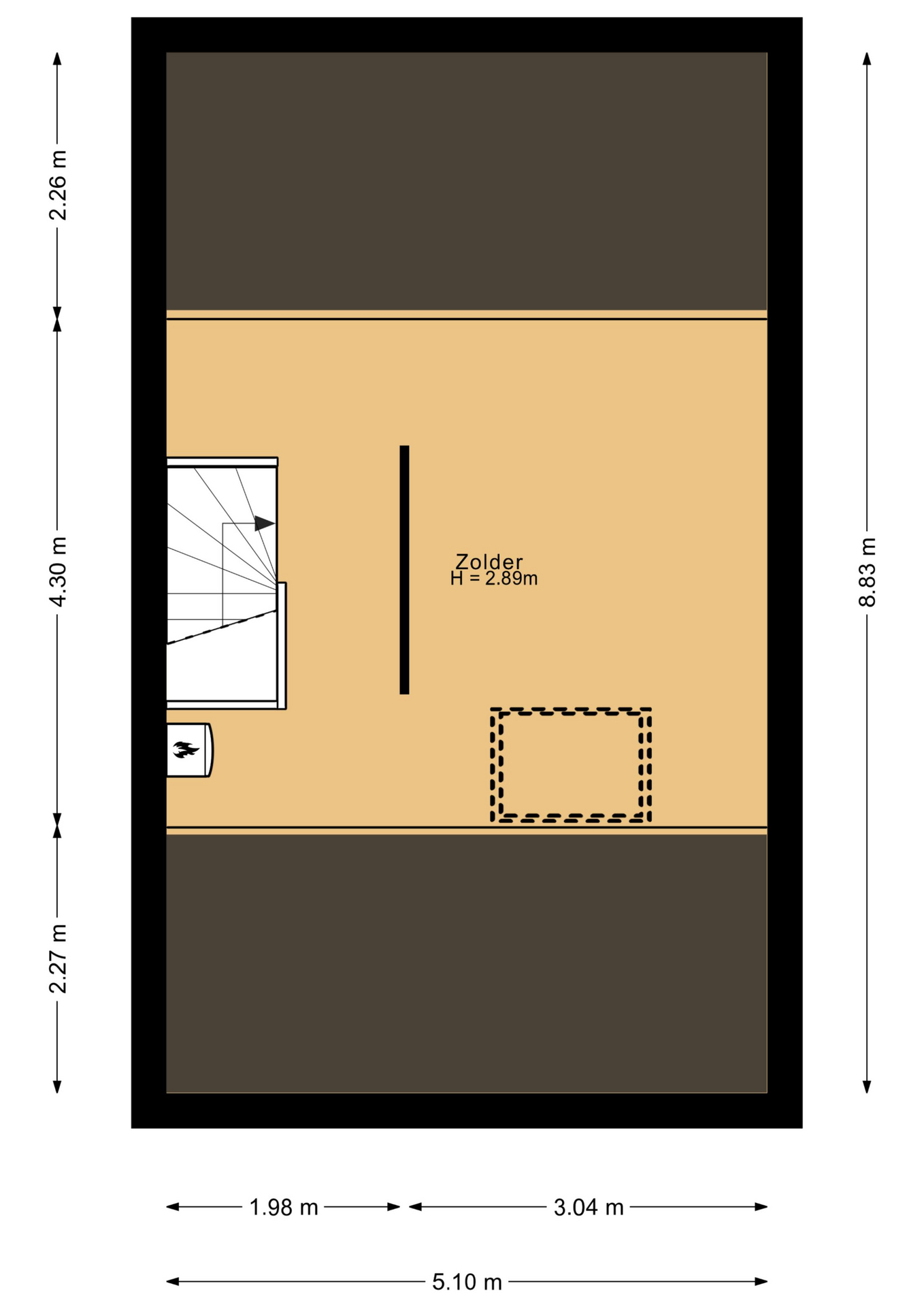 Zolderruimte (ca. 22 m²) voorzien van dakraam, opstelling cv-ketel en mechanische ventilatie.