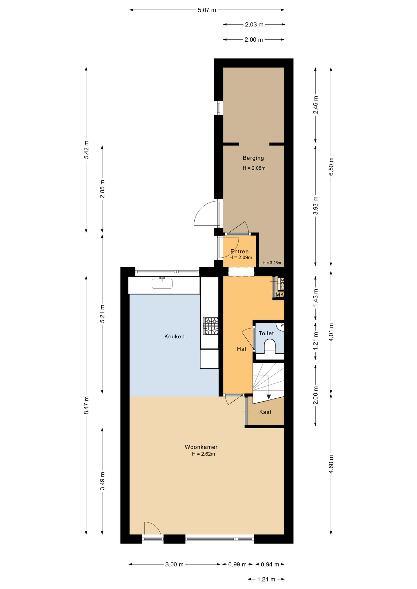 * Kaveloppervlak: 157 m2 eigen grond
