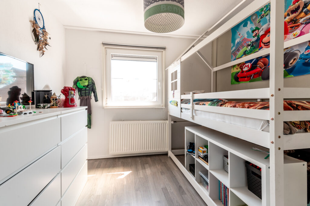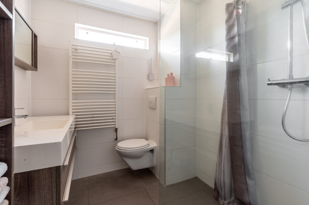 Overloop met toegang tot 3 ruime slaapkamers (ca. 13 / 12 / 9 m²). Moderne badkamer met een inloopdouche, 2e toilet, wastafelmeubel met wastafel, een designradiator en een raam voor de natuurlijke ventilatie. Alle slaapkamers beschikken over kunststof kozijnen met ramen die zijn voorzien van inzethorren. De verdieping is afgewerkt met een nette laminaatvloer.