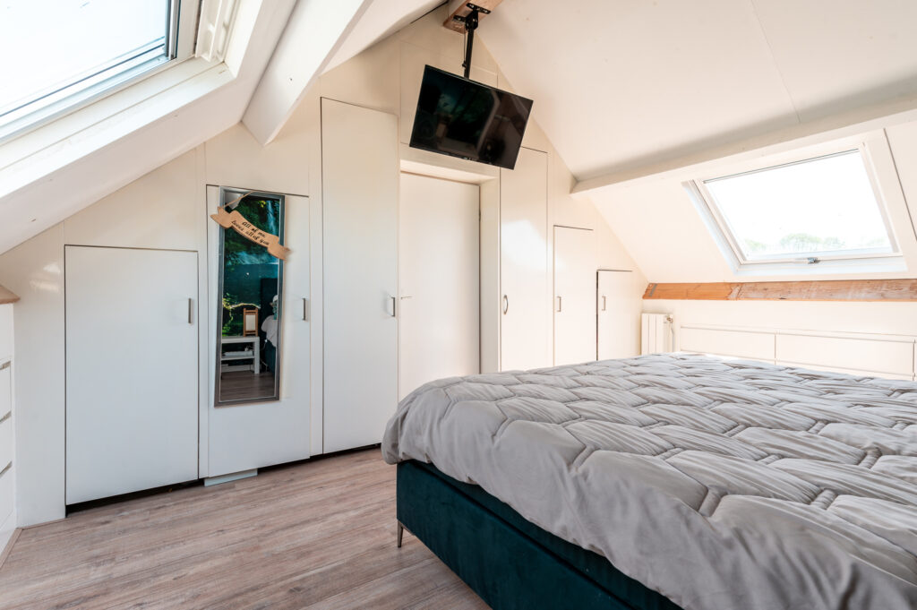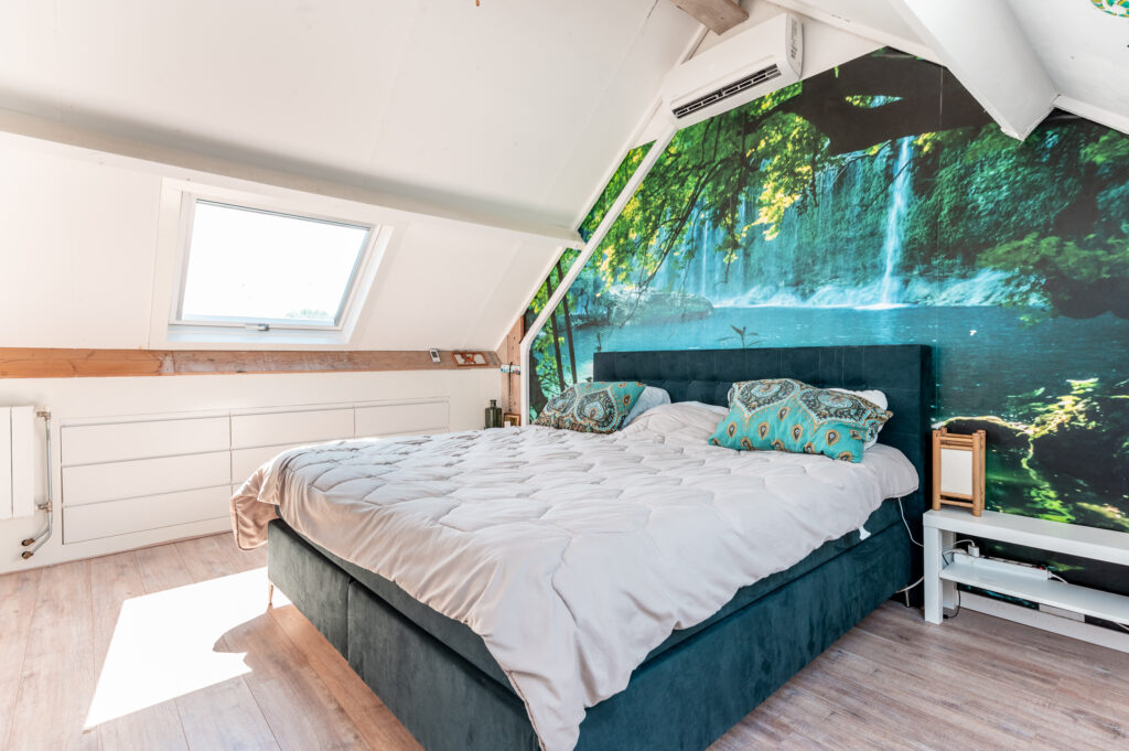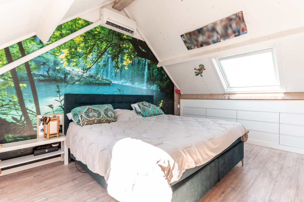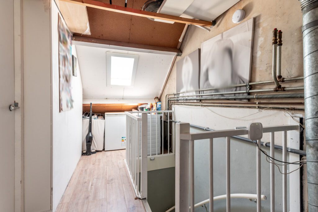 Via vaste trap te bereiken zolder met de opstelling van de cv-ketel (2014), de wasmachineaansluiting en veel praktische bergruimte. Toegang tot de ruime vierde slaapkamer (ca. 15 m²) met 2 kunststof dakramen en airconditioning (verwarmen/koelen). De verdieping is voorzien van een nette laminaatvloer.
