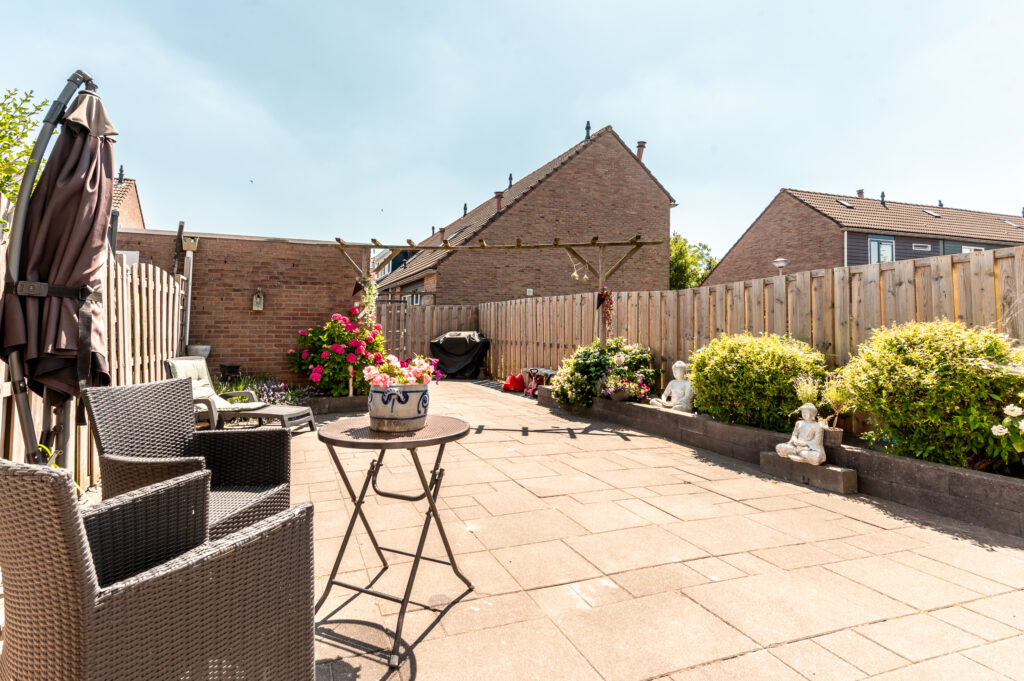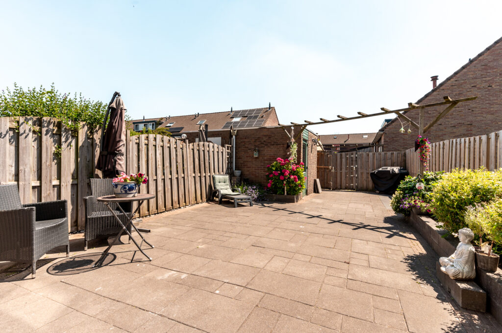 De tuin is gelegen op het zonnige zuidoosten en voorzien van bestrating, borders met beplanting, een vrijstaande stenen berging en een achterom. Dankzij de beperkte inkijk geniet je hier van veel privacy, waardoor het een heerlijke plek is om te ontspannen en tot rust te komen.