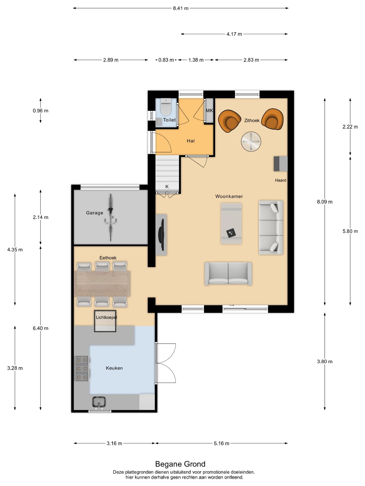 * De garage is rondom 2003 omgebouwd tot woonkeuken (2003) en aan de voorzijde tot berging (ca. 6 m2)