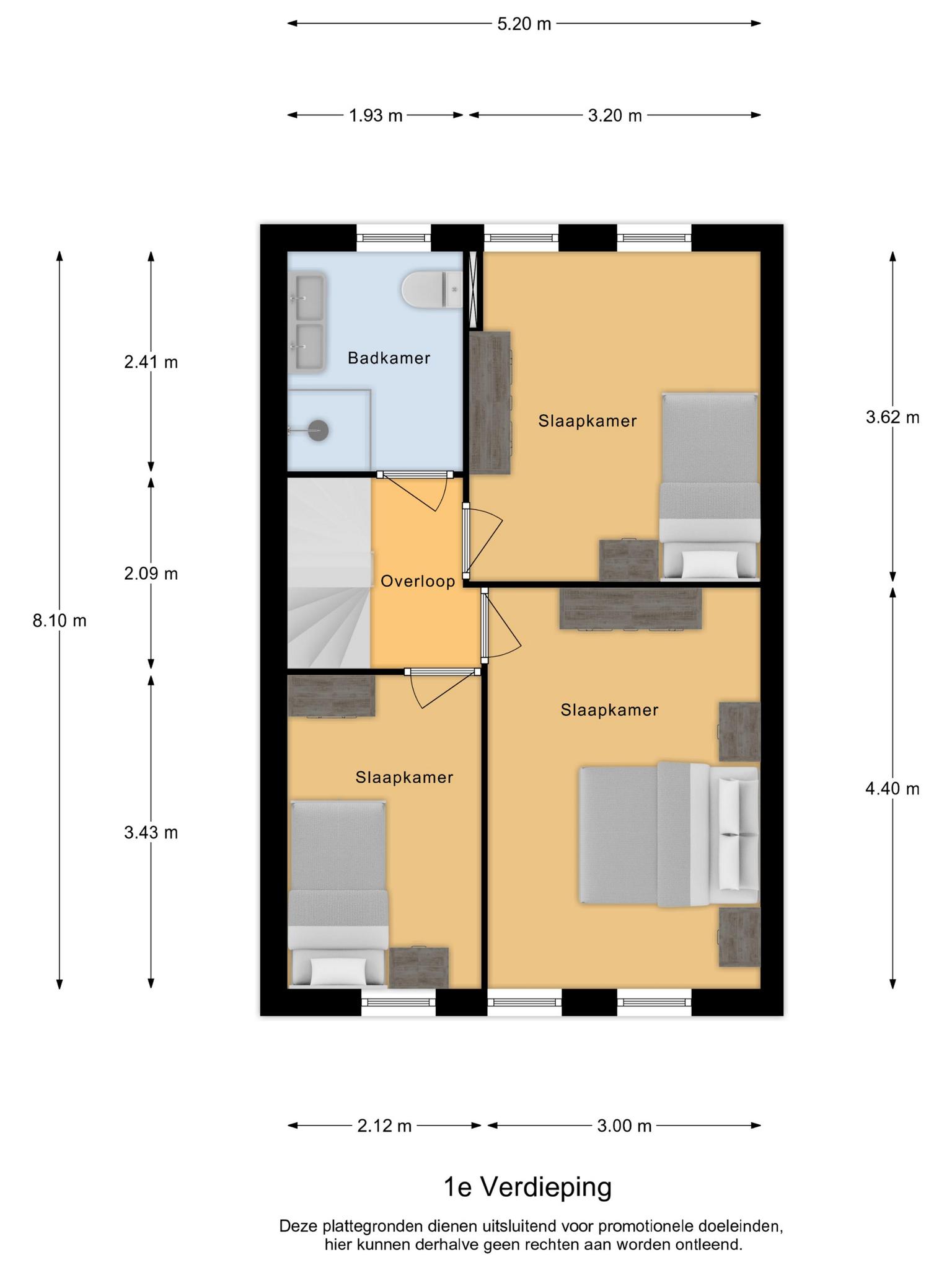 Overloop met toegang tot 3 ruime slaapkamers (ca. 13 / 12 / 7 m2), waarbij de ouderslaapkamer is voorzien van een ingebouwde kastenwand. De keurige badkamer is gerenoveerd in 2023 en voorzien van een douche, 2e toilet, wastafelmeubel met dubbele wastafel, een radiator, vloerverwarming, mechanische ventilatie en een raam voor de natuurlijke ventilatie. De verdieping is voorzien van een laminaatvloer.