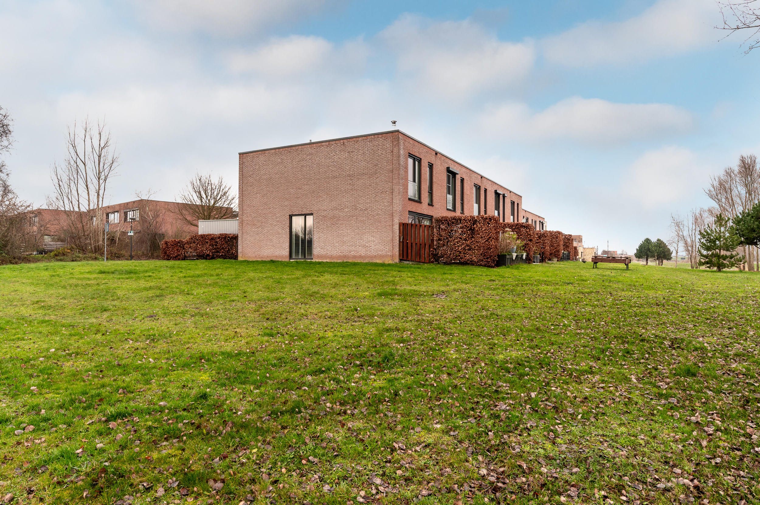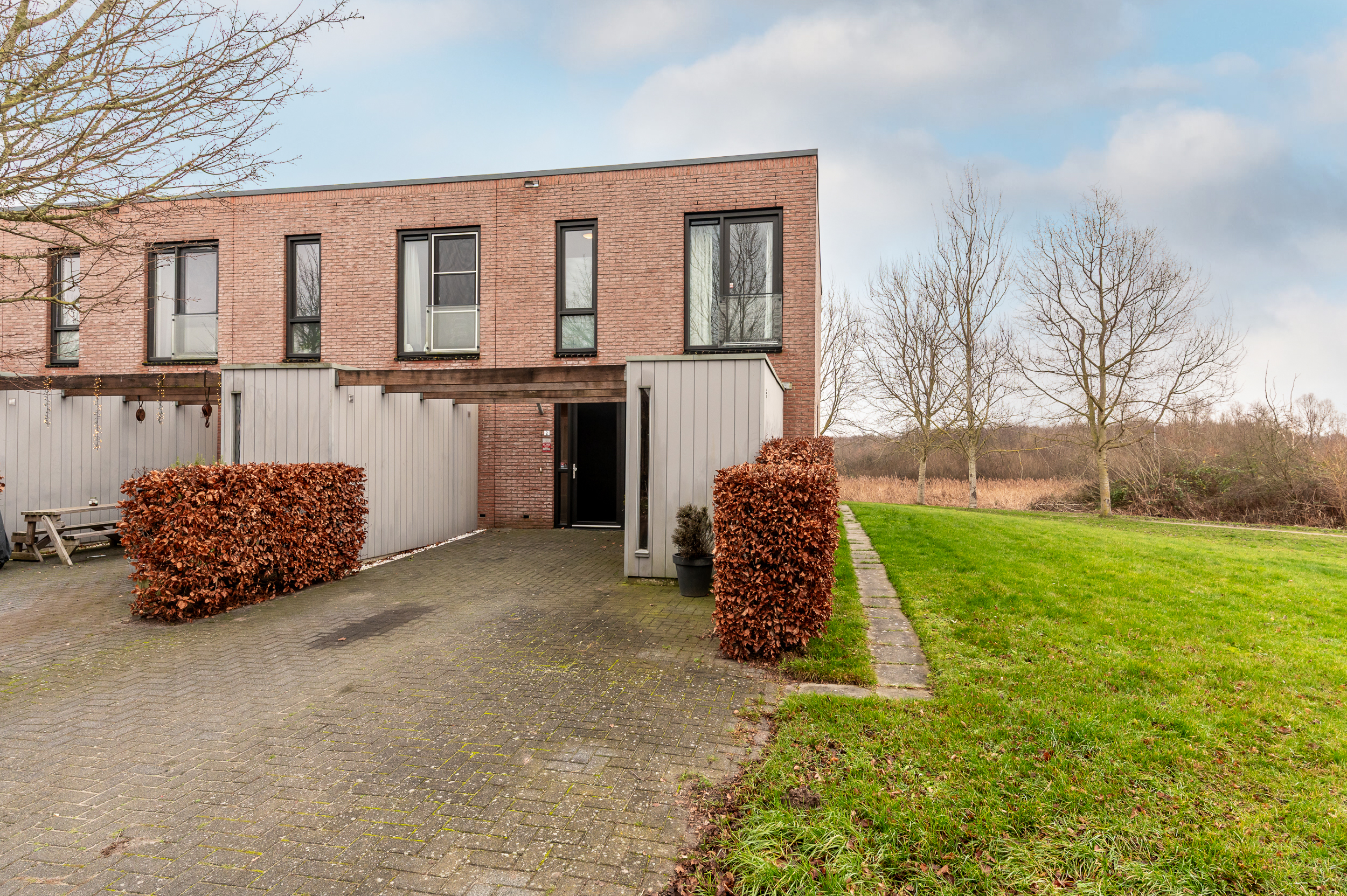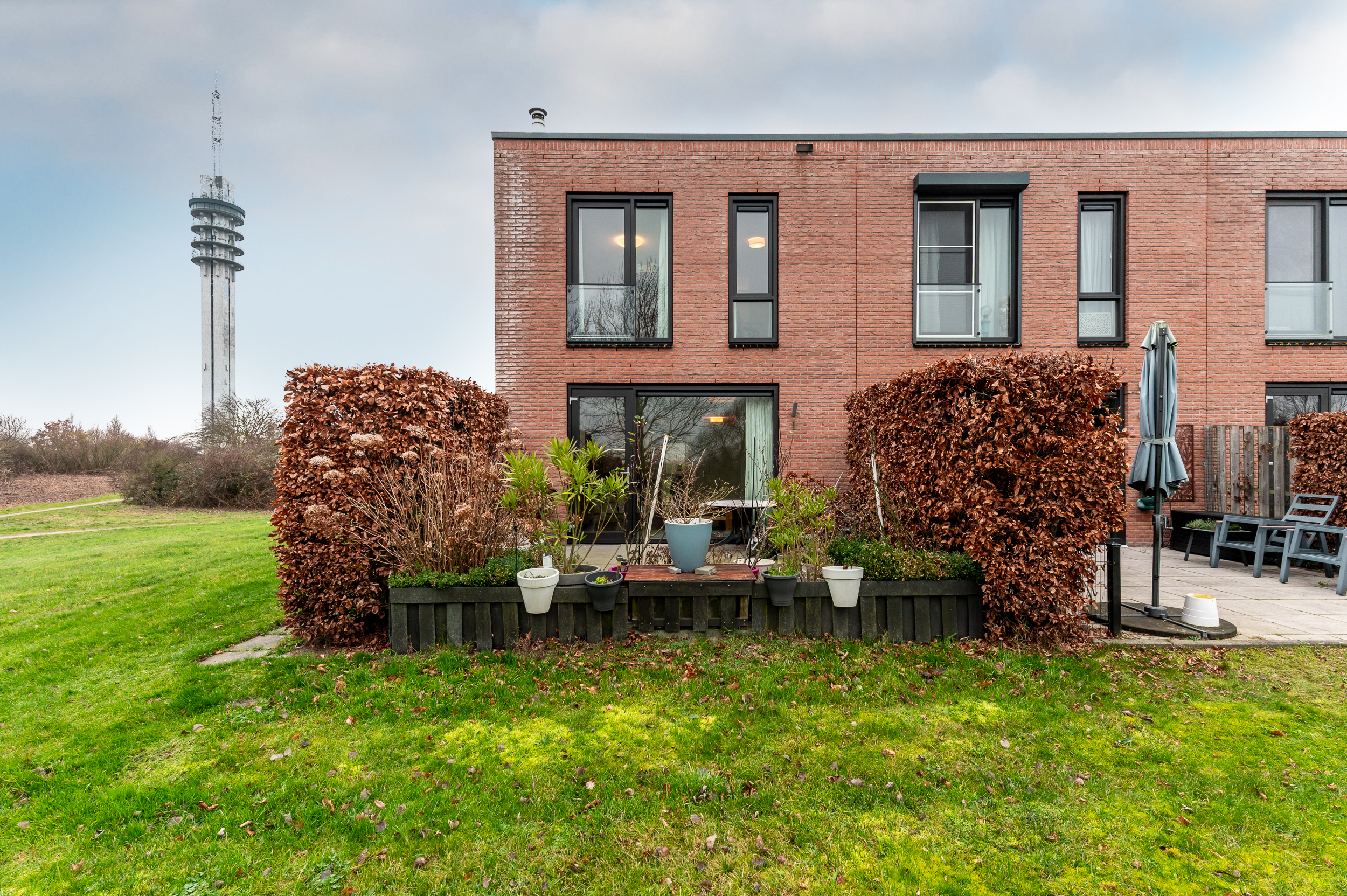 * Vanuit de woonkamer kijkt u heerlijk vrij weg dankzij de grote glazen pui en het extra zijraam