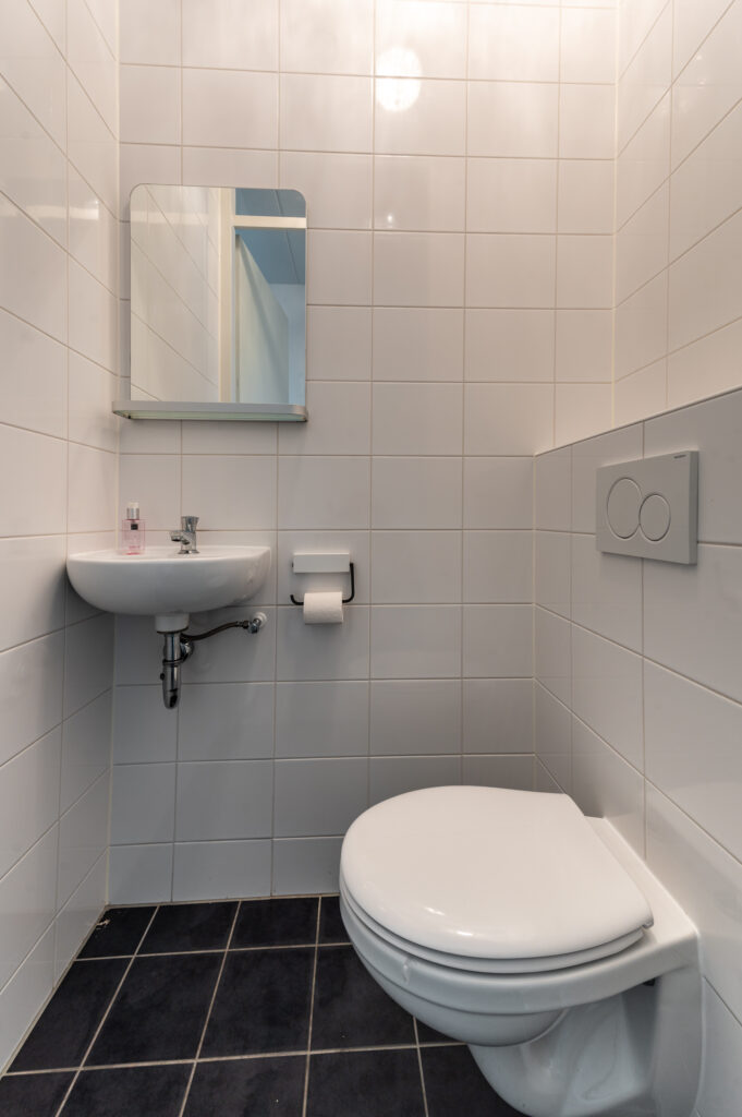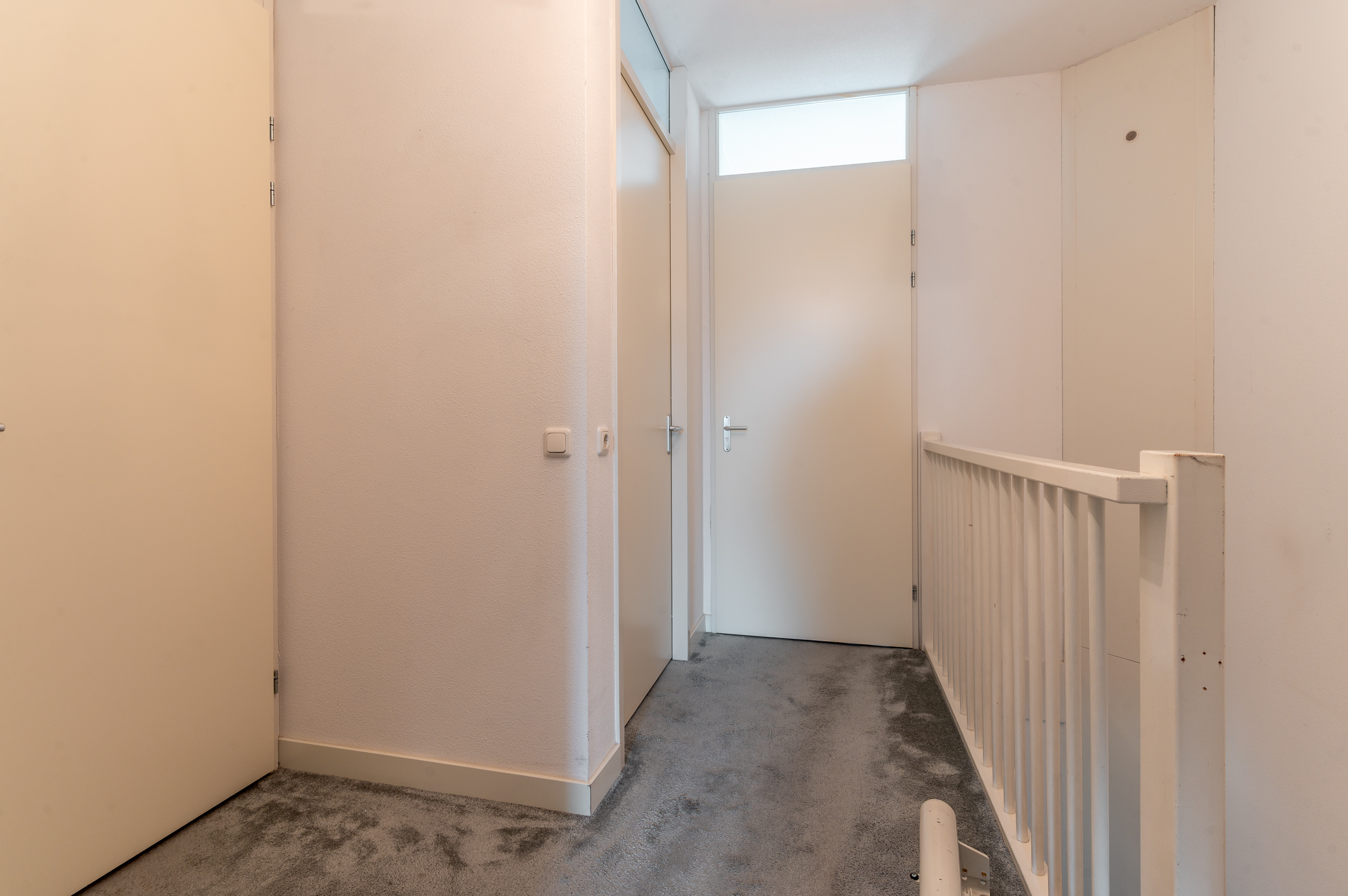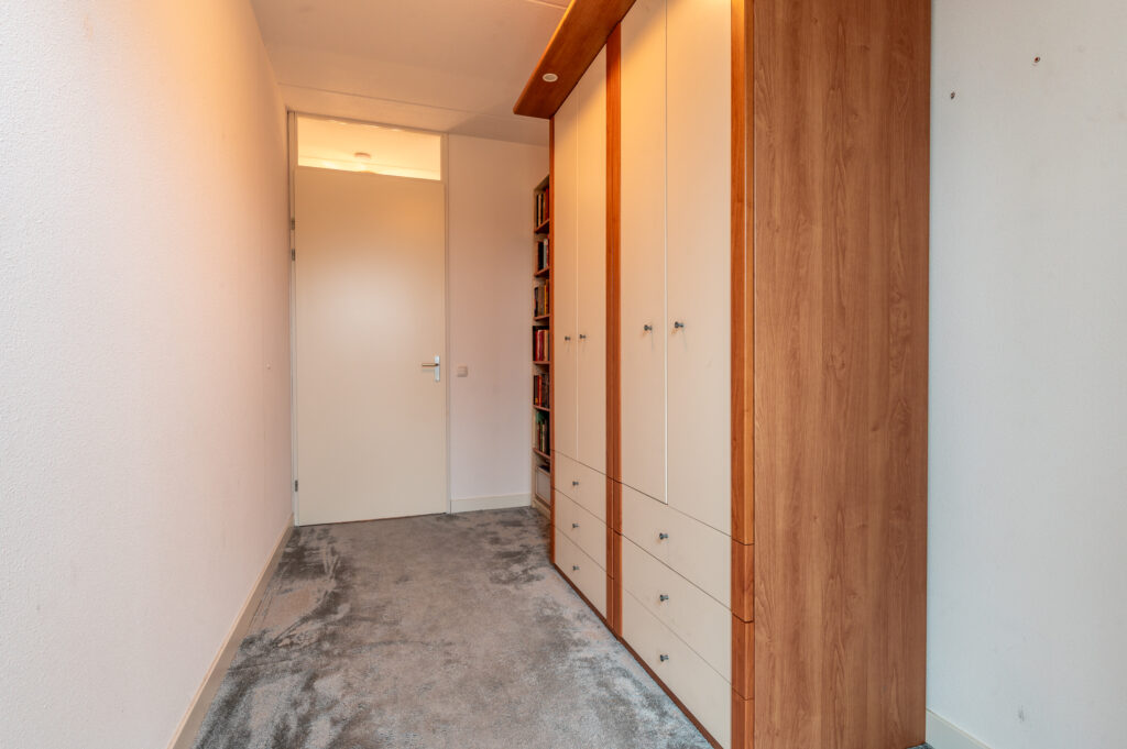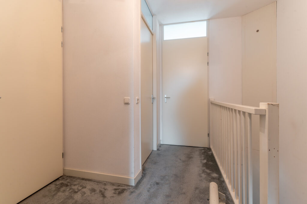 Overloop met toegang tot 3 ruime slaapkamers (ca. 13 / 11 / 9 m2), waarbij de 2 grootste slaapkamers zijn uitgevoerd met een Frans balkon. Moderne badkamer met een inloopdouche, 2e toilet, wastafelmeubel, een radiator en een raam voor de natuurlijke ventilatie. Technische ruimte met de opstelplaats van de cv-ketel, de mechanische ventilatie box, de wasmachine/droger aansluiting en veel praktische bergruimte. De verdieping is voorzien van vloerbedekking.