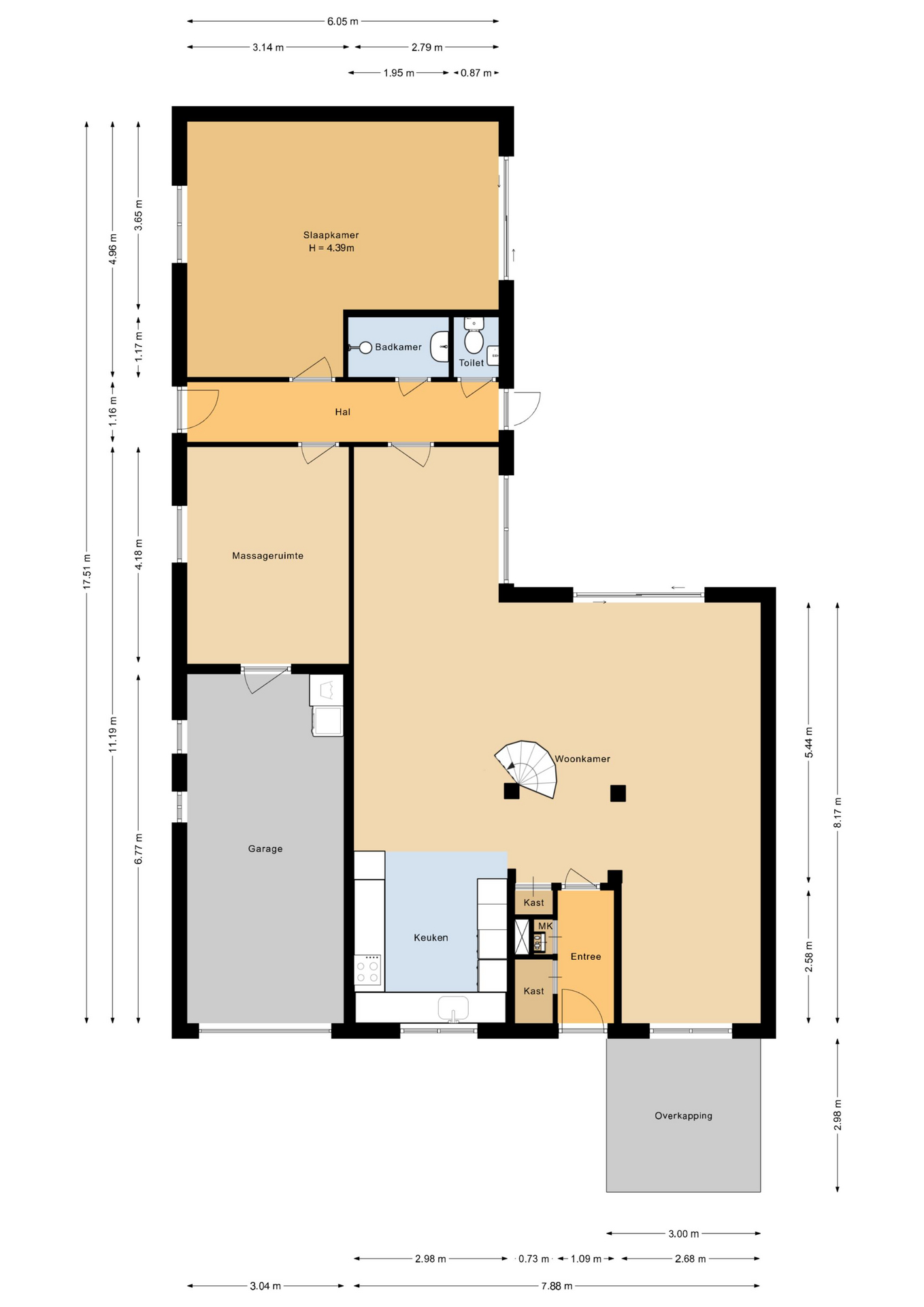 Entree/hal met de meterkast, bergkast/garderobe en toegang tot de woonkamer. Ruime tuingerichte woonkamer van maar liefst 7,88 meter breed met hoge plafonds, een fraaie parketvloer, een praktische werkplek en een schuifpui naar de tuin. Aan de voorzijde bevindt zich de luxe inbouwkeuken (2023) in U-opstelling, welke voorzien is van de volgende apparatuur; koelkast, vriezer, vaatwasser, oven, combimagnetron en een 4-pits inductiekookplaat met geïntegreerde afzuigkap. Ruime opstelmogelijkheden voor een grote eettafel, waar u heerlijk met vrienden en familie kunt dineren. Tussenhal met de toiletruimte, badkamer met douche en wastafel en toegang tot 2 ruime slaapkamers (ca. 28 en 13 m2), waarbij 1 slaapkamer momenteel in gebruik is als praktijkruimte. Inpandige garage (ca. 21 m2) met de aansluiting voor de wasmachine/droger en veel praktische bergruimte.