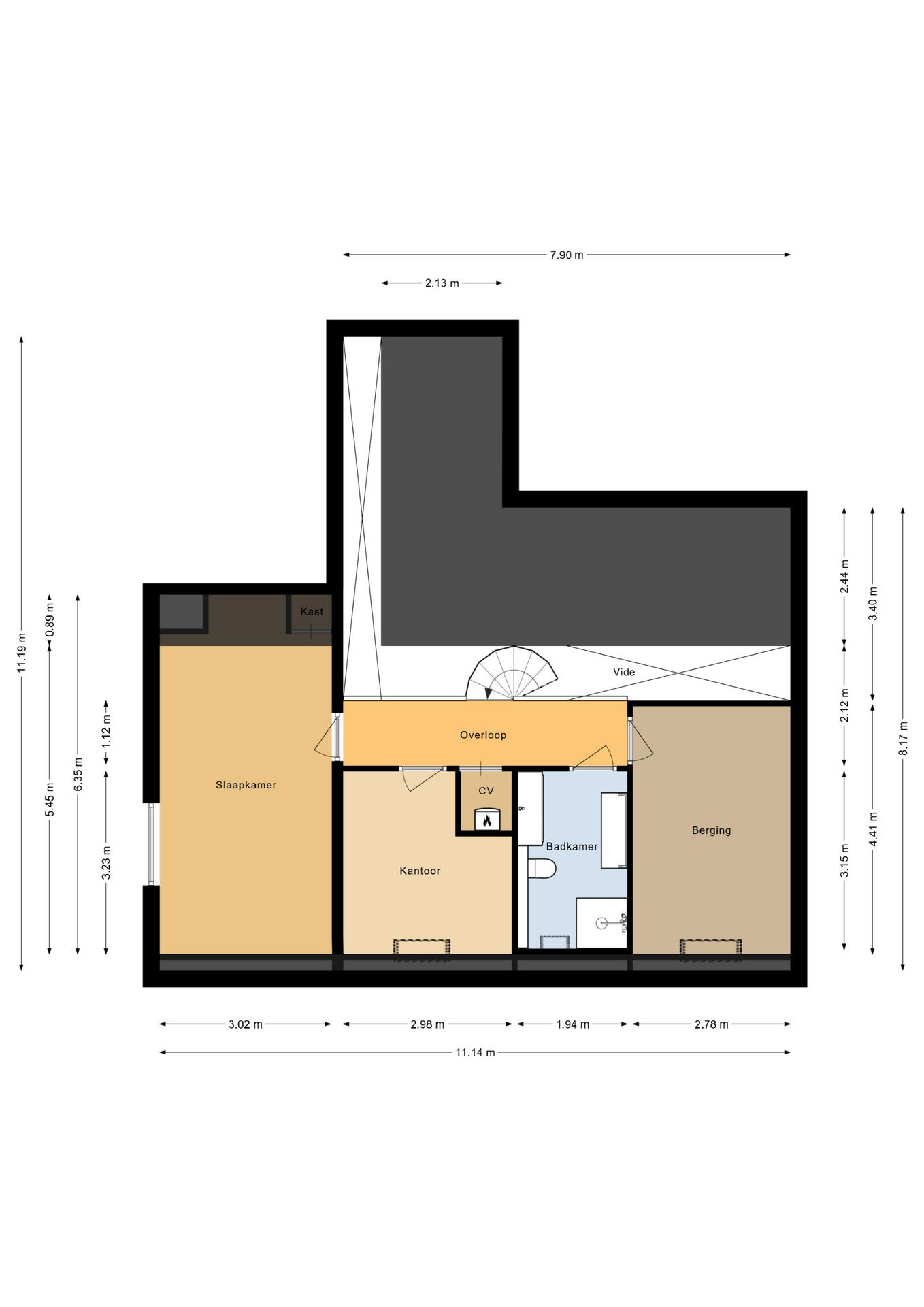 Middels een in het oog springende spiltrap bereikt u de overloop met een fraaie vide en toegang tot 3 ruime slaapkamers (ca. 16, 12, 8 m2). Moderne badkamer (2024) met een (inloop)douche, wastafelmeubel, badmeubel, 2e toilet, designradiator en een raam voor de natuurlijke ventilatie. Technische ruimte met de opstelplaats van de cv-ketel (2023), de mechanische ventilatie box (2022) en veel praktische bergruimte.