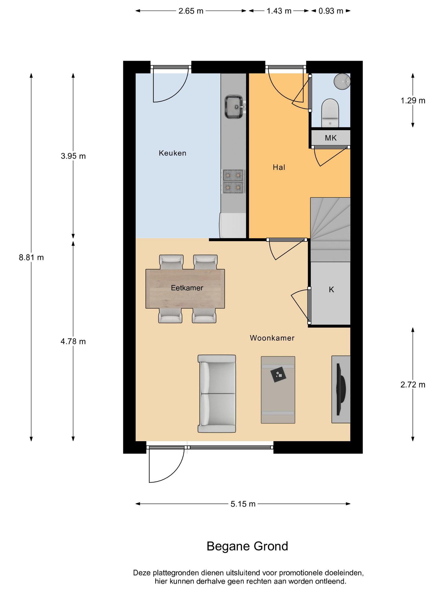 * Kaveloppervlak: 138 m2 eigen grond