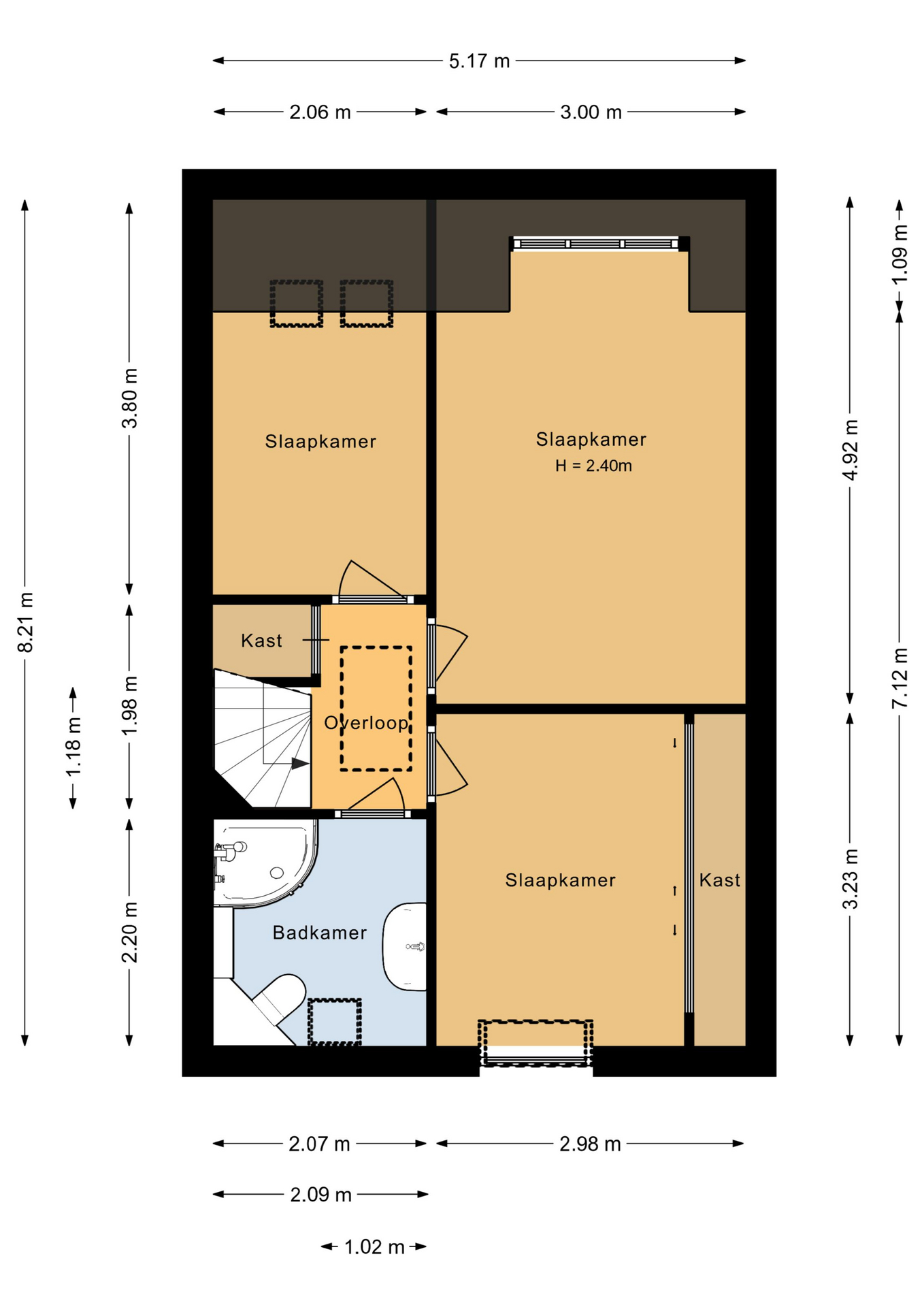 Overloop met kastruimte en opstelling wassen/drogen, slaapkamer 1 (ca. 15 m²) voorzien van dakkapel, slaapkamer 2 (ca. 10 m²) met vaste kast en dakraam, slaapkamer 3 (ca. 8 m²) met dubbel dakraam, badkamer voorzien van wastafel, modern toilet, douchecabine en dakraam.