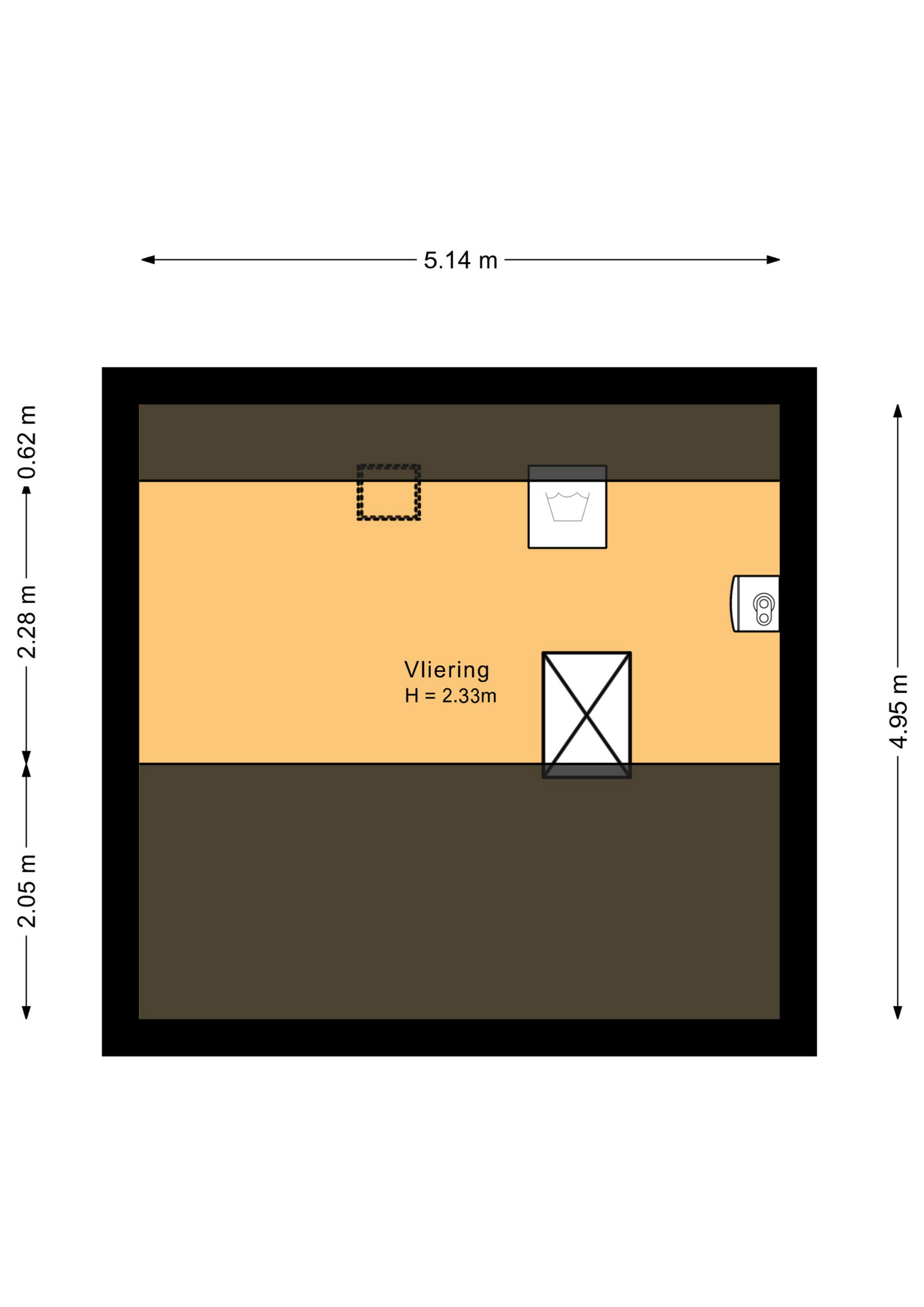 Te bereiken via een vlizotrap, bergruimte, opstelling CV-ketel en dakraam.