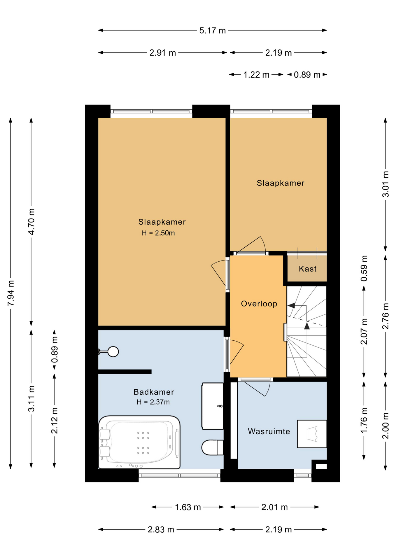 Eerste verdieping: De overloop biedt toegang tot twee ruime slaapkamers, een separate wasruimte en de luxe badkamer (2023) van maar liefst 9 m²! Deze moderne badkamer is uitgerust met een 2-persoons whirlpool (inclusief ingebouwde radio!), een ruime inloopdouche, een tweede toilet, een wastafelmeubel en een groot raam waardoor er volop natuurlijk licht en ventilatie is. Dankzij de grote ramen genieten beide slaapkamers van veel lichtinval, en één kamer is bovendien voorzien van een handige inbouwkast. De wasruimte beschikt over een aansluiting voor de wasmachine en biedt voldoende plek voor een wasdroger. De gehele verdieping is afgewerkt met een nette laminaatvloer.