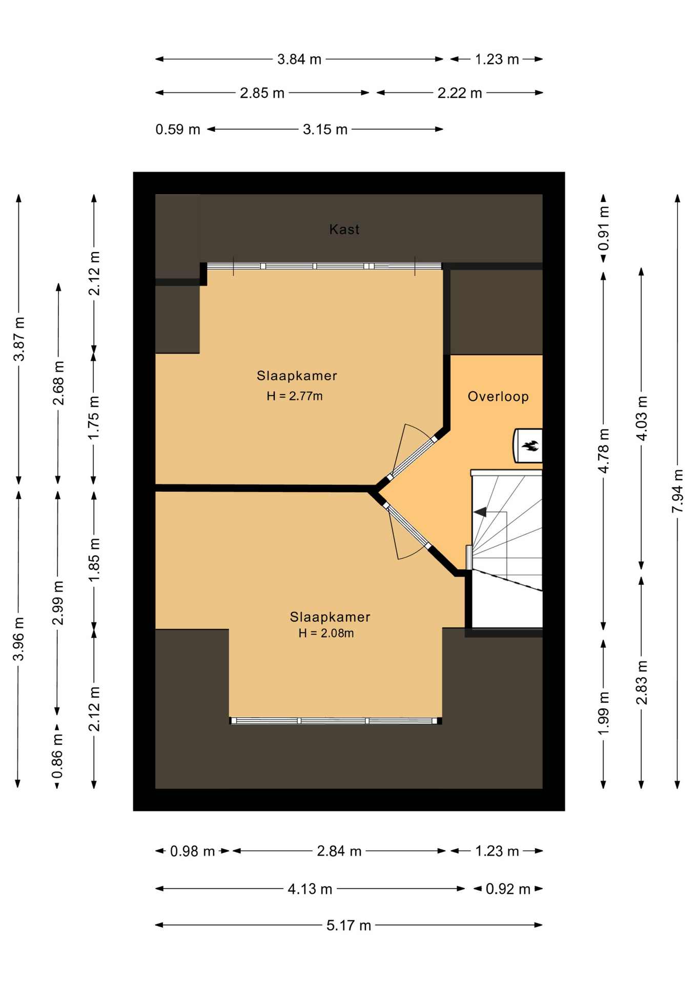 Tweede verdieping: Via de tweede vaste trap bereikt u de zolderverdieping, waar dankzij de twee dakkapellen een ruime en lichte woonlaag is gecreëerd. De overloop biedt plaats aan de cv-ketel en geeft toegang tot twee comfortabele slaapkamers. Ook hier is volop extra bergruimte, zowel op de overloop als achter de knieschotten in beide kamers. Indien gewenst, kan de zolder eenvoudig worden omgetoverd tot een grote hobbyruimte of atelier door de scheidingswand te verwijderen. De tweede verdieping is voorzien van een keurige laminaatvloer.