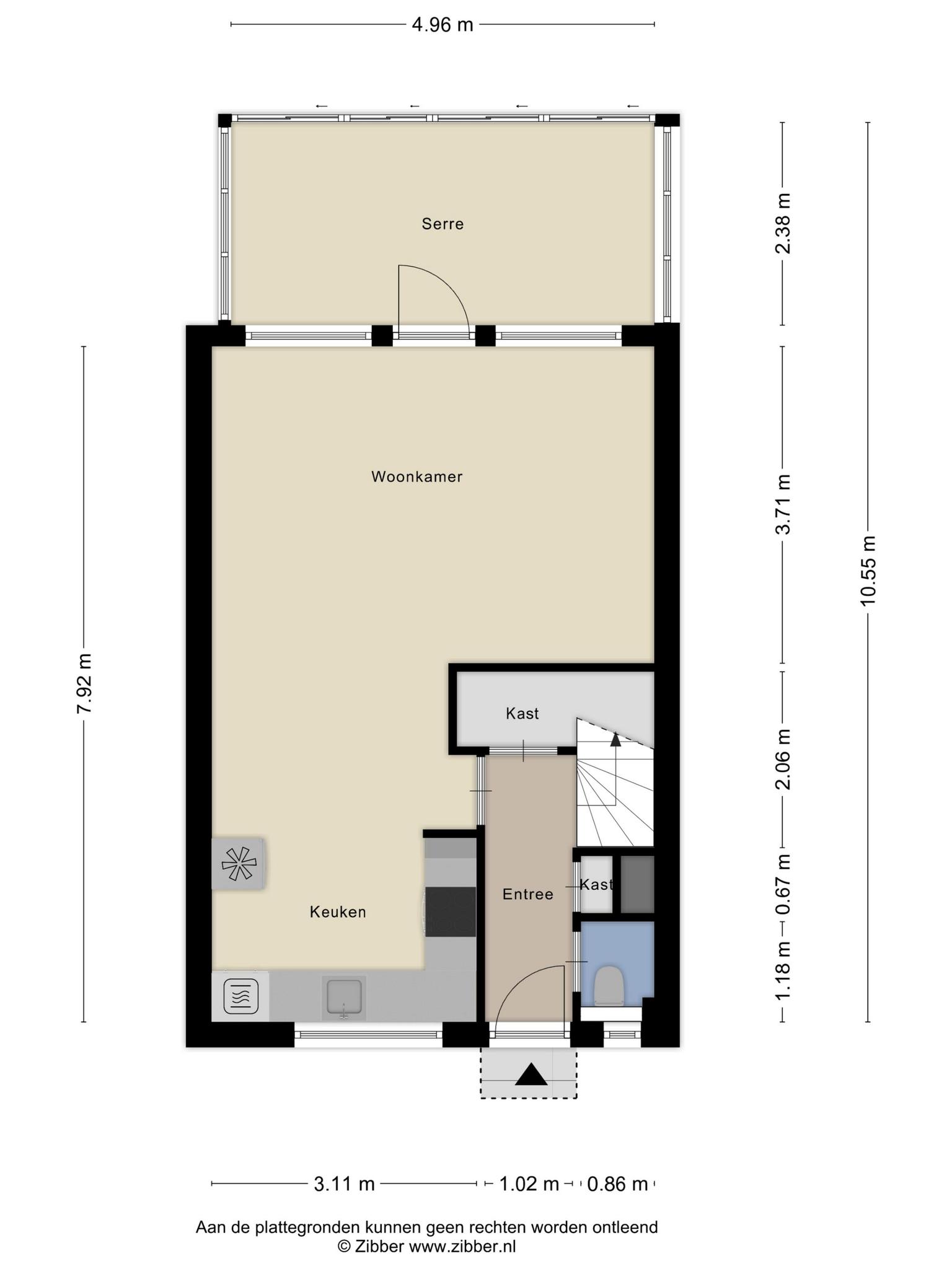 Entree/hal met de moderne toiletruimte, meterkast, trapkast, trapopgang naar de verdieping en toegang naar de woonkamer/keuken. Ruime tuingerichte woonkamer (5.19 m. breed) met grote raampartijen en een deur naar de aangebouwde serre met inbouwspots en glazen schuifwanden. Hier kunt u heerlijk vertoeven op elk gewenst moment van de dag! Aan de voorzijde bevindt zich de moderne inbouwkeuken in hoekopstelling, welke voorzien is van de volgende apparatuur; vaatwasser, combi-oven, 5-pits gasfornuis met oven, een afzuigkap en een losse koel/vriescombinatie. De begane grond is voorzien van een fraaie laminaatvloer (2022).