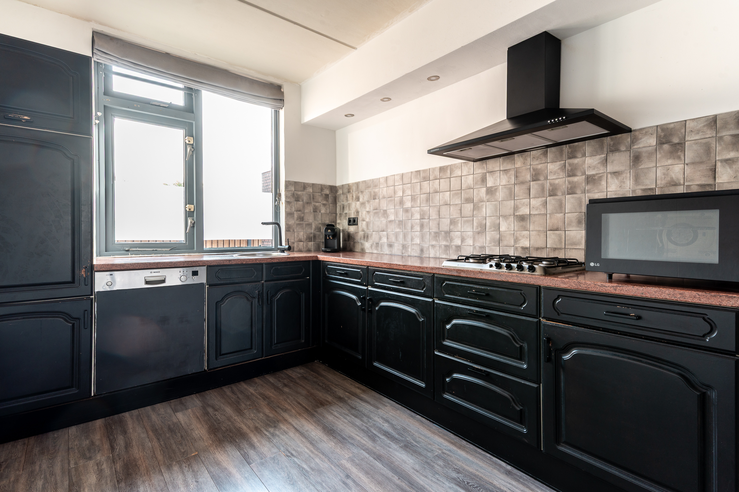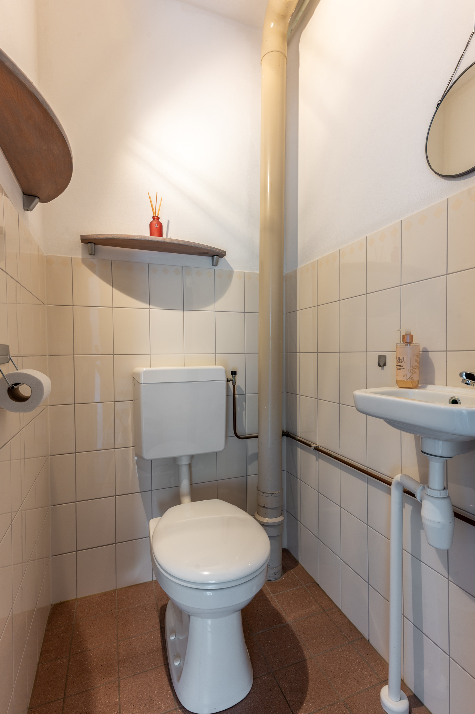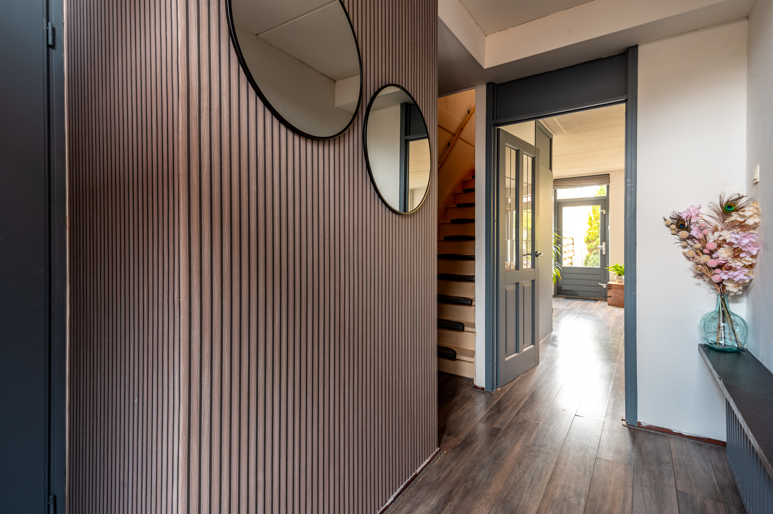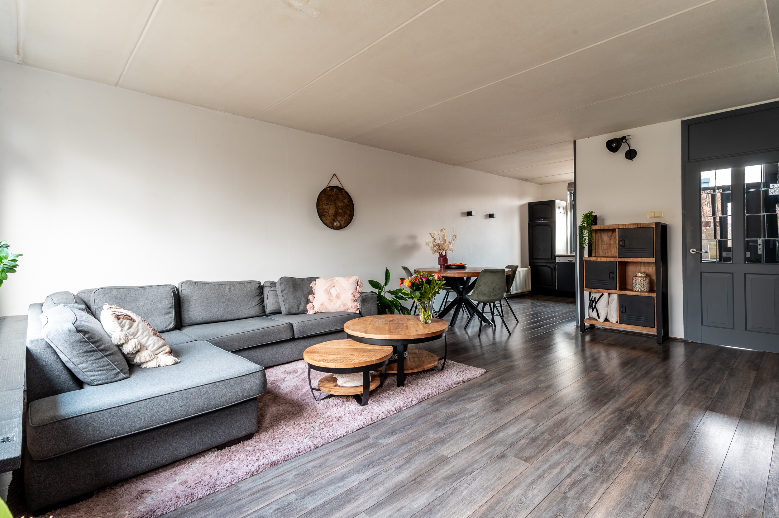Bij binnenkomst wordt u verwelkomd in de hal met toilet en toegang tot de lichte, ruime woonkamer van circa 30 m². Dankzij de grote raampartijen en de directe verbinding met de achtertuin is dit een fijne, lichte leefruimte. De half open L-vormige keuken sluit hier mooi op aan en is voorzien van diverse inbouwapparatuur. Daarnaast beschikt de woning over een praktische aangebouwde berging, ideaal voor opslag of hobbyruimte.