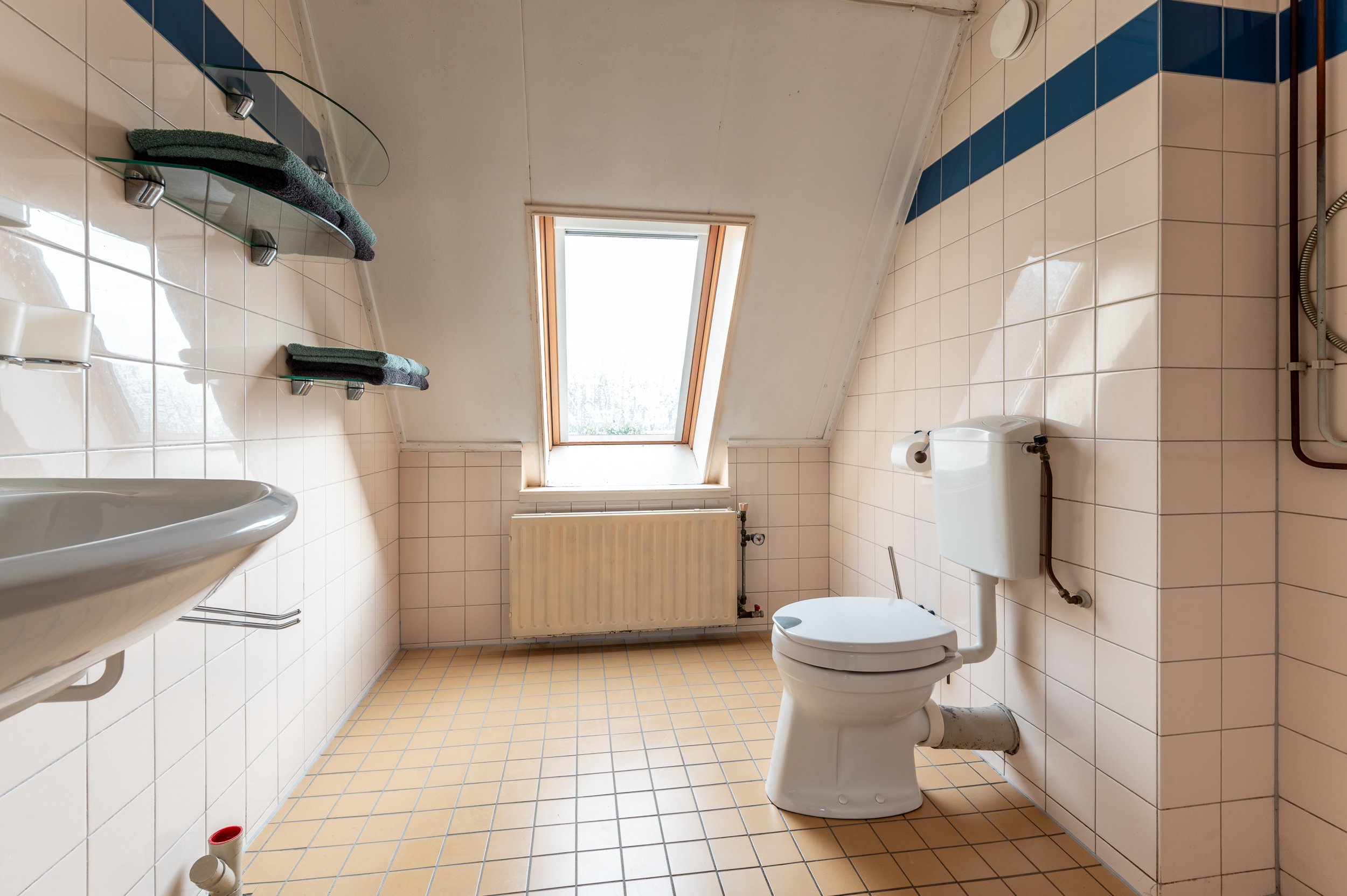 Overloop, eerste slaapkamer (ca. 17 m²), slaapkamer 2 (ca. 14 m²) met dakraam, badkamer voorzien van toilet, wastafel, douche en dakraam.