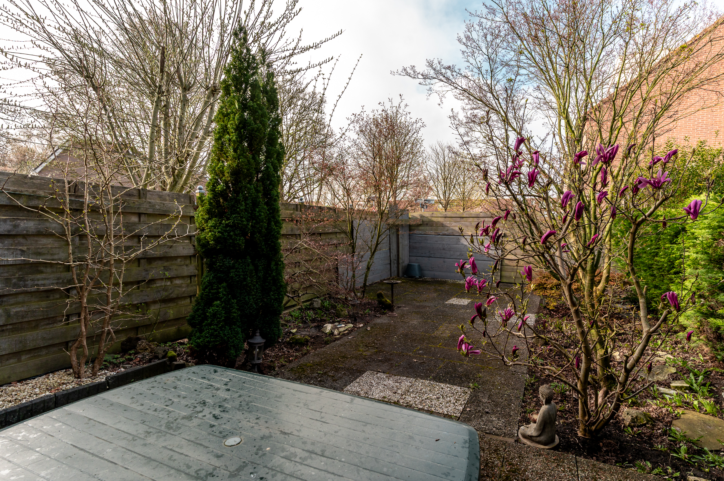 De zonnige achtertuin (10x5,5 meter) ligt op het zuidwesten, hier kunt u heerlijk toeven van de aangename zonuurtjes.