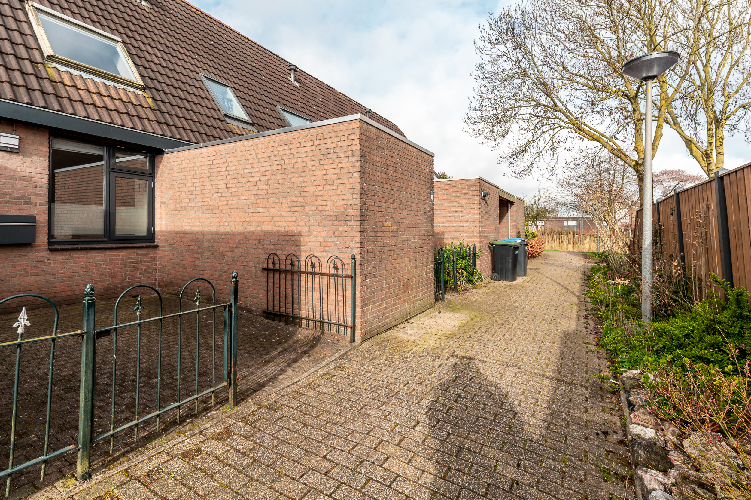 De voortuin is gelegen op het noordoosten. U heeft vanaf hier toegang tot de aangebouwde berging (ca. 9 m²).