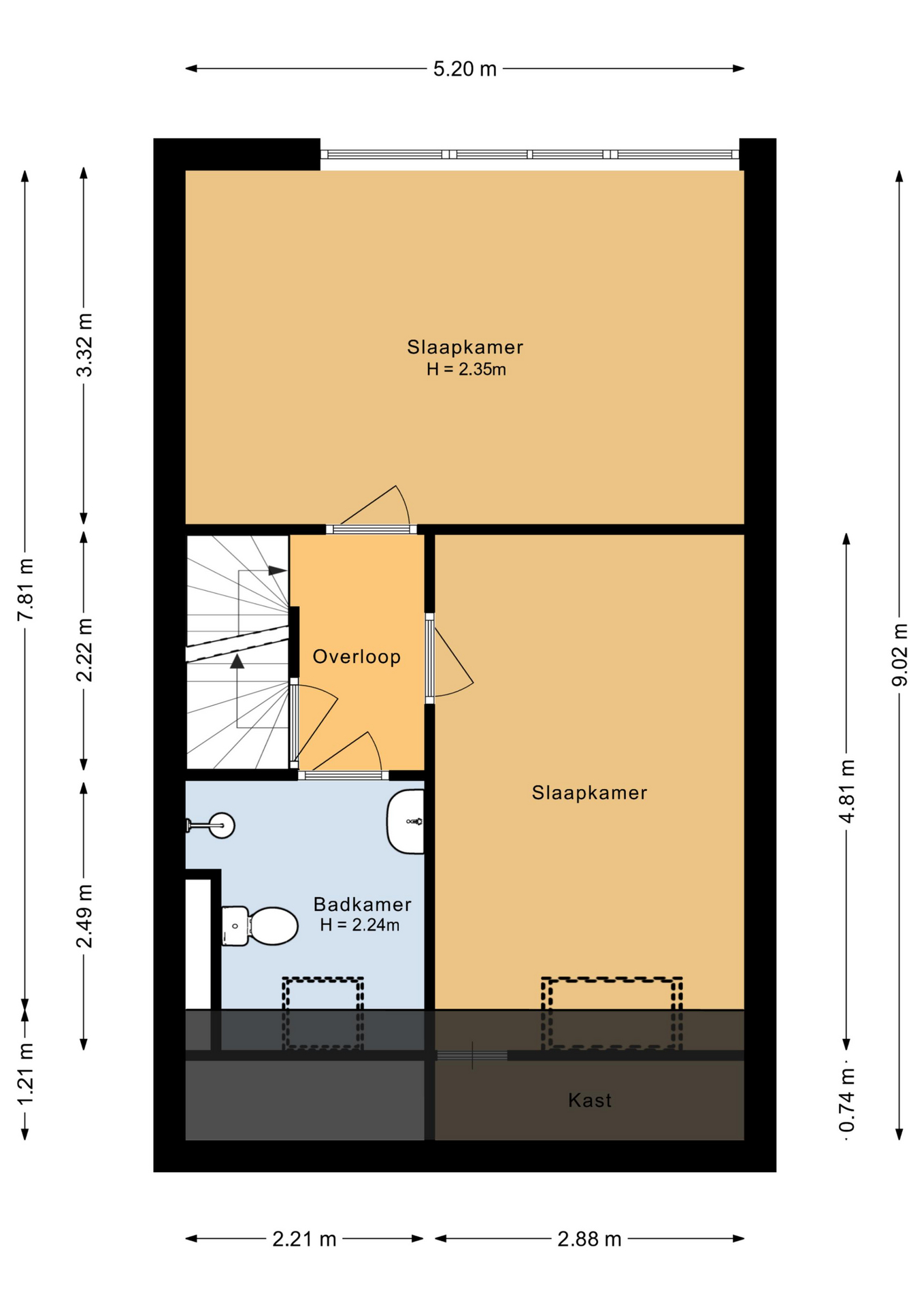 Op de eerste verdieping bevinden zich twee ruime slaapkamers en een complete badkamer met douche, wastafel en tweede toilet. De tweede verdieping biedt nog eens extra ruimte met een derde, volwaardige slaapkamer en een aparte ruimte voor de wasopstelling en de CV-installatie. Hiermee is de woning uitermate geschikt voor gezinnen of thuiswerkers die extra kamers wensen.