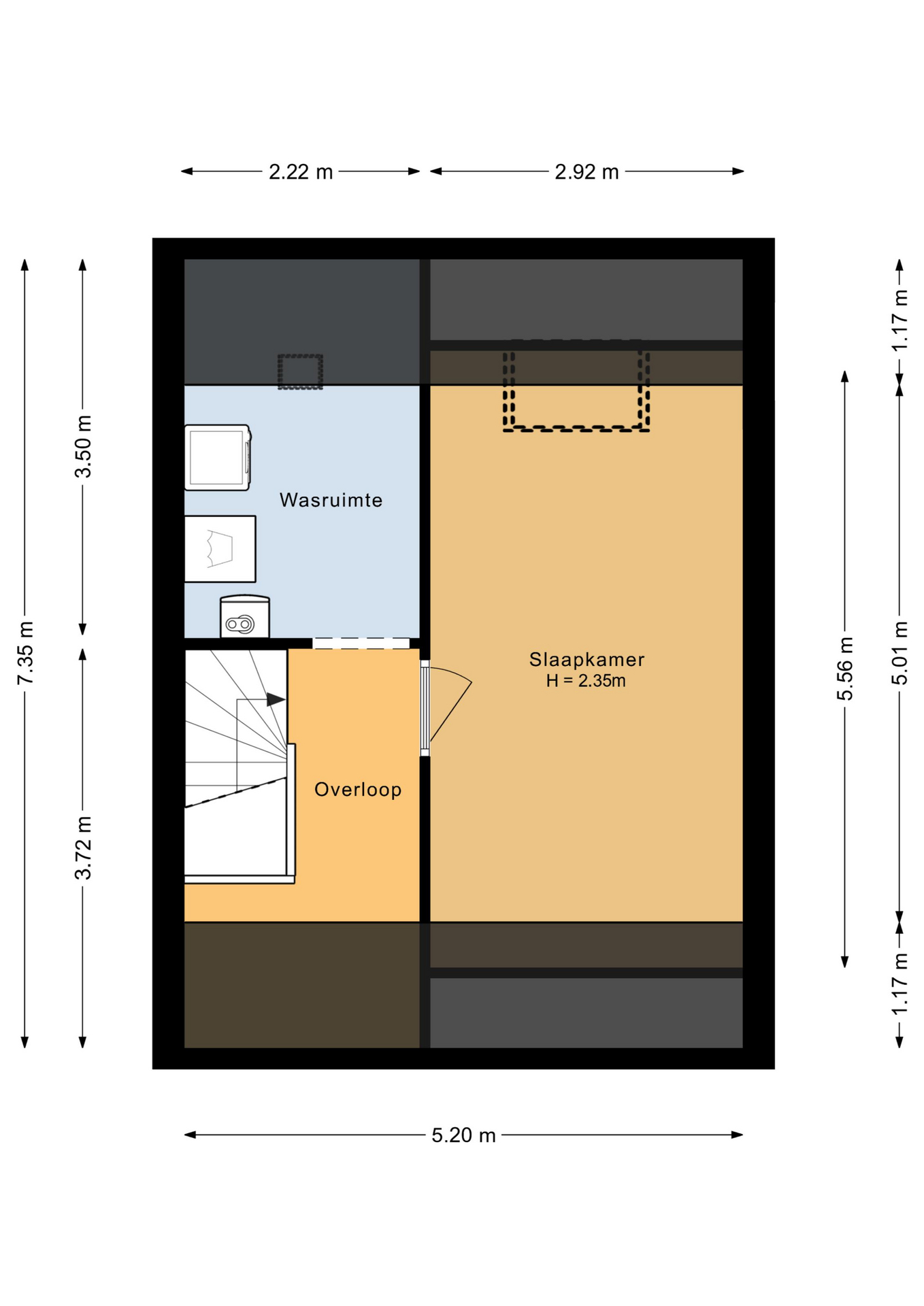 Overloop, slaapkamer 3 (ca. 16 m²) voorzien van dakraam, aparte ruimte met dakraam, opstelling wassen-/drogen en CV-ketel.