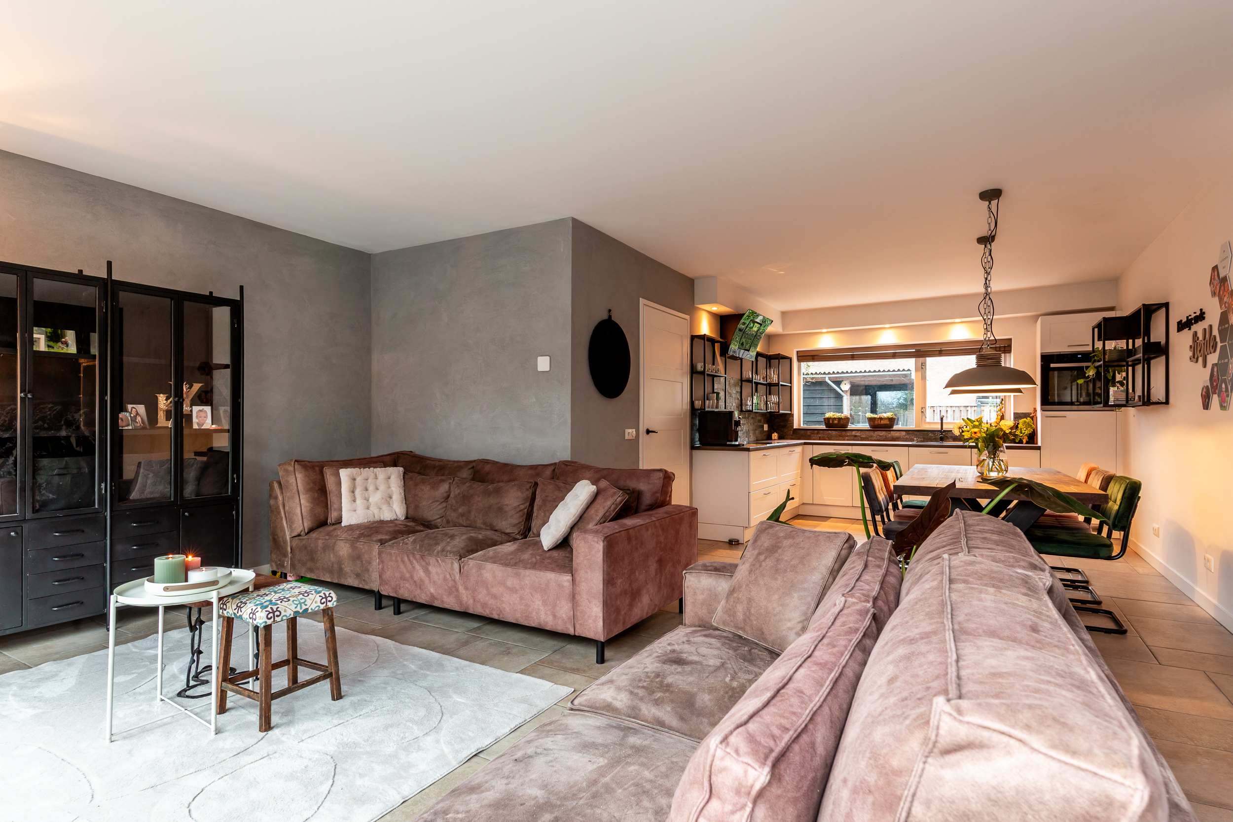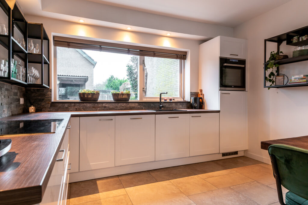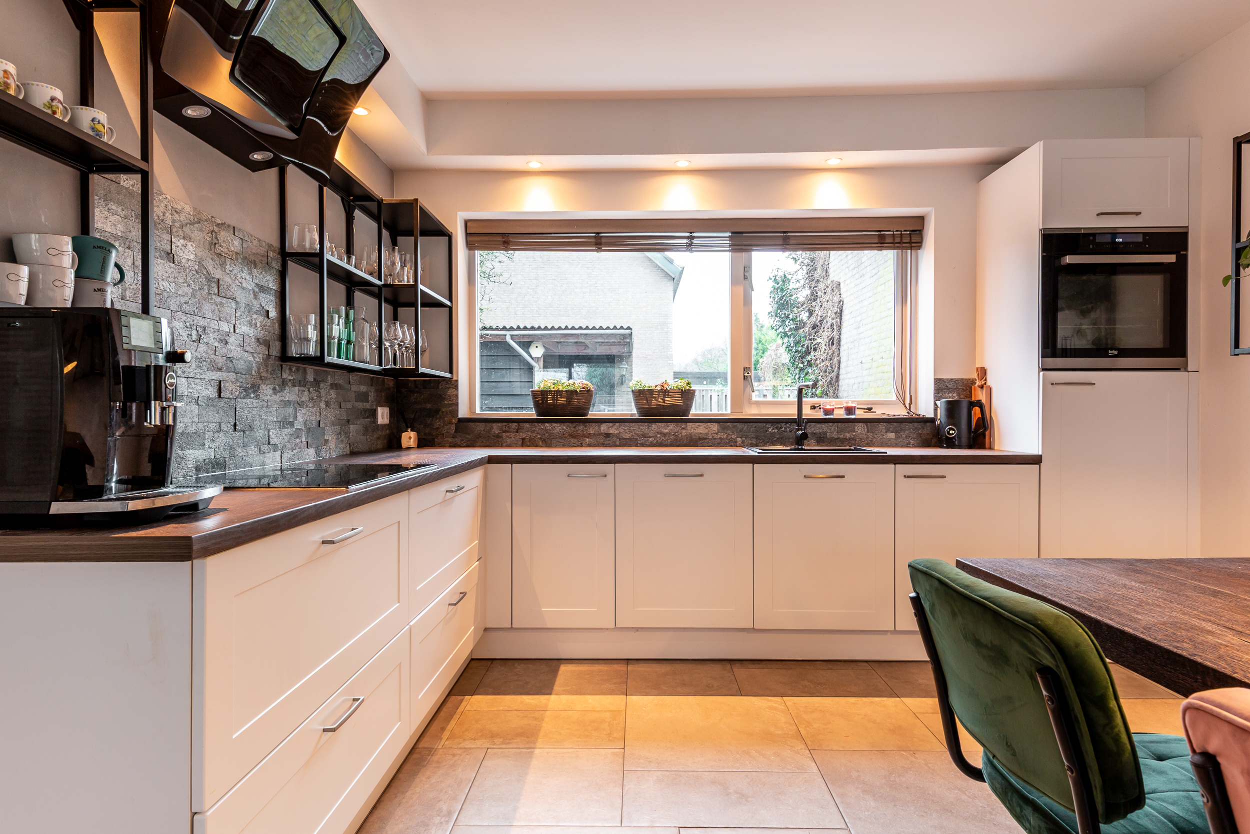 De woning beschikt over een ruime en lichte woonkamer die dankzij de schuifpui direct in verbinding staat met de zonnige achtertuin. Dit zorgt voor een open en aangename leefruimte met veel daglicht. De moderne open keuken sluit hier naadloos op aan en is uitgevoerd met diverse inbouwapparatuur en voldoende werk- en opbergruimte.