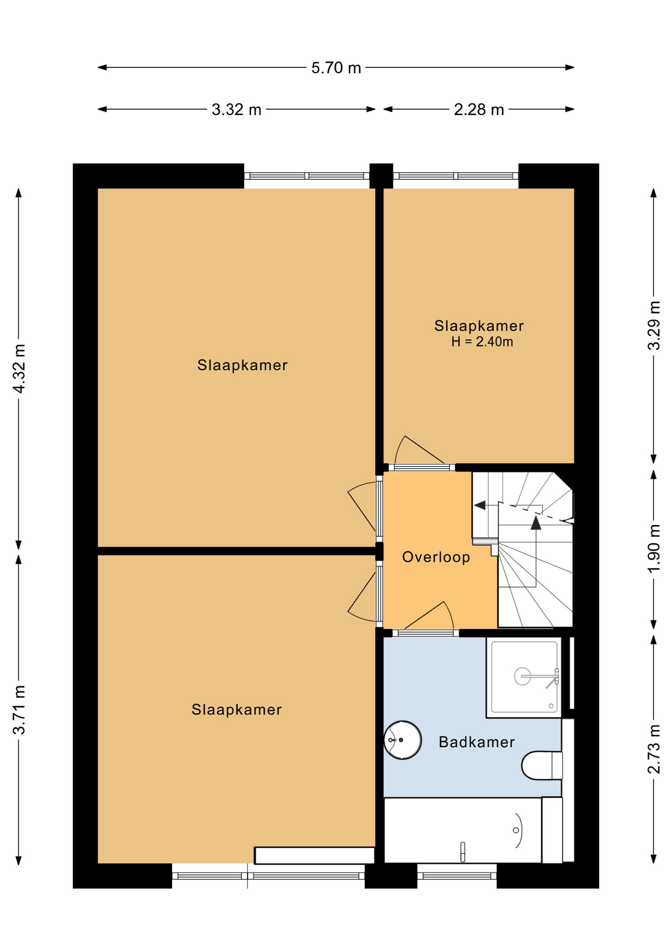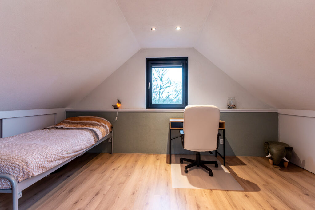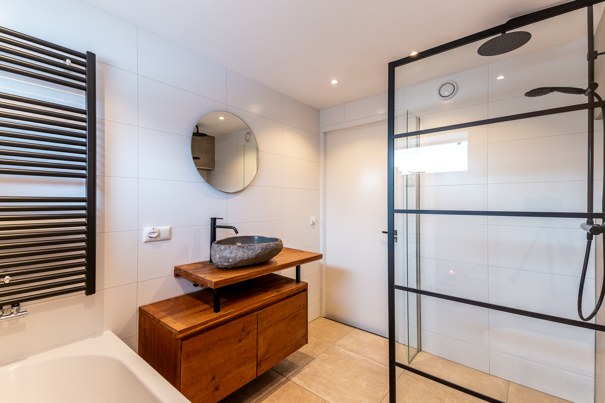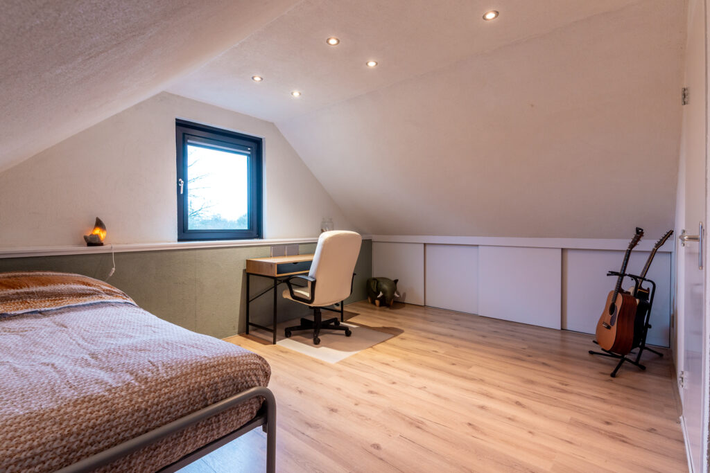 Op de eerste verdieping bevinden zich drie goed bemeten slaapkamers en een moderne badkamer. De badkamer is compleet uitgevoerd met een inloopdouche, ligbad, toilet en wastafelmeubel en beschikt over zowel natuurlijke als mechanische ventilatie. De tweede verdieping biedt nog eens twee slaapkamers, waardoor de woning zeer geschikt is voor gezinnen of voor wie extra ruimte wenst voor werken of hobby’s.