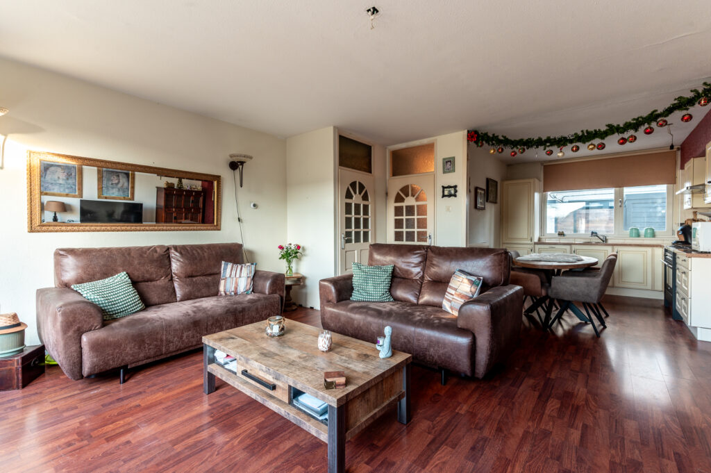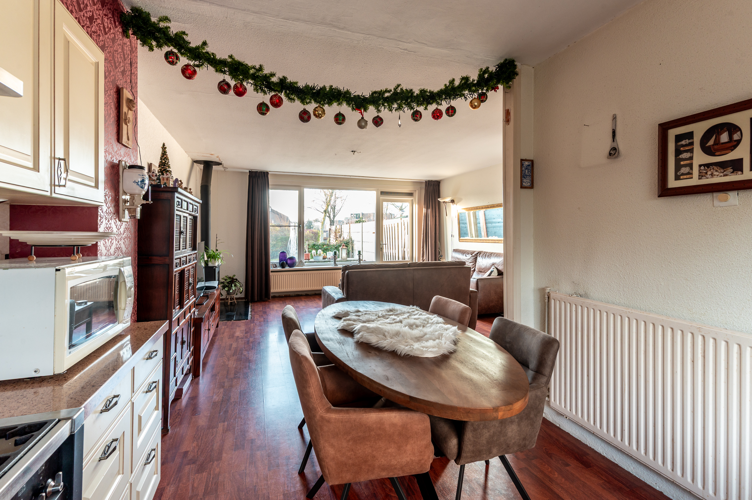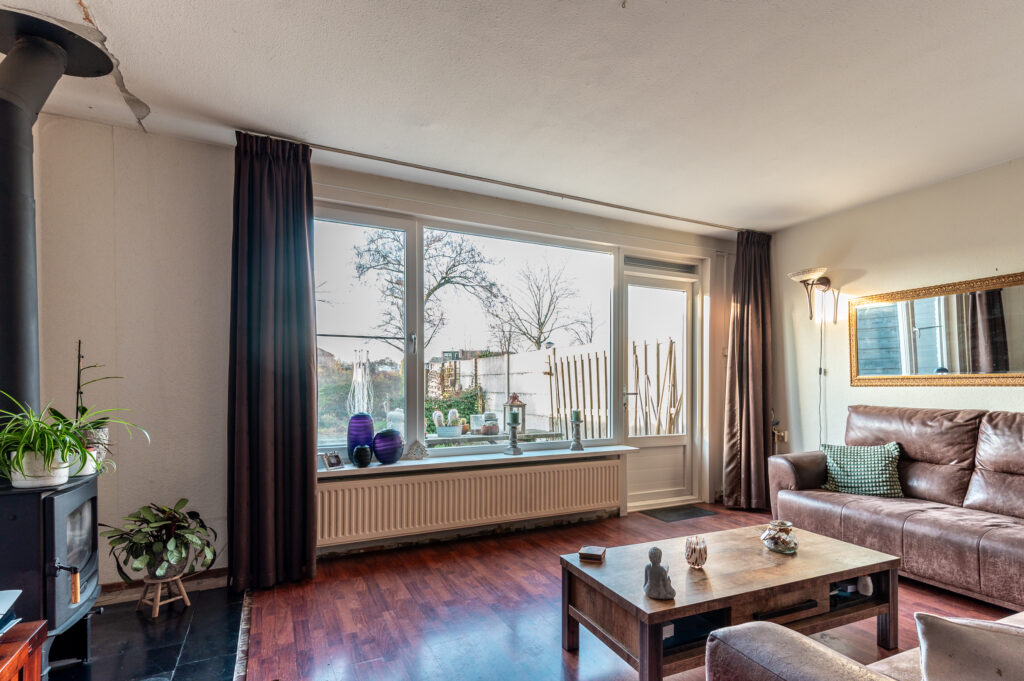Bij binnenkomst valt direct de lichte en uitnodigende woonkamer op. De ruime opzet en de grote raampartijen zorgen voor een prettige doorzonwoning, waarin de sfeervolle houtkachel een warm middelpunt vormt tijdens de koudere maanden. Vanuit de woonkamer loopt u zo de zonnige achtertuin in, waar u de hele middag en avond kunt genieten van de westerzon. Met een diepte van circa dertien meter biedt deze tuin alle mogelijkheden voor ontspanning, spelen of gezellig samen buiten eten.