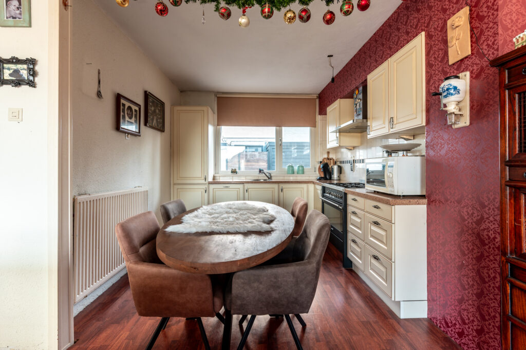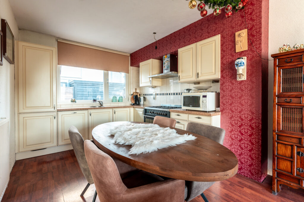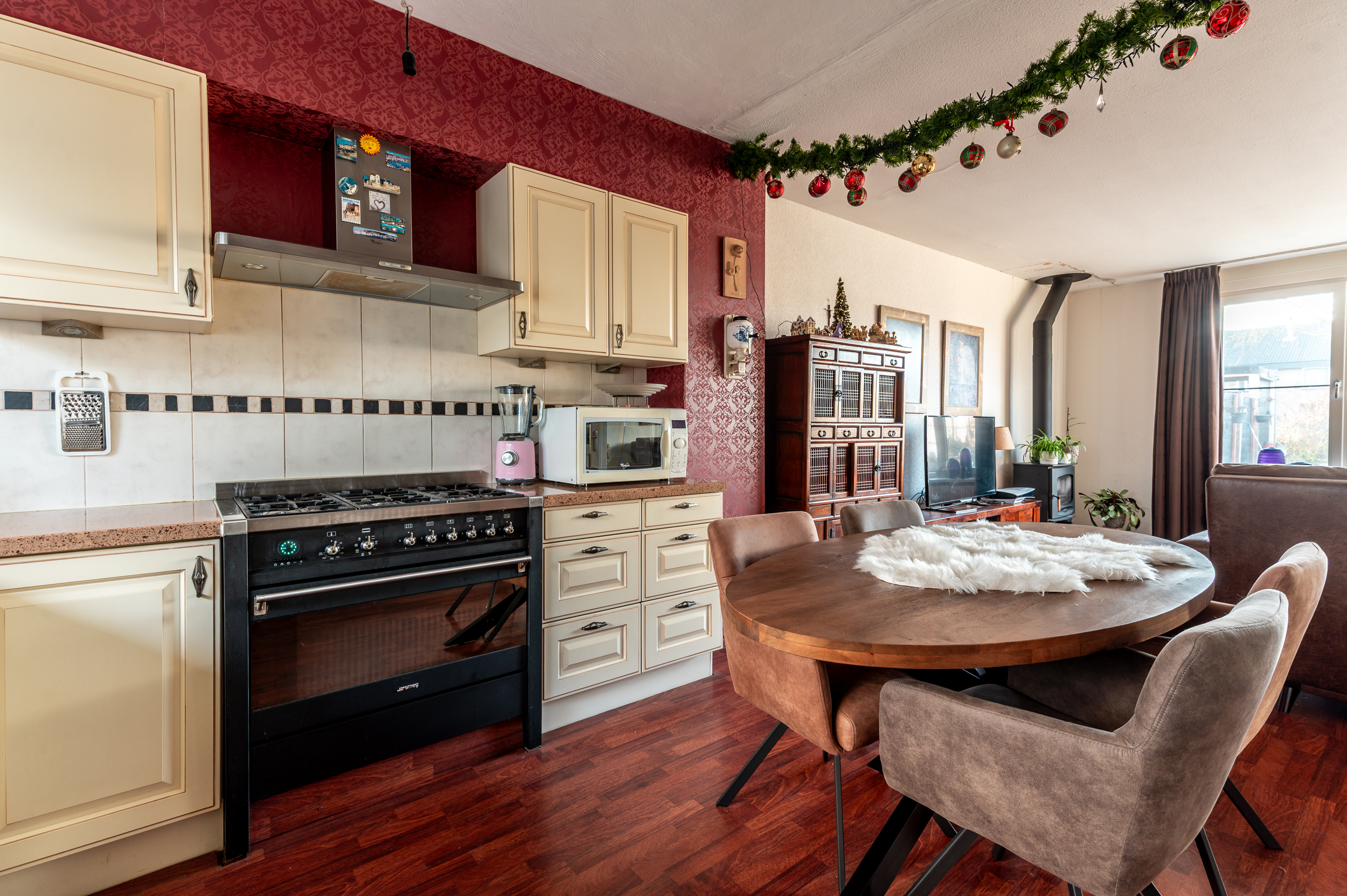 Aan de voorzijde bevindt zich de open keuken, die dankzij de praktische indeling perfect aansluit op het woongedeelte. De keuken is uitgerust met diverse inbouwapparaten, waardoor koken hier dagelijks een plezier wordt.