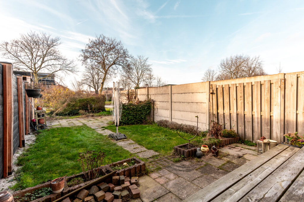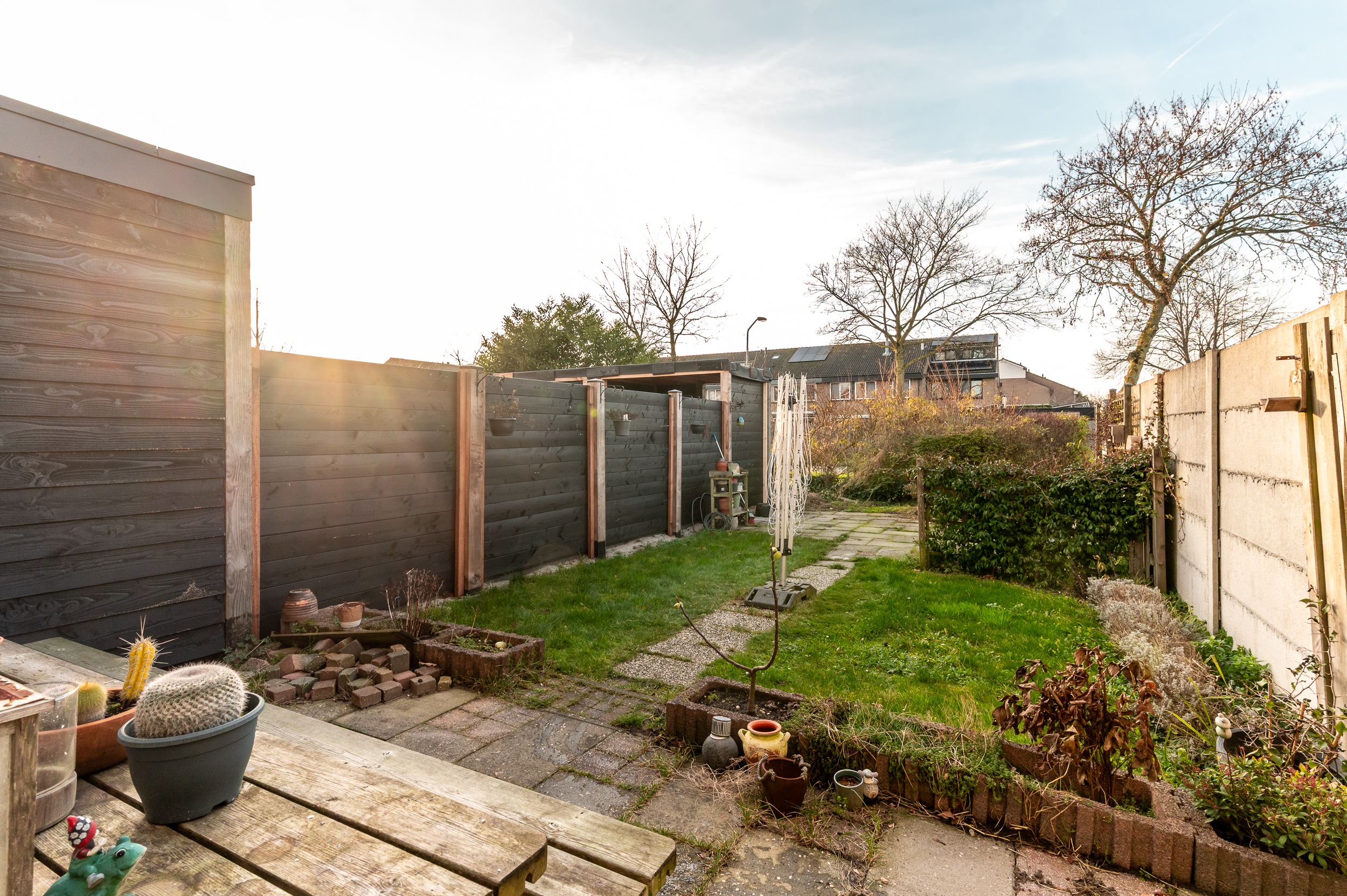 De achtertuin (13x5 meter) is gelegen op het westen, hier kunt u hier genieten van de middag en avondzon.