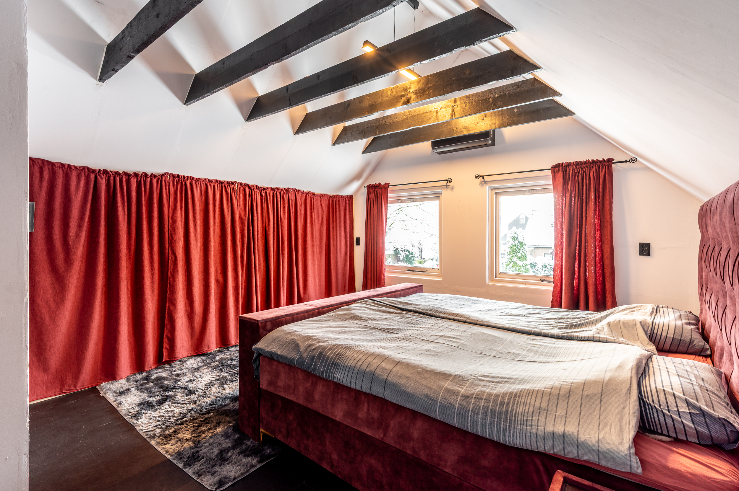 * Het schuine dak is gedeeltelijk na-geïsoleerd ter plaatse van de grote slaapkamer (2025);