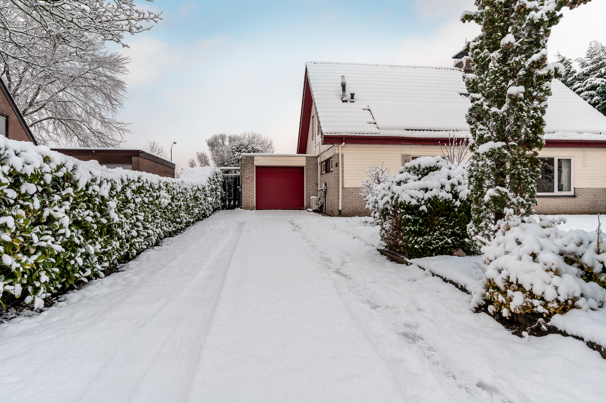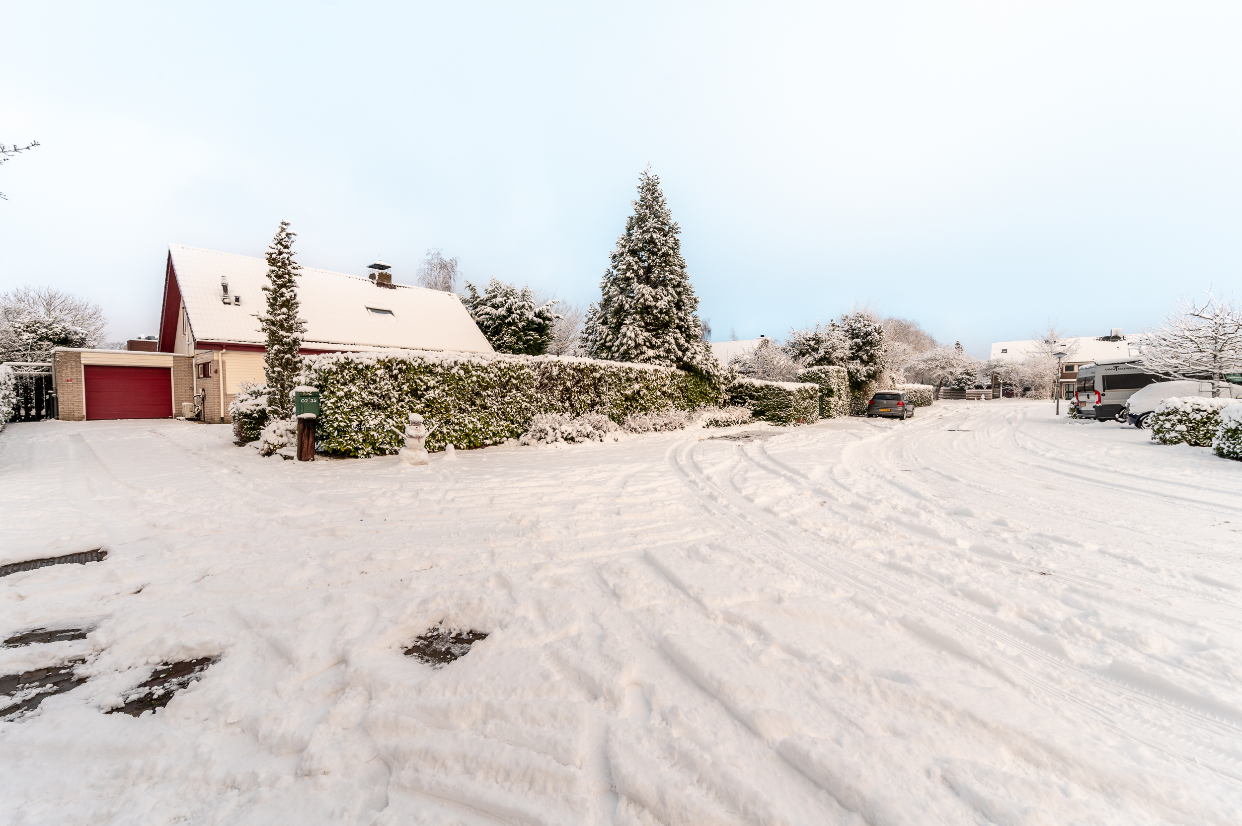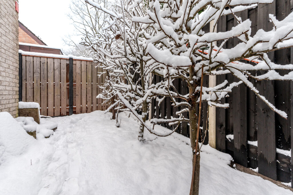 De zeer ruime voortuin (ca. 16 x 20 meter) is gelegen op het zonnige zuidwesten, grenst aan een rustige straat, biedt veel privacy en parkeergelegenheid voor meerdere auto’s en is voorzien van een laadpunt voor een elektrische auto. Via beide zijden kunt u rondom de woning de achtertuin bereiken.