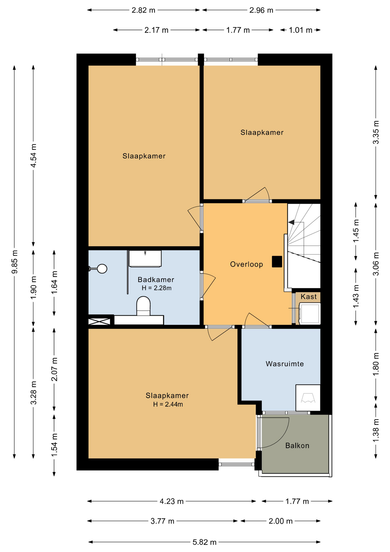 De eerste verdieping is volledig gestuct en voorzien van een laminaat vloer.