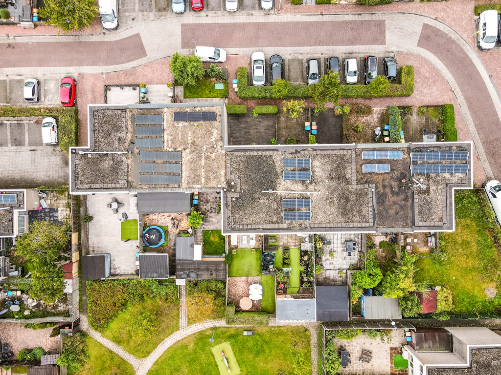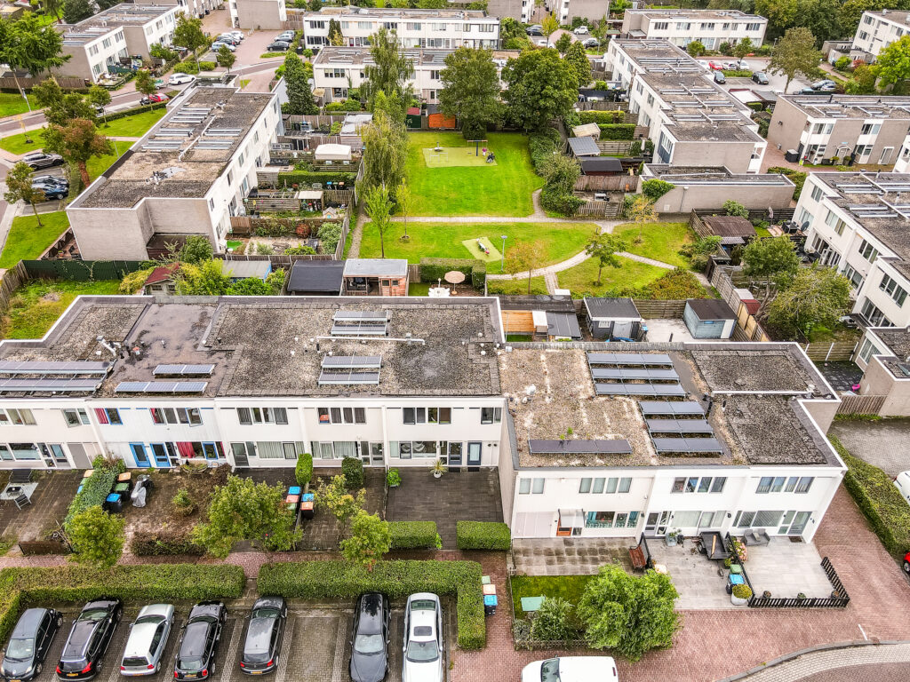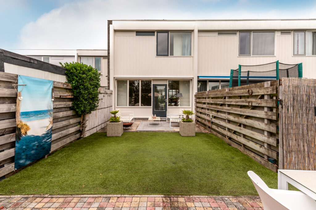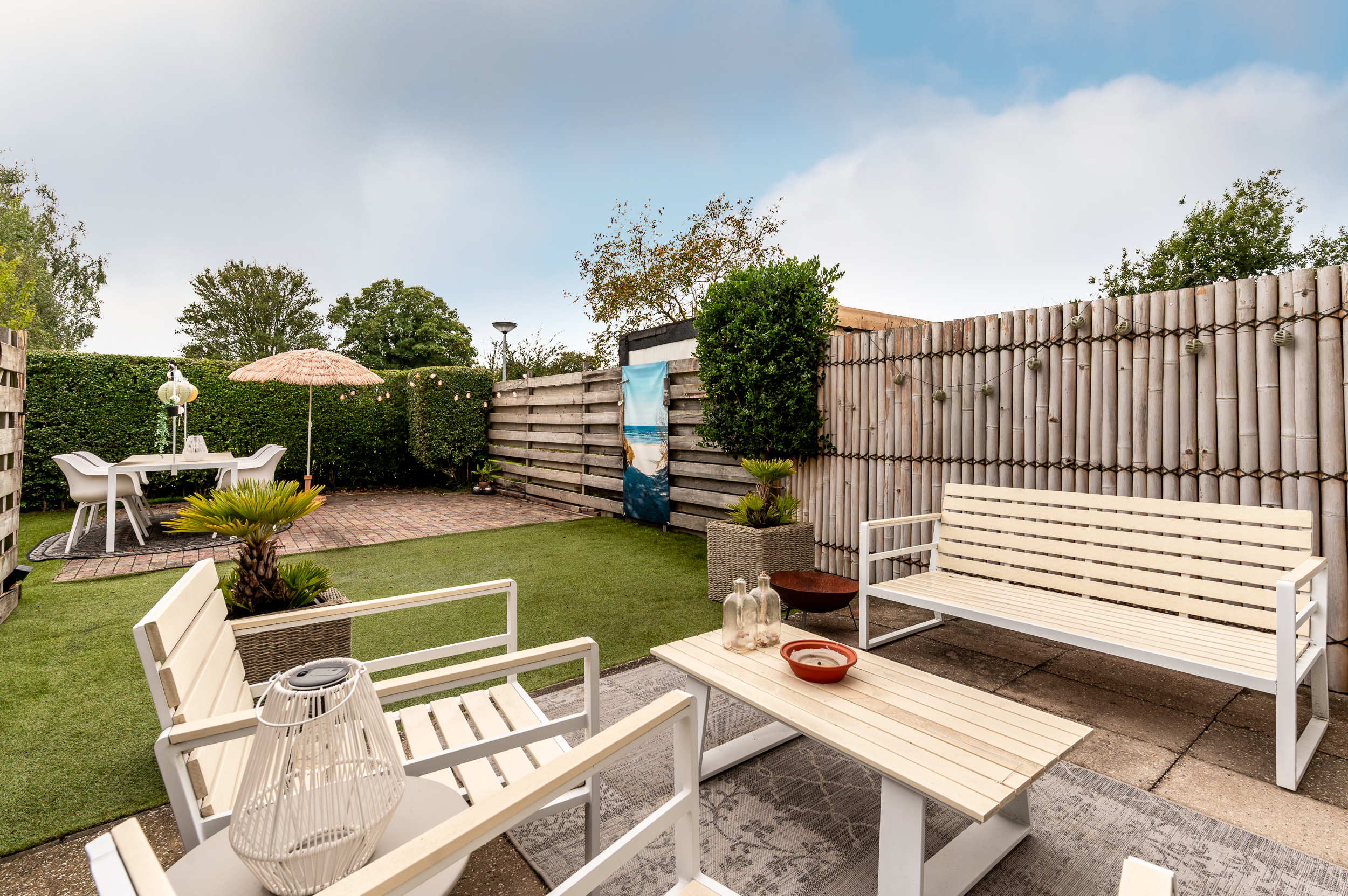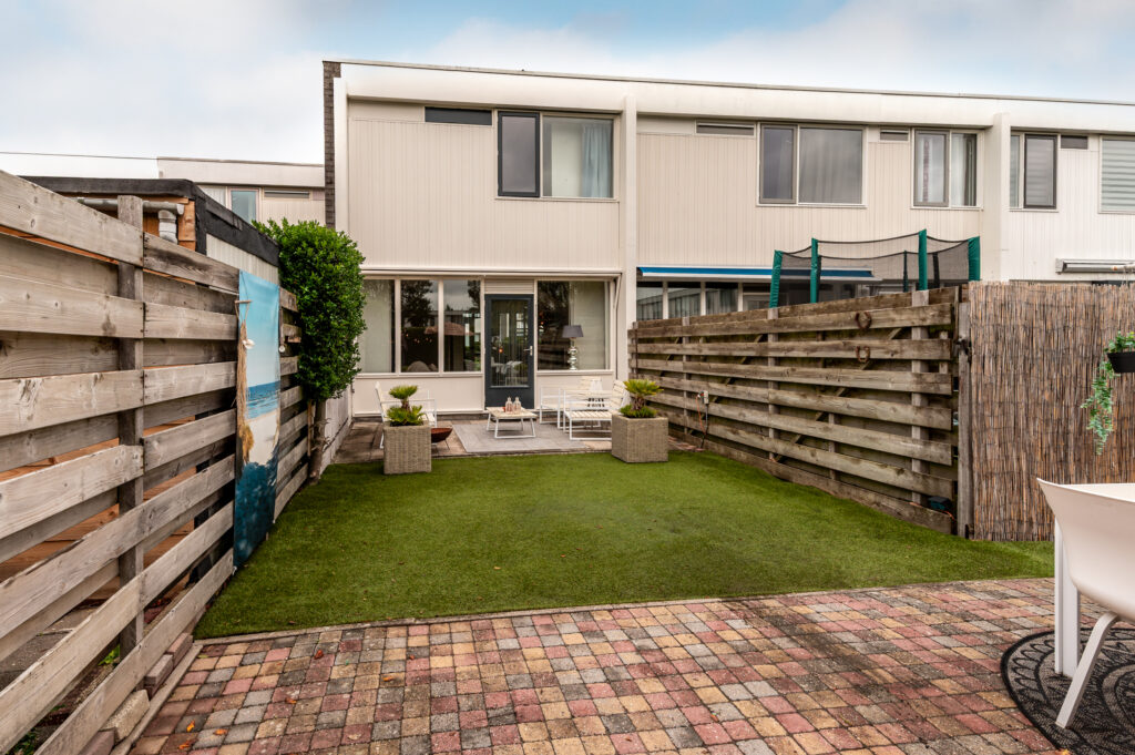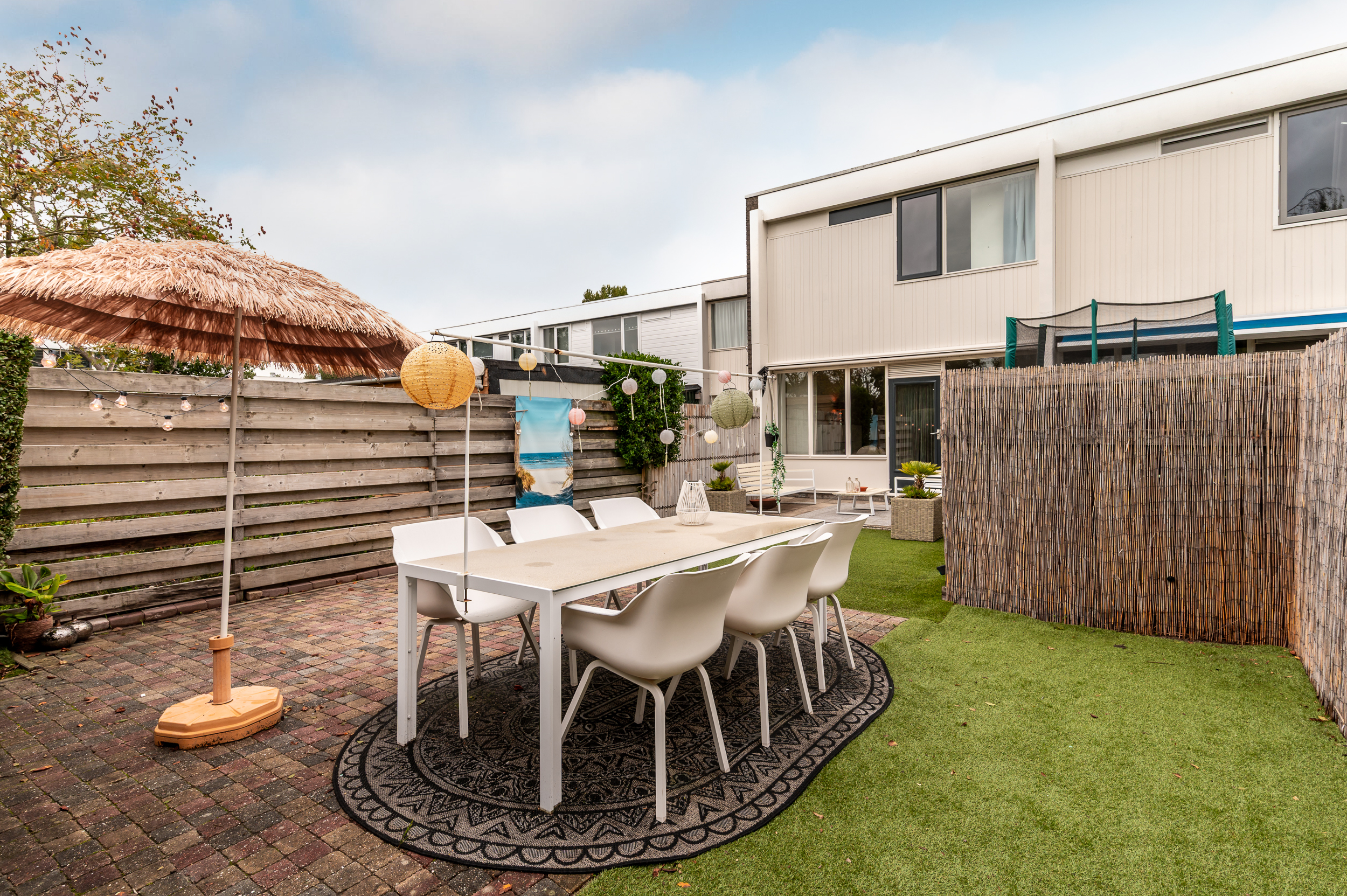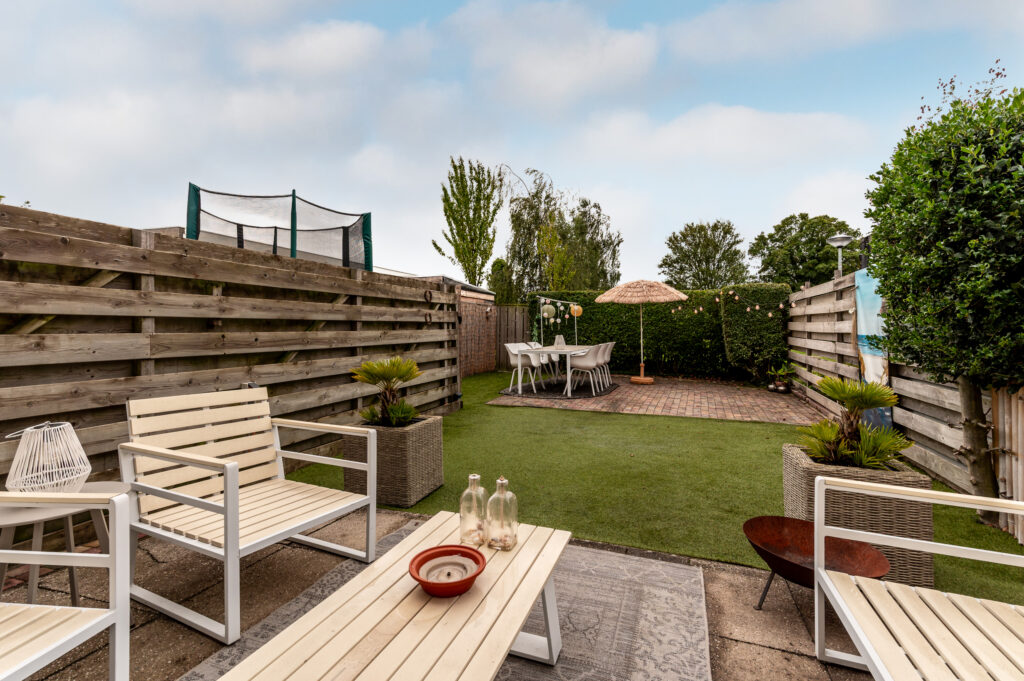De verzorgd aangelegde tuin is gelegen op het zuiden en voorzien van meerdere terrassen met bestrating, kunstgras, zonwering en een praktische achterom. De tuin is onderhoudsarm aangelegd, heeft een vrije ligging aan de achterzijde, wordt omheind middels schuttingen en een groene haag en geeft veel privacy! Vanuit uw tuin loopt u zo het park in met speeltoestellen, ideaal voor gezinnen met kinderen.