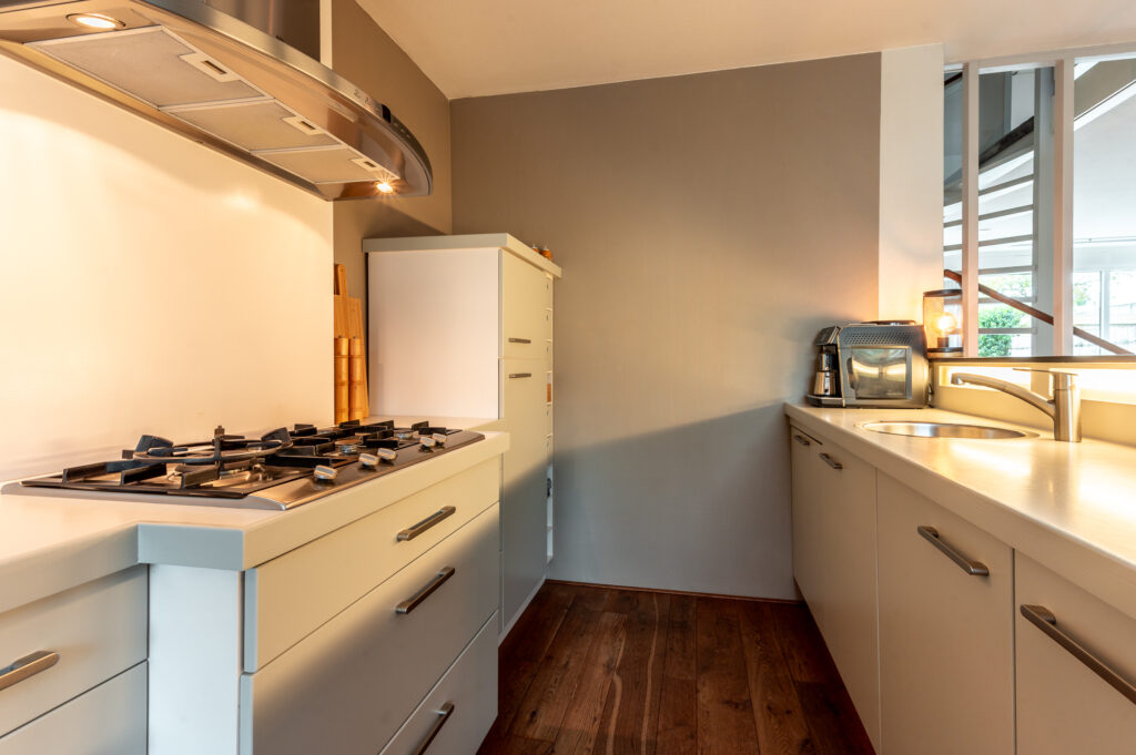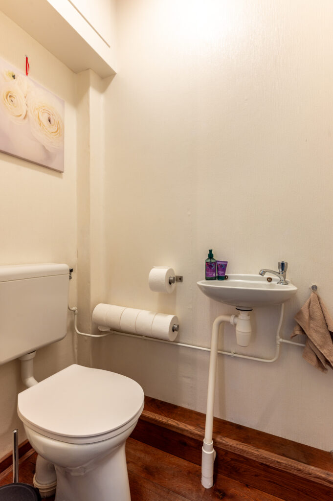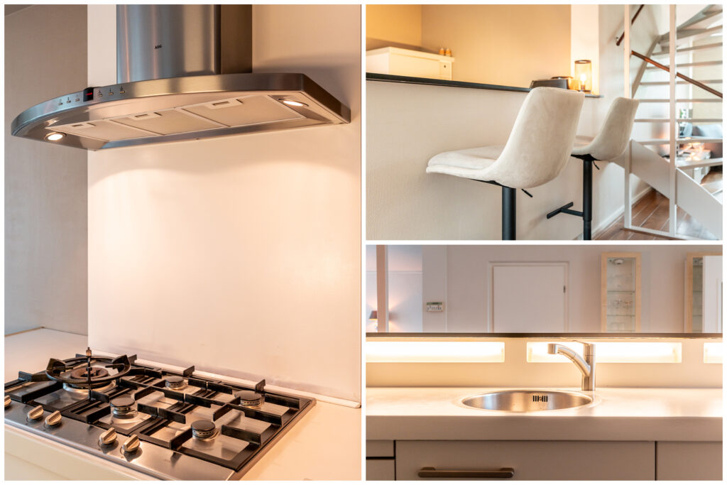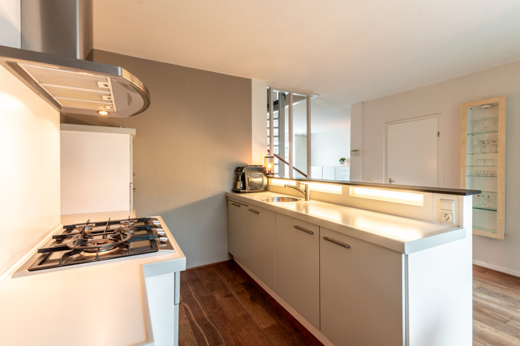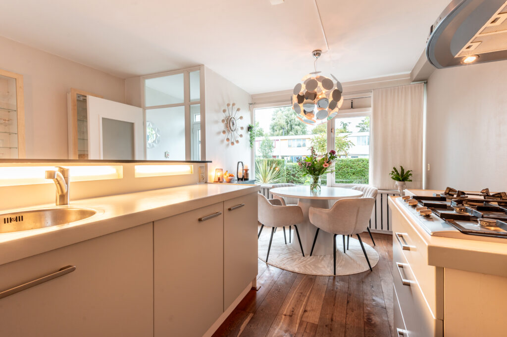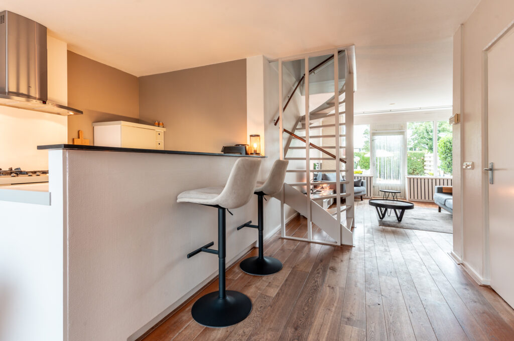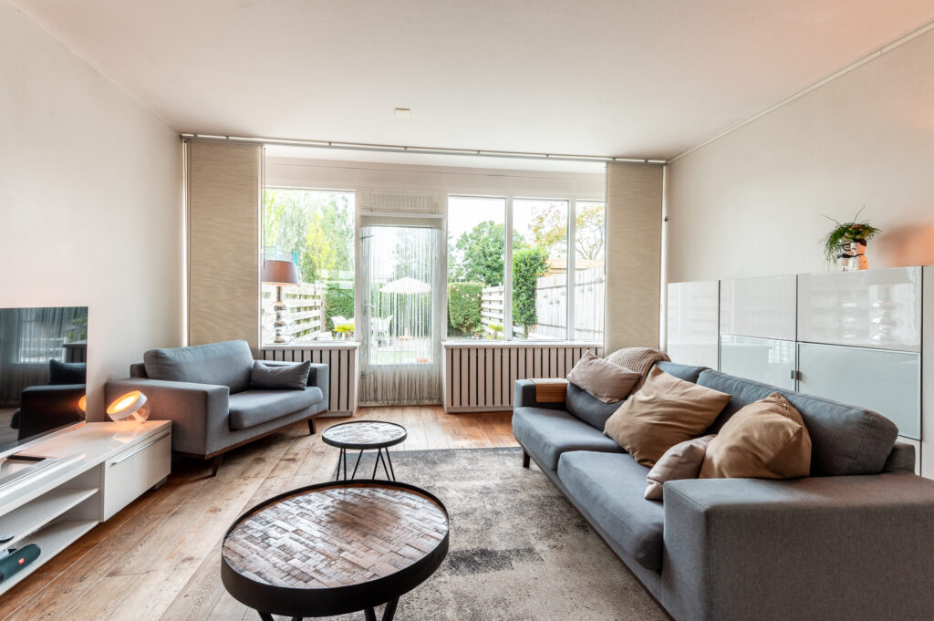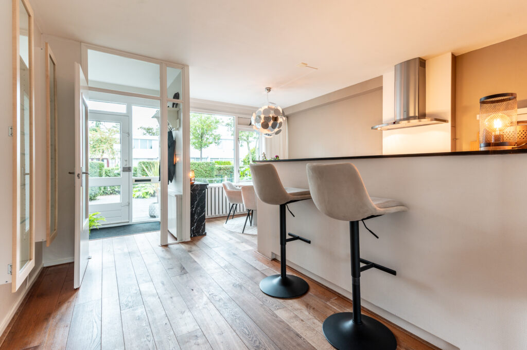 Entree/hal met de garderobe en toegang naar de keuken/woonkamer. Een heerlijke speels ingedeelde en tuingerichte woonkamer met grote raampartijen (veel lichtinval), een fraaie parketvloer en een deur naar de tuin. Aan de voorzijde bevindt zich de keurige inbouwkeuken (2007) met bar, welke voorzien is van de volgende apparatuur; koelkast, vaatwasser (2022), 5-pits gaskookplaat en een afzuigkap. Ruime opstelmogelijkheden voor een eettafel, waar u heerlijk met vrienden en familie kunt dineren. Tussenhal met de toiletruimte, meterkast, bergkast en toegang tot de inpandige berging/bijkeuken (ca. 8 m2) met de wasmachine/droger aansluiting, een koel/vriescombinatie, combimagnetron, veel praktische bergruimte en een deur naar de voortuin.