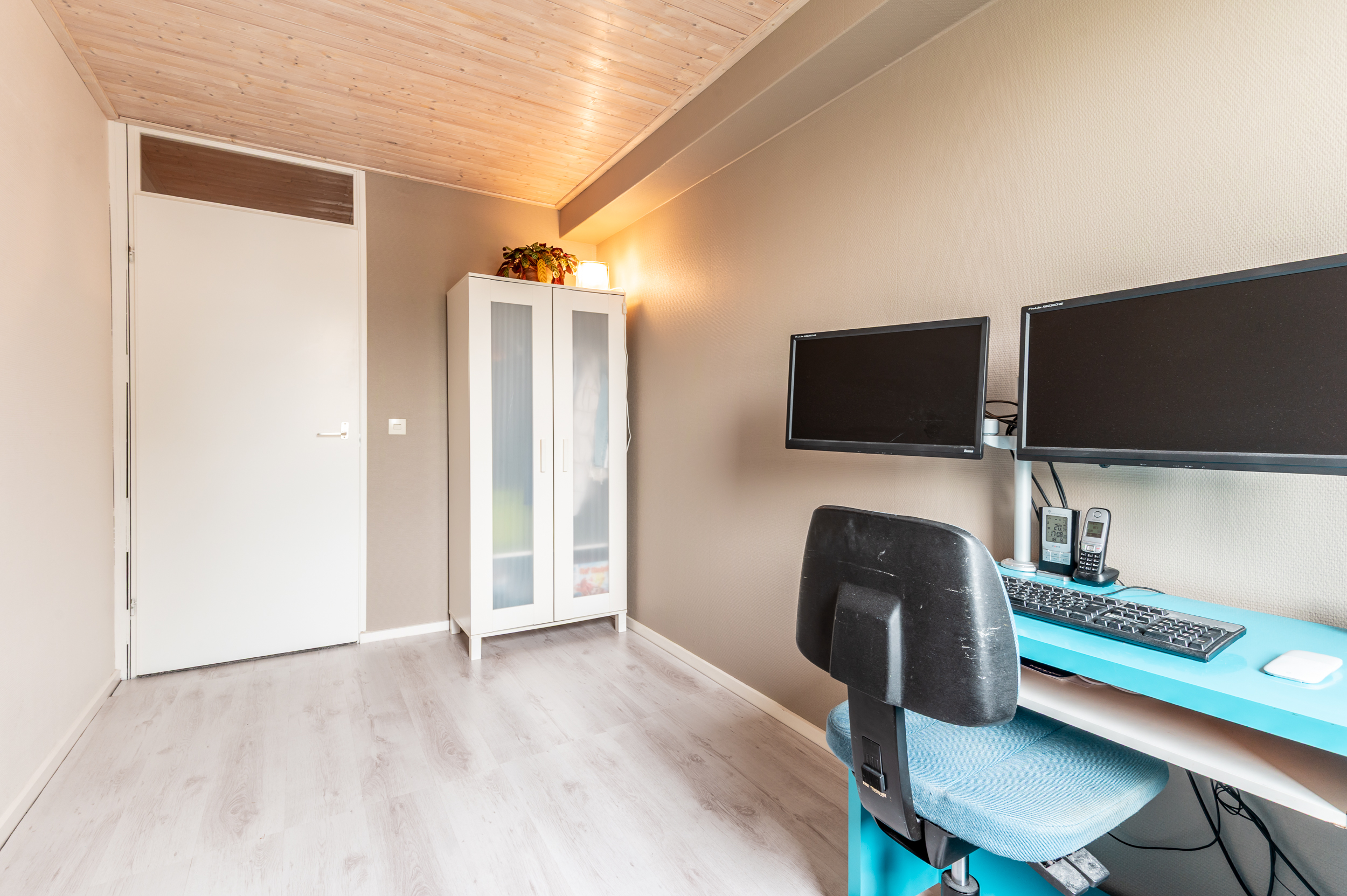 Overloop met toegang tot 4 ruime slaapkamers (ca. 13 / 12 / 10 / 10 m2), waarbij de ouderslaapkamer is voorzien van een ingebouwde kastenwand. Moderne badkamer (2007) met een (inloop)douche, wastafelmeubel, hoge kast, 2e toilet, vloerverwarming en een Solatube voor natuurlijk daglicht. Technische ruimte met de opstelplaats van de cv-ketel (2013) en veel praktische bergruimte. De verdieping is grotendeels voorzien van een laminaatvloer en deels voorzien van vloerbedekking.