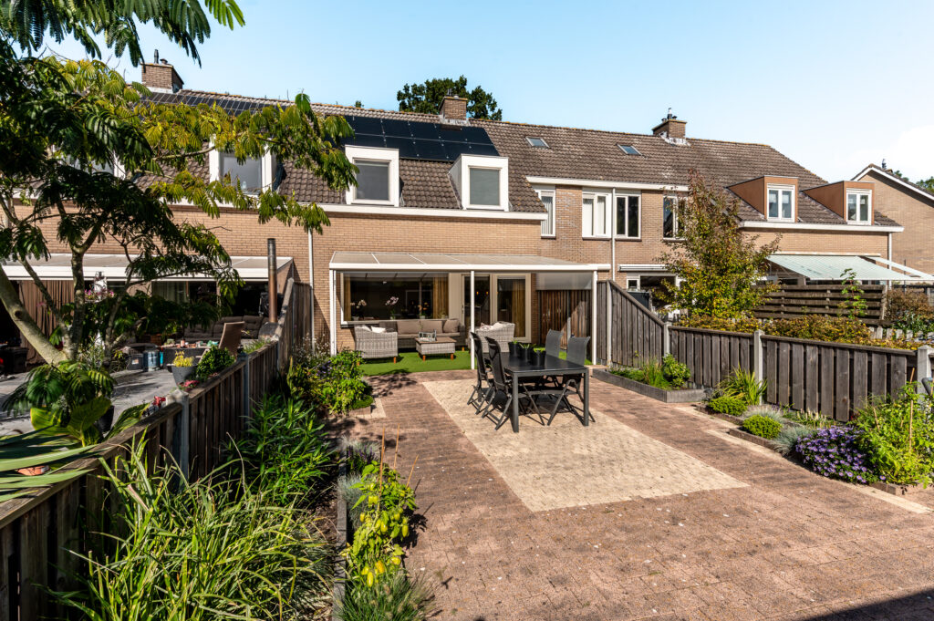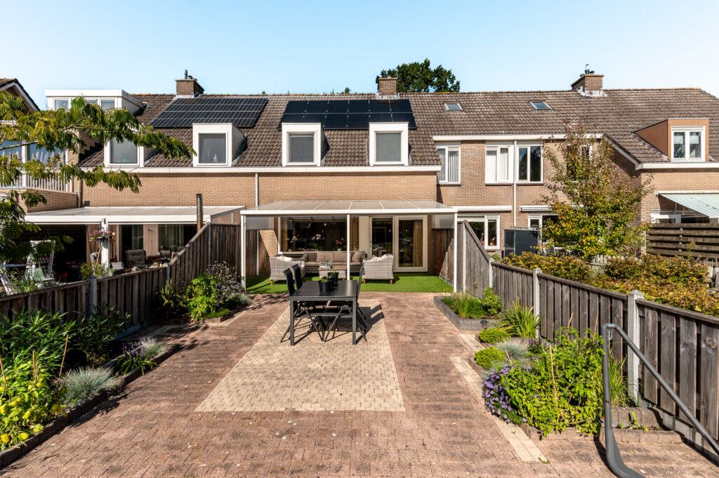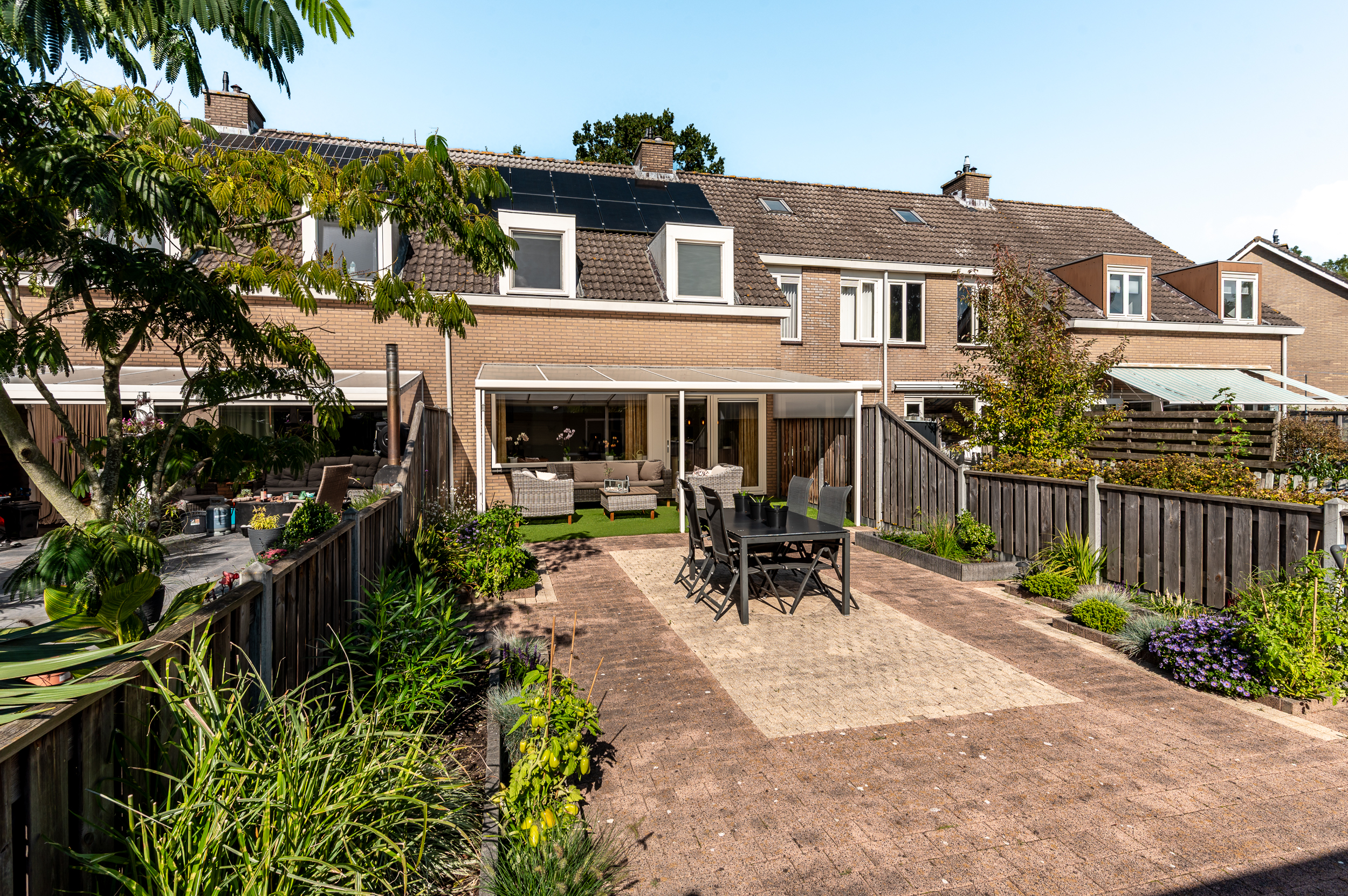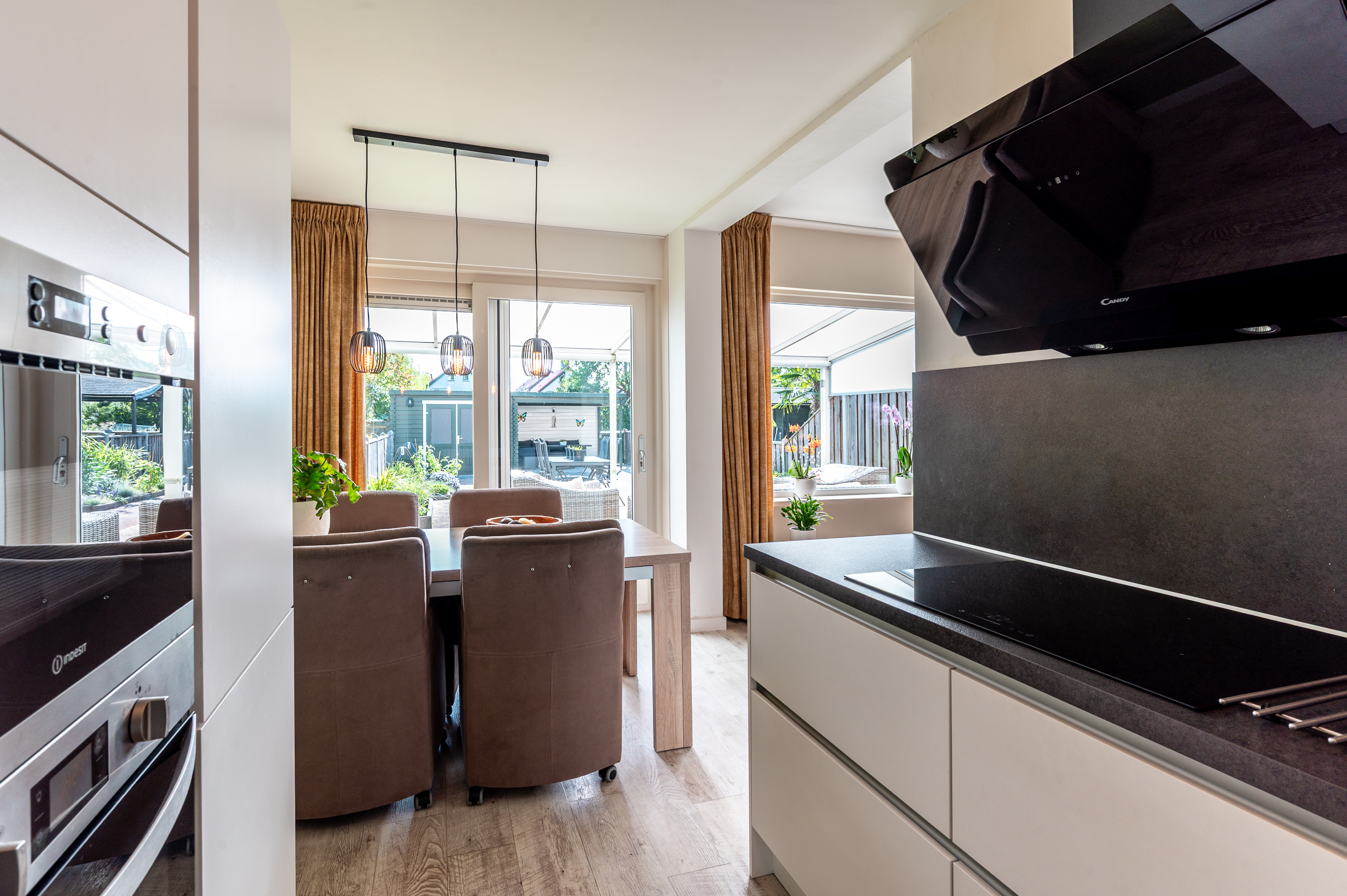 De woning is volledig voorzien van kunststof kozijnen en beschikt over maar liefst twaalf zonnepanelen, waardoor het wooncomfort samenkomt met duurzaamheid en lage energielasten. Binnen treft u een ruime en lichte woonkamer van circa 28 m², waar de openslaande deuren naar de tuin zorgen voor een prettige verbinding tussen binnen en buiten. Aansluitend bevindt zich de moderne half open keuken, uitgerust met diverse inbouwapparatuur en uitgevoerd in een stijl die perfect aansluit bij het verzorgde geheel.