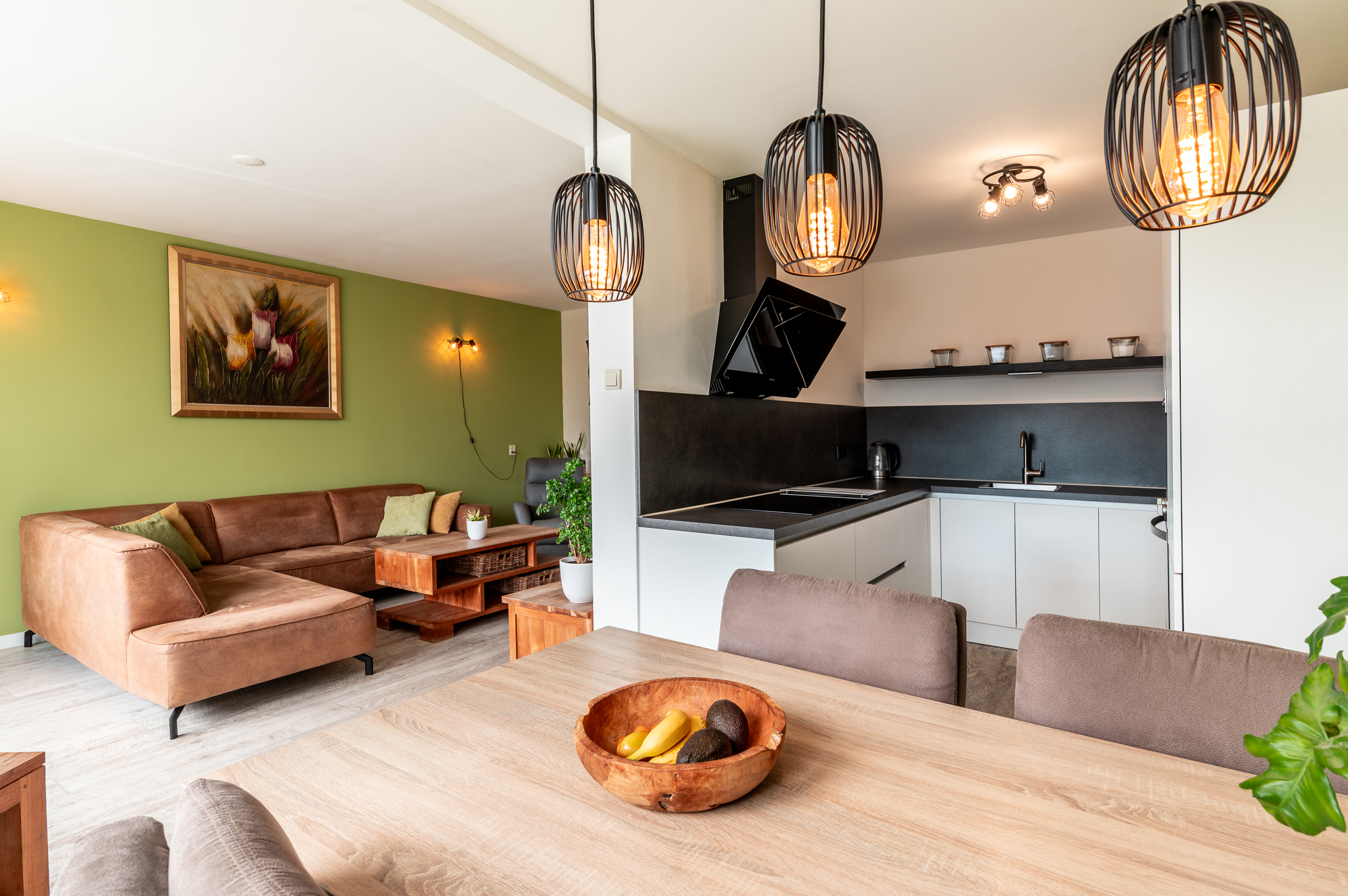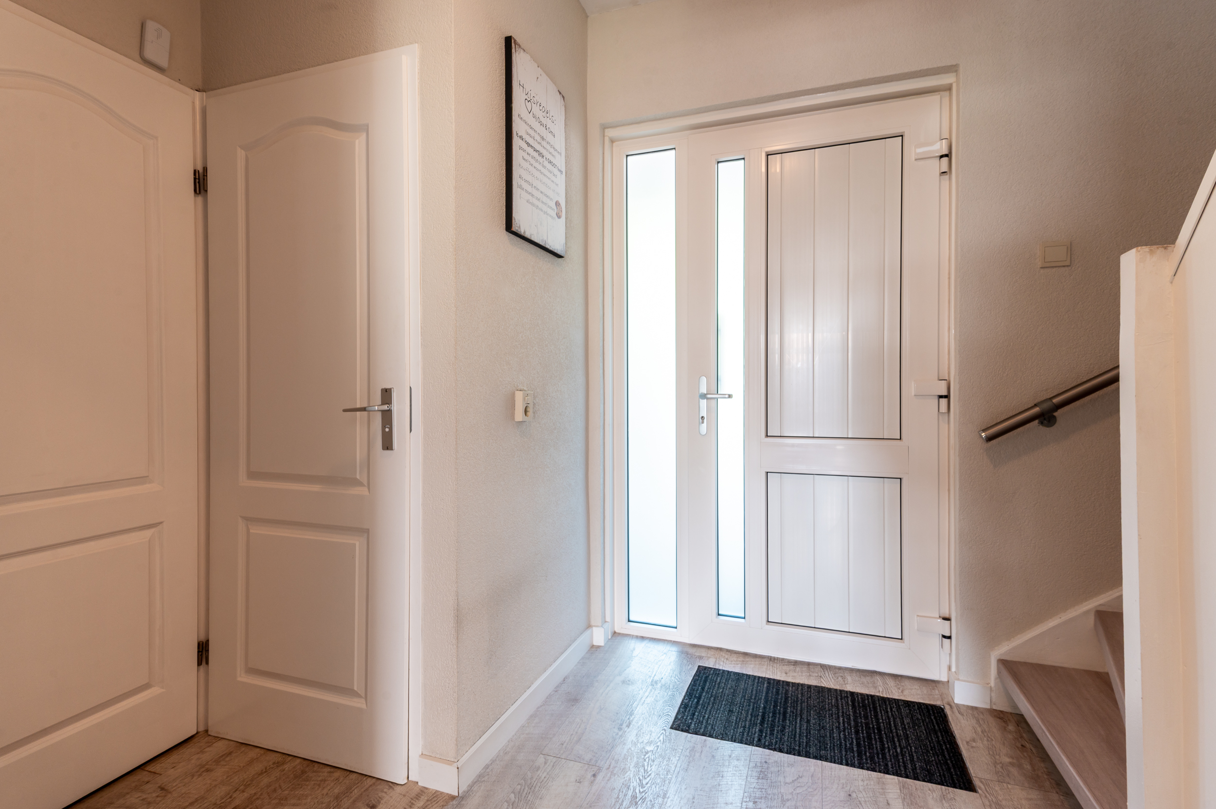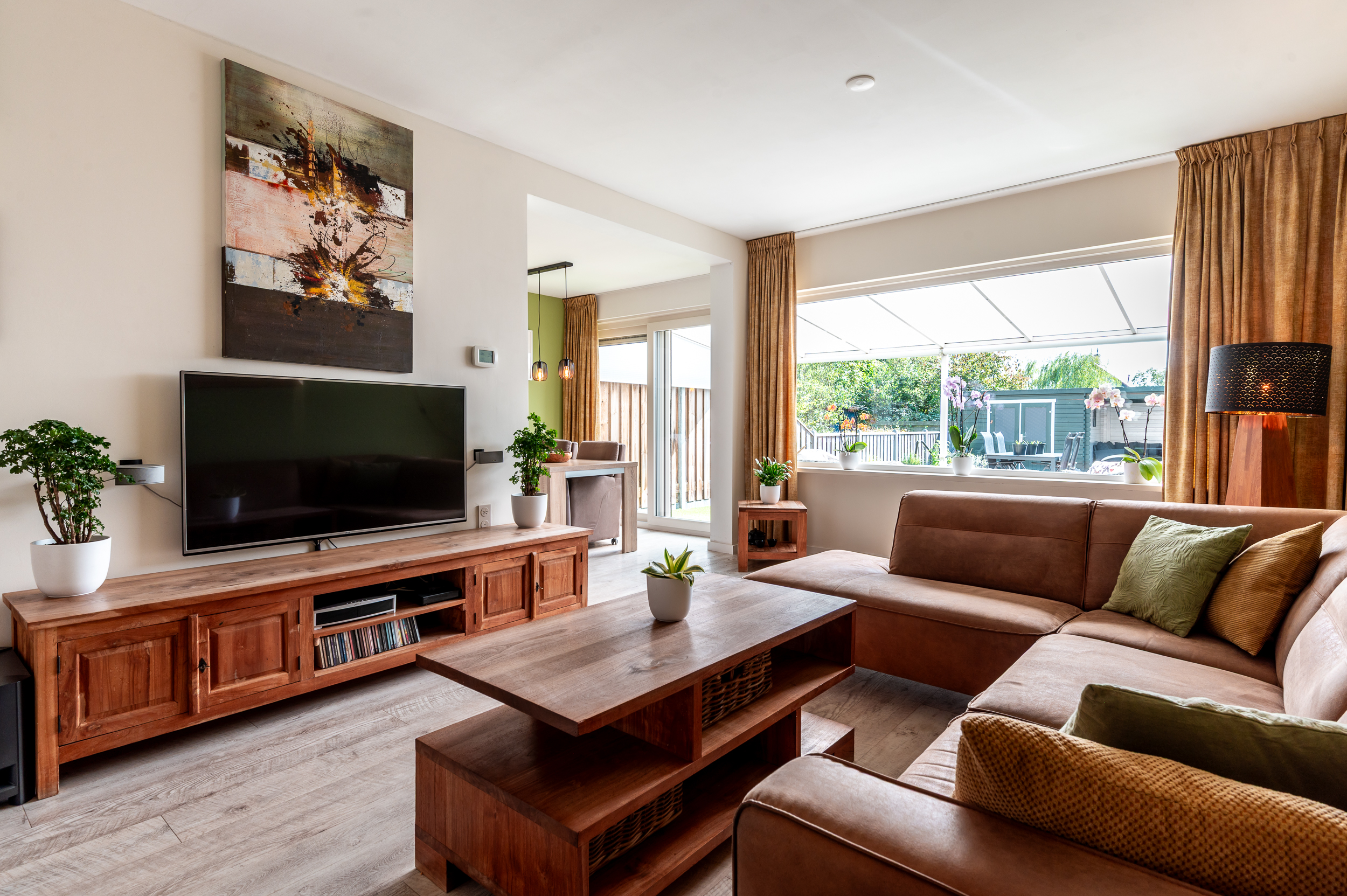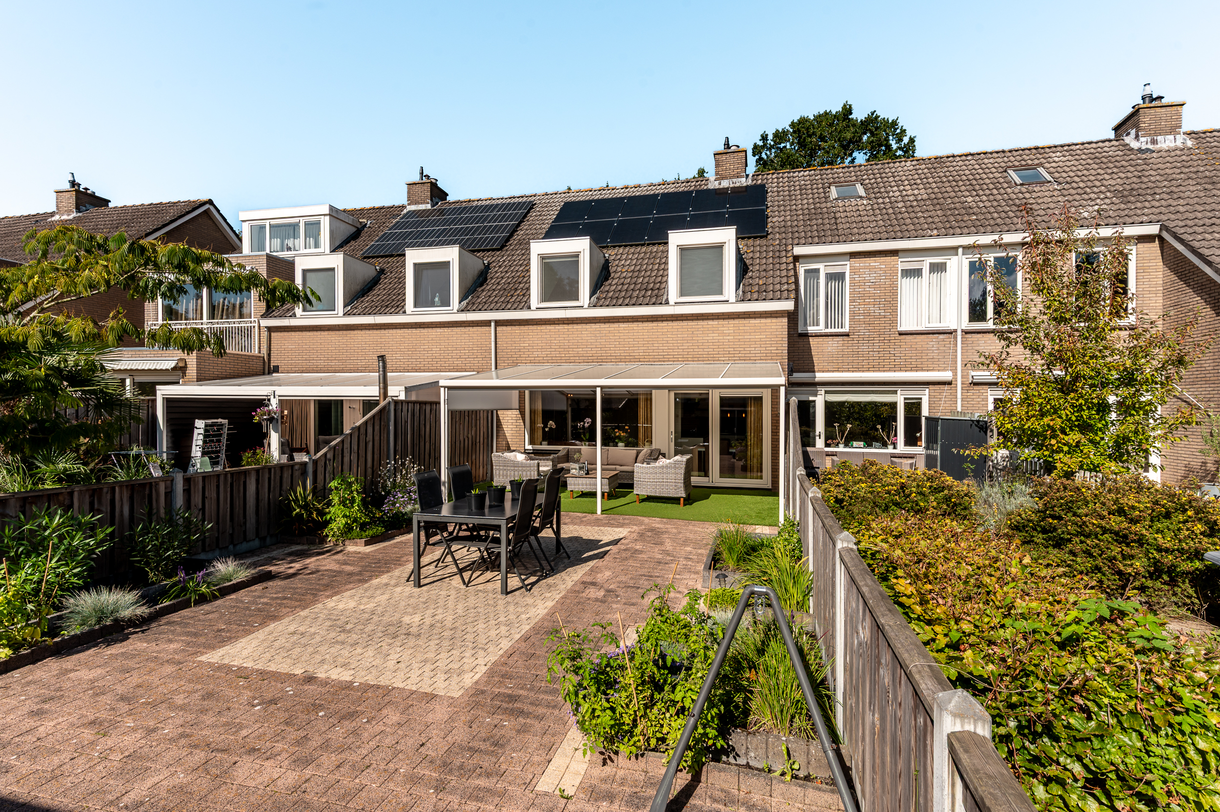 De woning is volledig voorzien van kunststof kozijnen en beschikt over maar liefst twaalf zonnepanelen, waardoor het wooncomfort samenkomt met duurzaamheid en lage energielasten. Binnen treft u een ruime en lichte woonkamer van circa 28 m², waar de openslaande deuren naar de tuin zorgen voor een prettige verbinding tussen binnen en buiten. Aansluitend bevindt zich de moderne half open keuken, uitgerust met diverse inbouwapparatuur en uitgevoerd in een stijl die perfect aansluit bij het verzorgde geheel.