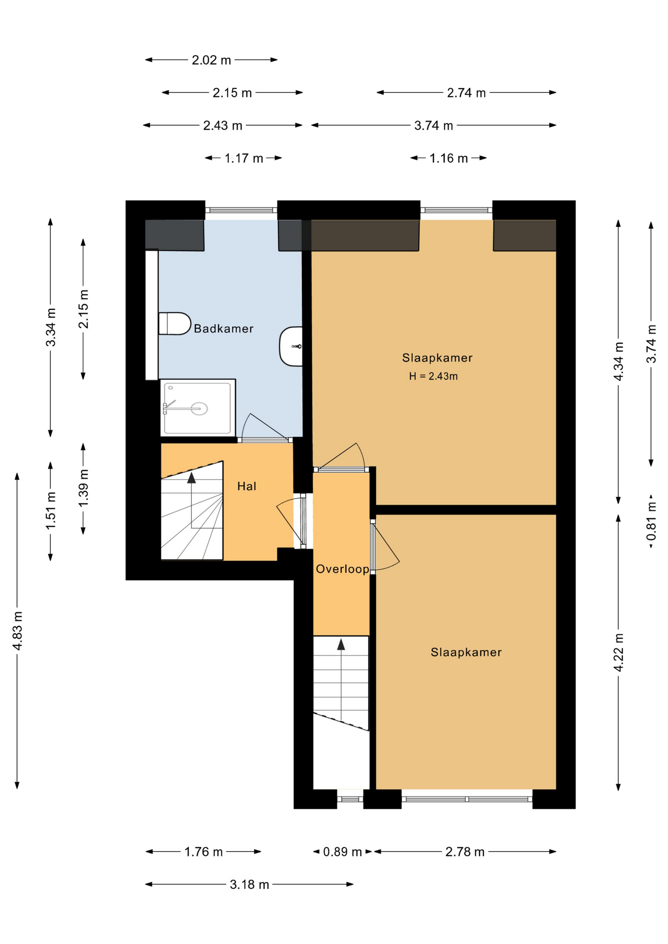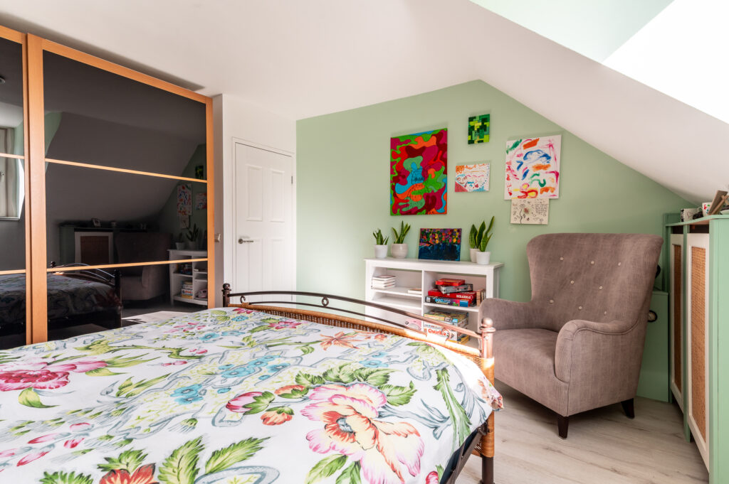 Op de eerste verdieping bevinden zich twee comfortabele slaapkamers en de badkamer. Deze is ingericht met een wastafelmeubel, toilet en douche, voorzien van vloerverwarming en natuurlijke ventilatie. De tweede verdieping biedt ruimte aan een derde slaapkamer en daarmee de mogelijkheid om een ideale werk- of logeerkamer te creëren.