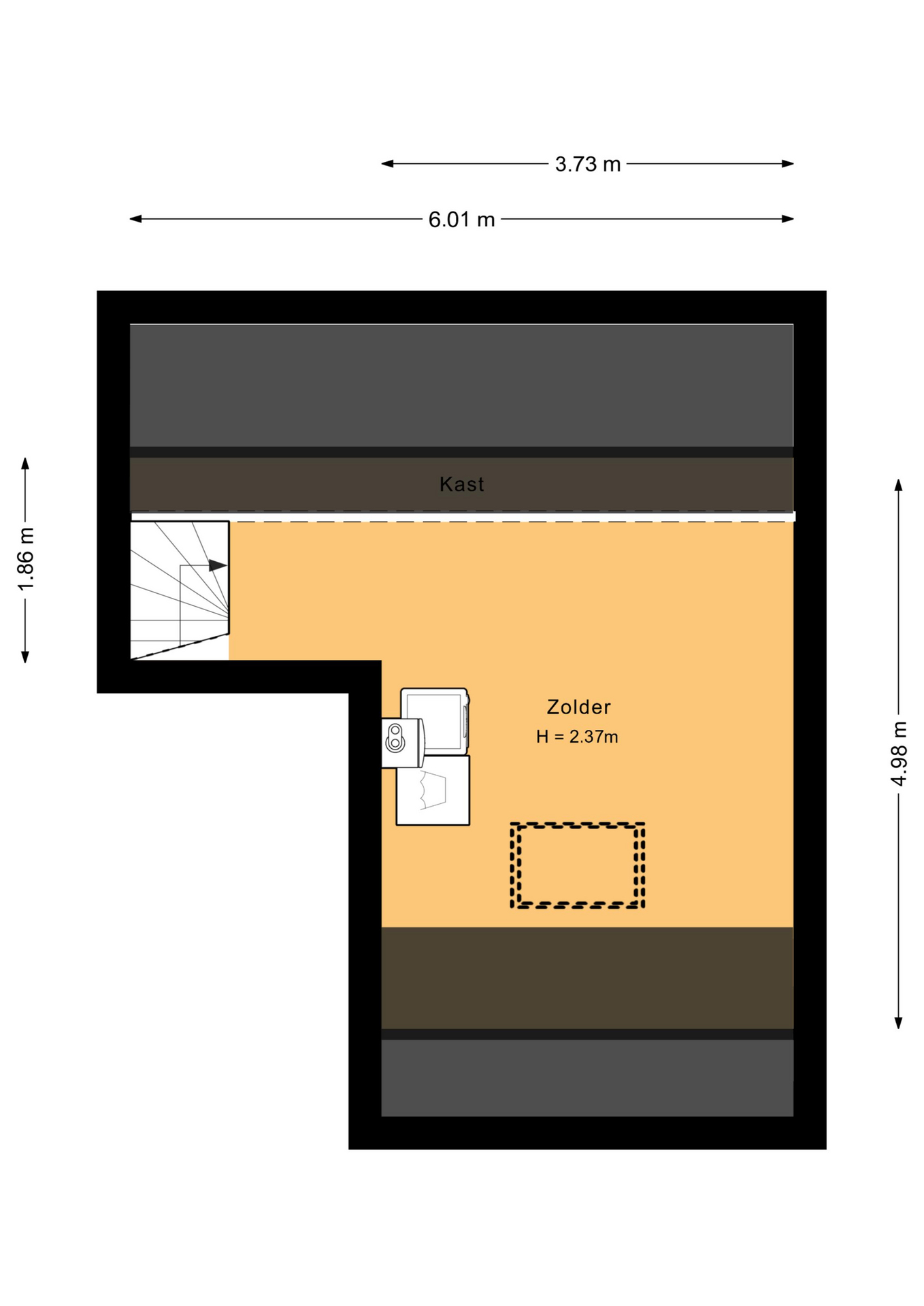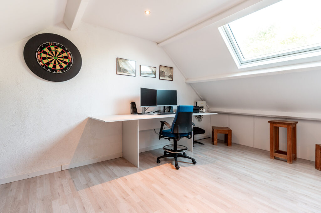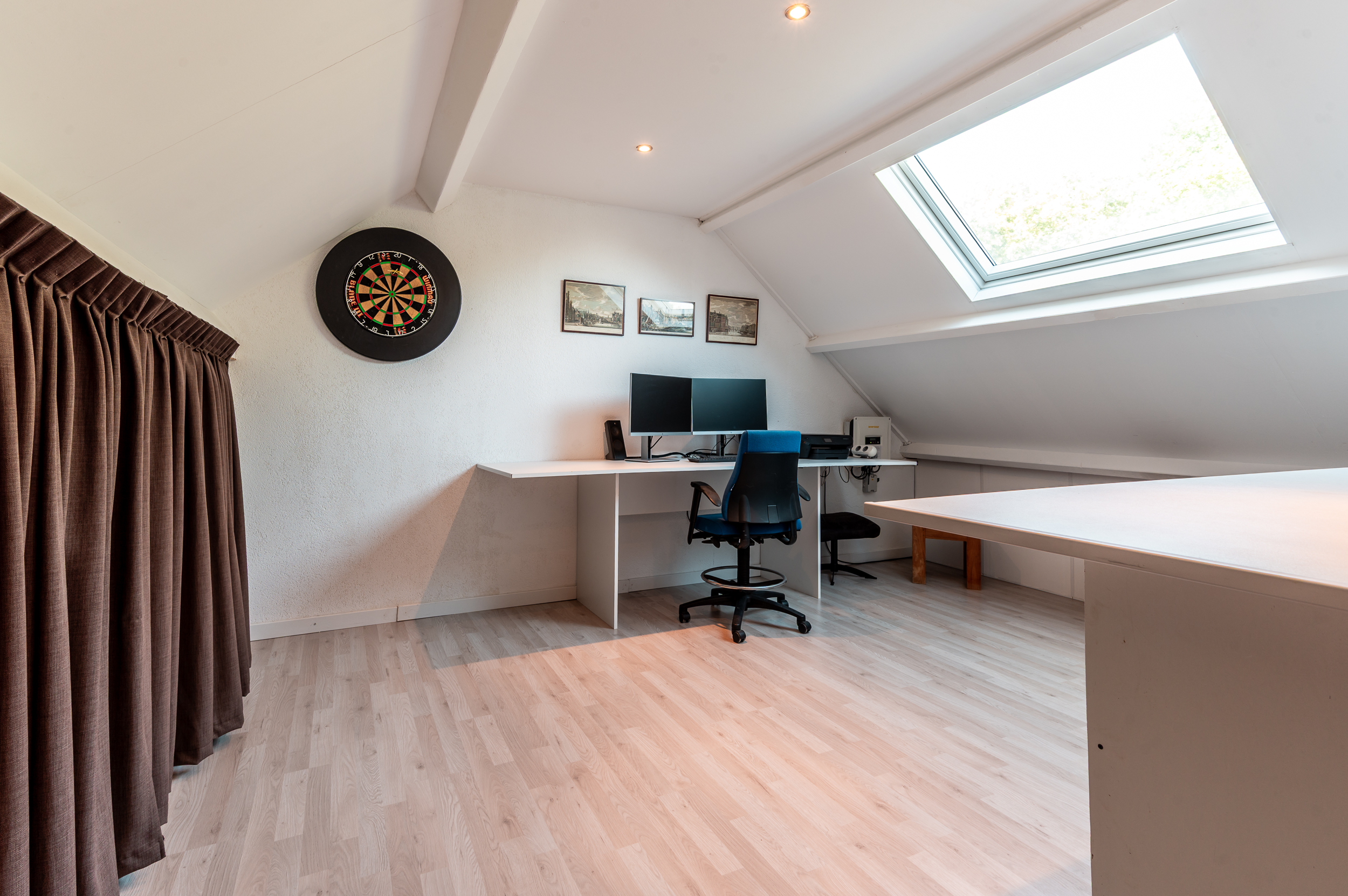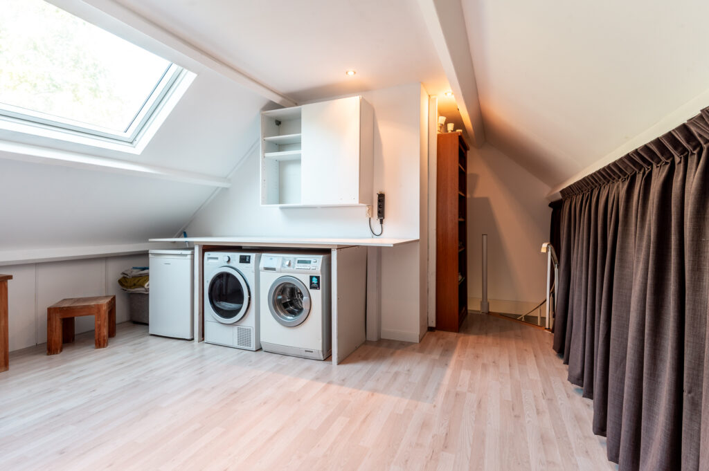 Slaapkamer 3 (ca. 19 m²) voorzien van dakraam, bergruimte, opstelling wassen-/drogen en opstelling CV-ketel.