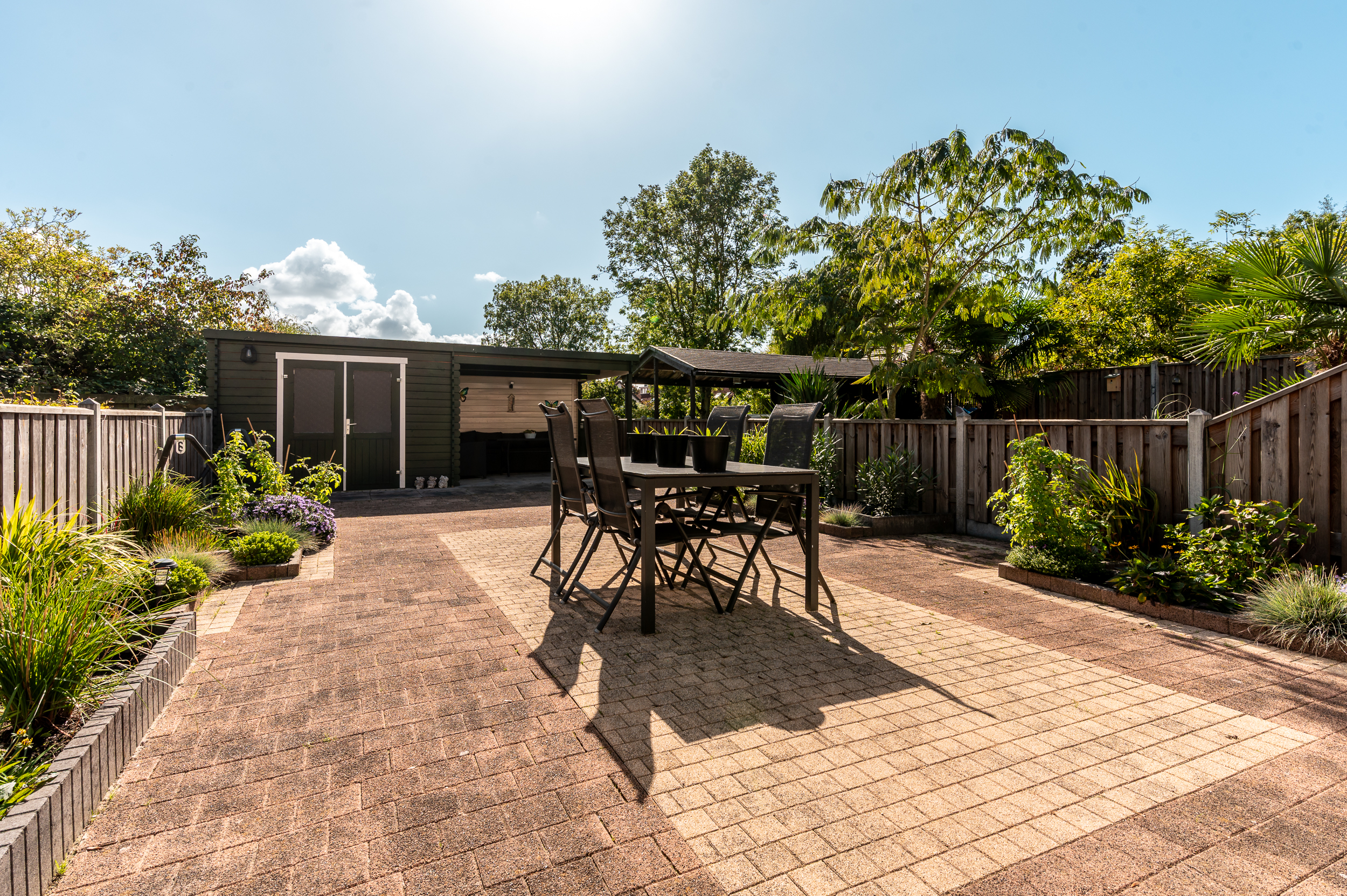 De achtertuin is een ware verrassing: met een afmeting van circa 15 bij 7 meter, gelegen op het zonnige zuiden, geniet u hier volop van rust en privacy. De tuin beschikt over twee overkappingen en doordat er geen directe achterburen zijn, is dit een plek waar u optimaal kunt ontspannen of gezellig kunt samenkomen met familie en vrienden.