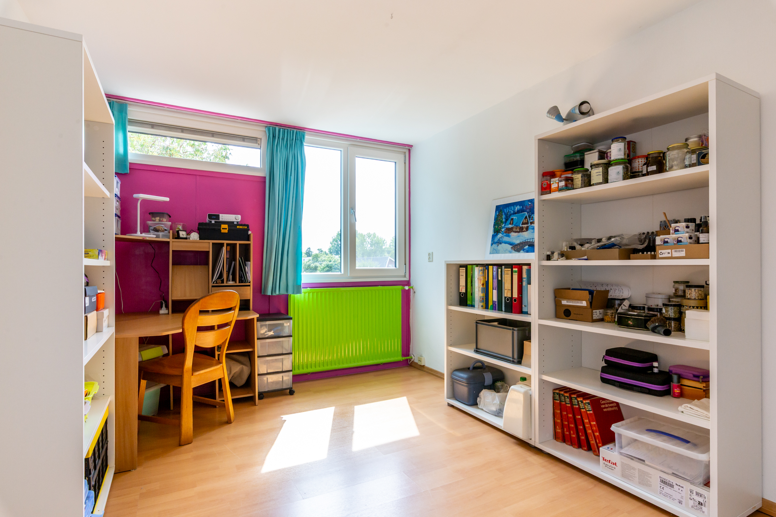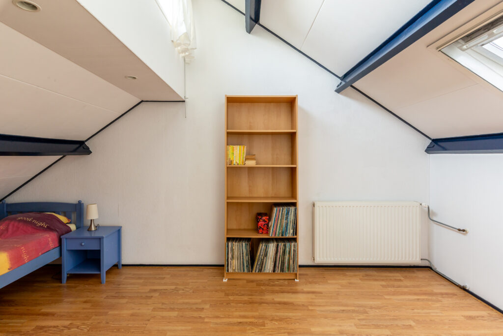 Ruime en lichte overloop met opstelplaats voor de cv-ketel (2016, eigendom). Dankzij de hoge nok en de raampartijen bovenin voelt deze verdieping extra ruim en licht aan. De overloop biedt voldoende plek voor het creëren van een werkplek of kantoor aan huis, en kan desgewenst ook worden ingericht als vijfde slaapkamer.