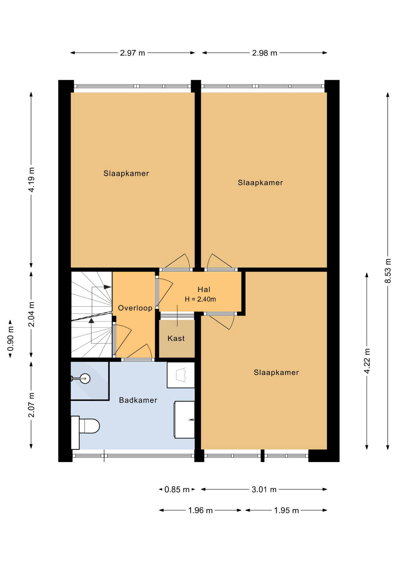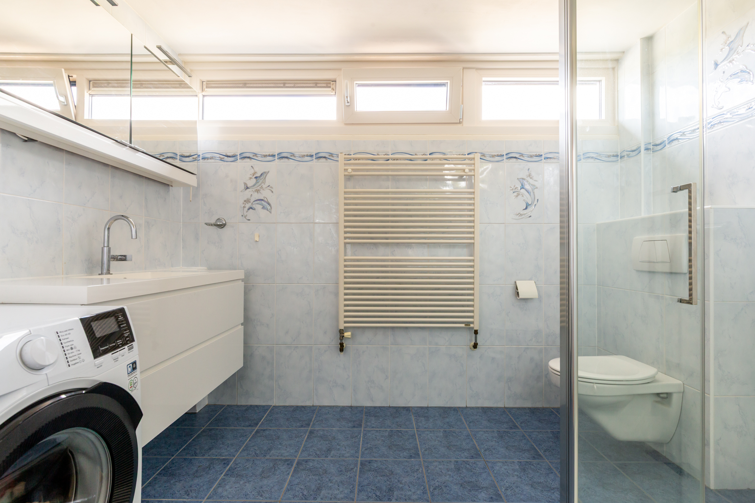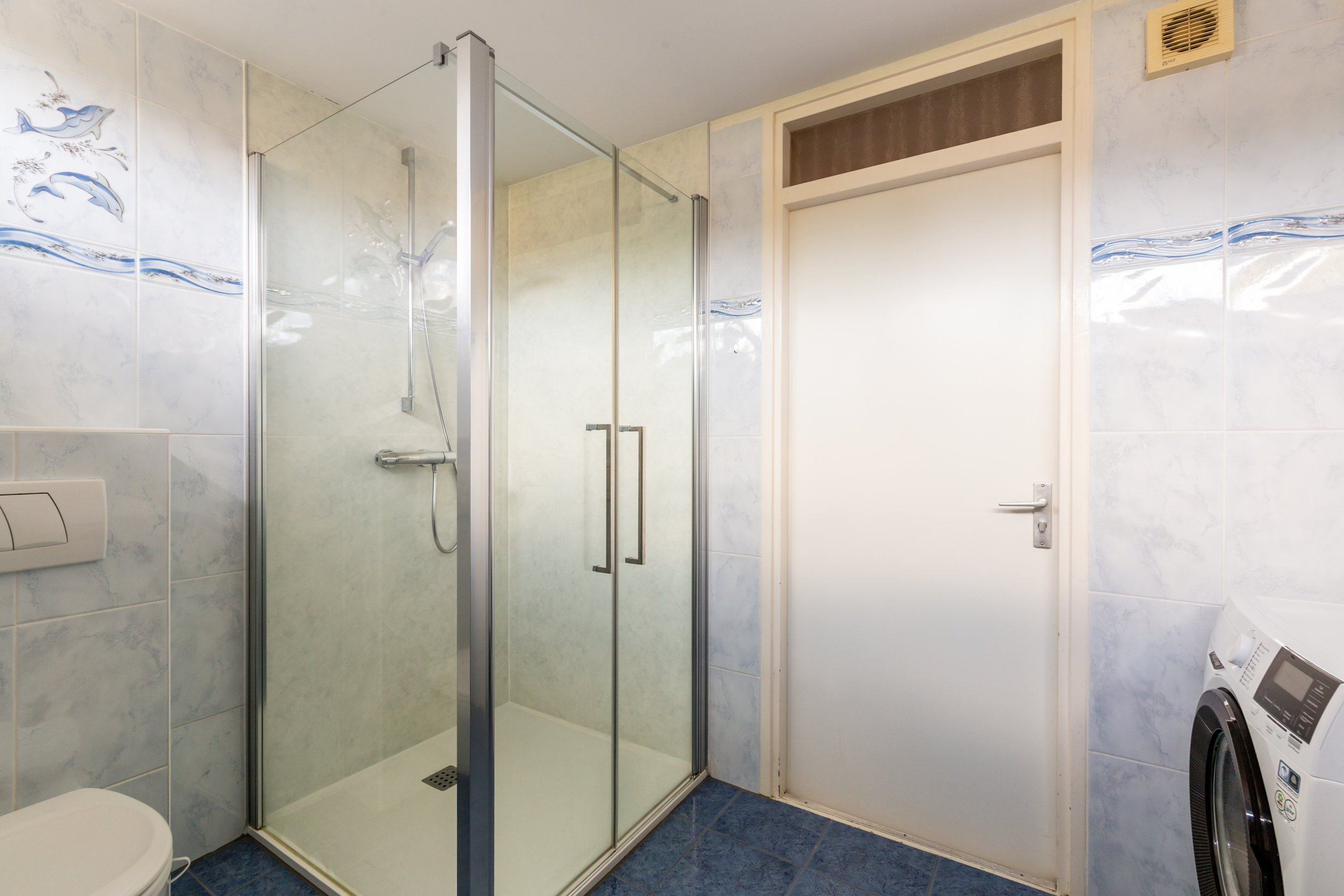 Overloop met bergkast en toegang tot de badkamer en drie ruime, goed ingedeelde slaapkamers (ca. 12 / 12 / 12 m²), waarvan één is voorzien van een ingebouwde kledingkast. De volledig betegelde badkamer is netjes uitgevoerd en beschikt over een inloopdouche, vrijhangend toilet, wastafelmeubel met spiegelkasten, opstelplaats voor de wasmachine, designradiator en een raam voor natuurlijke ventilatie en daglicht.