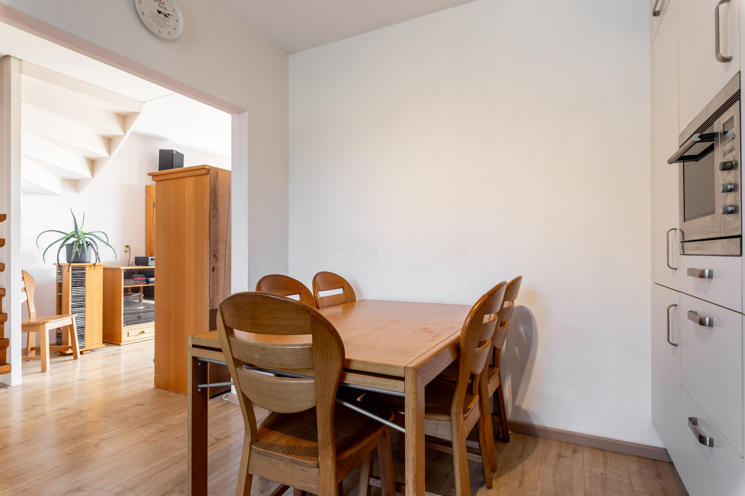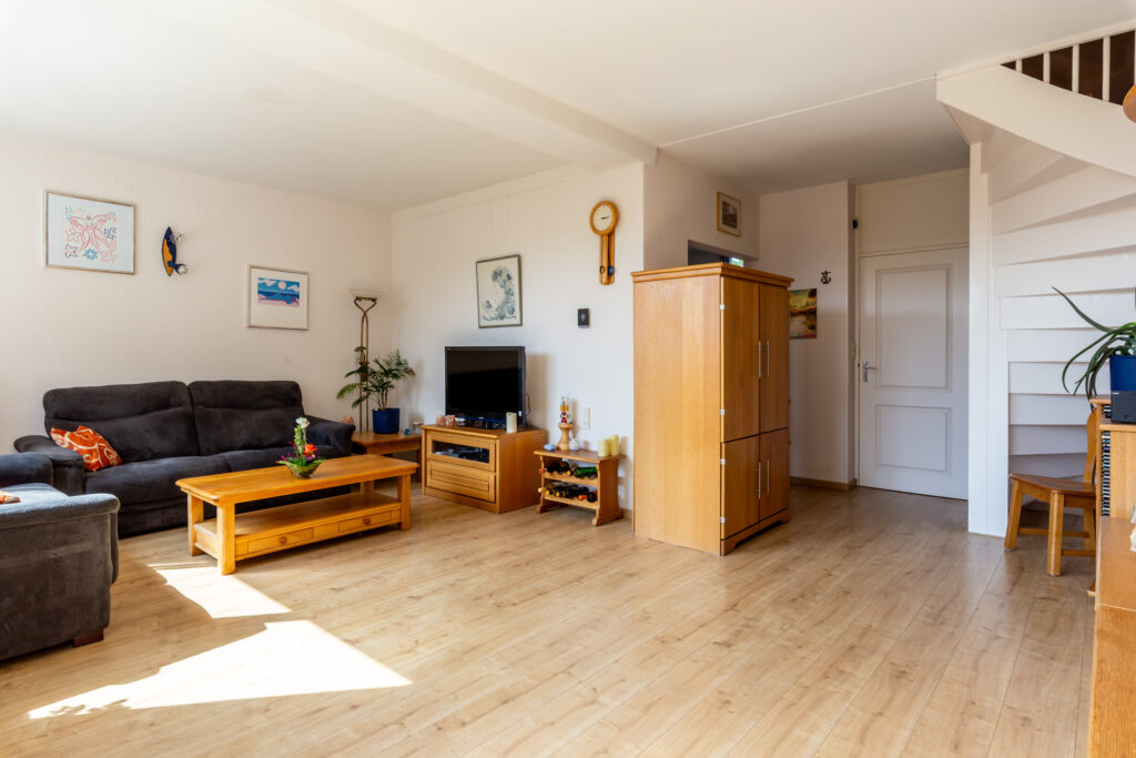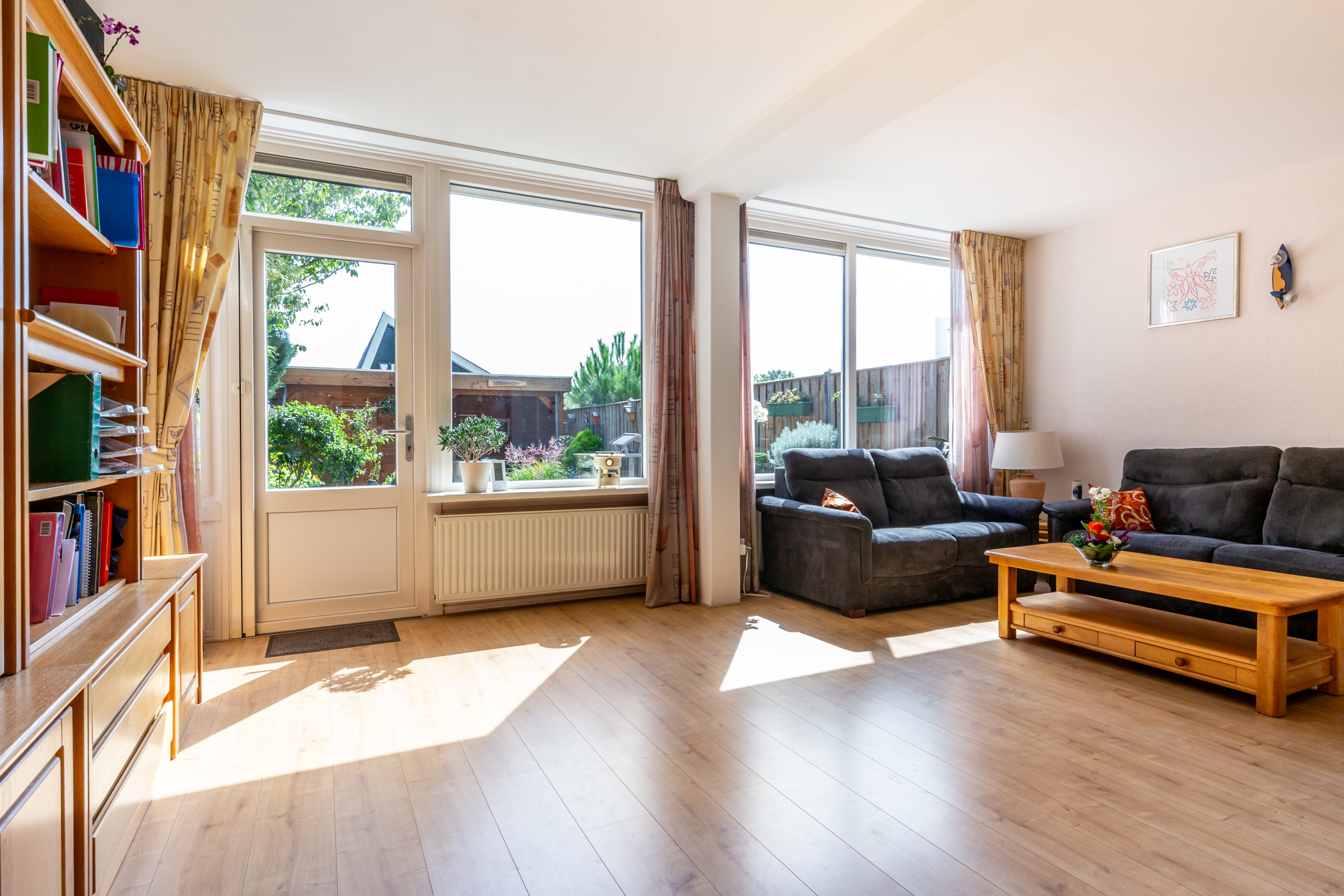 De begane grond is afgewerkt met een keurige laminaatvloer en de ramen aan de achterzijde zijn voorzien van screens.