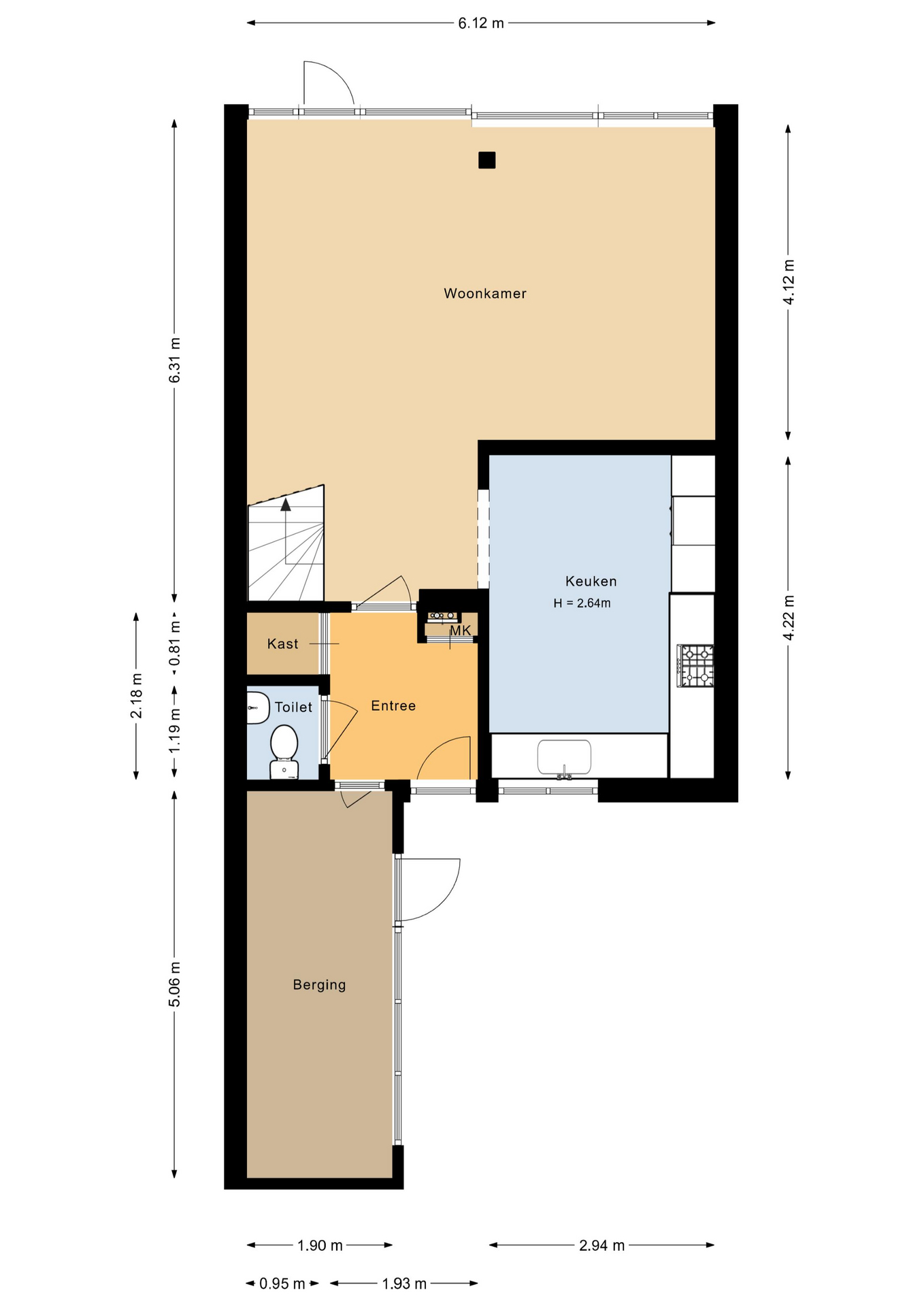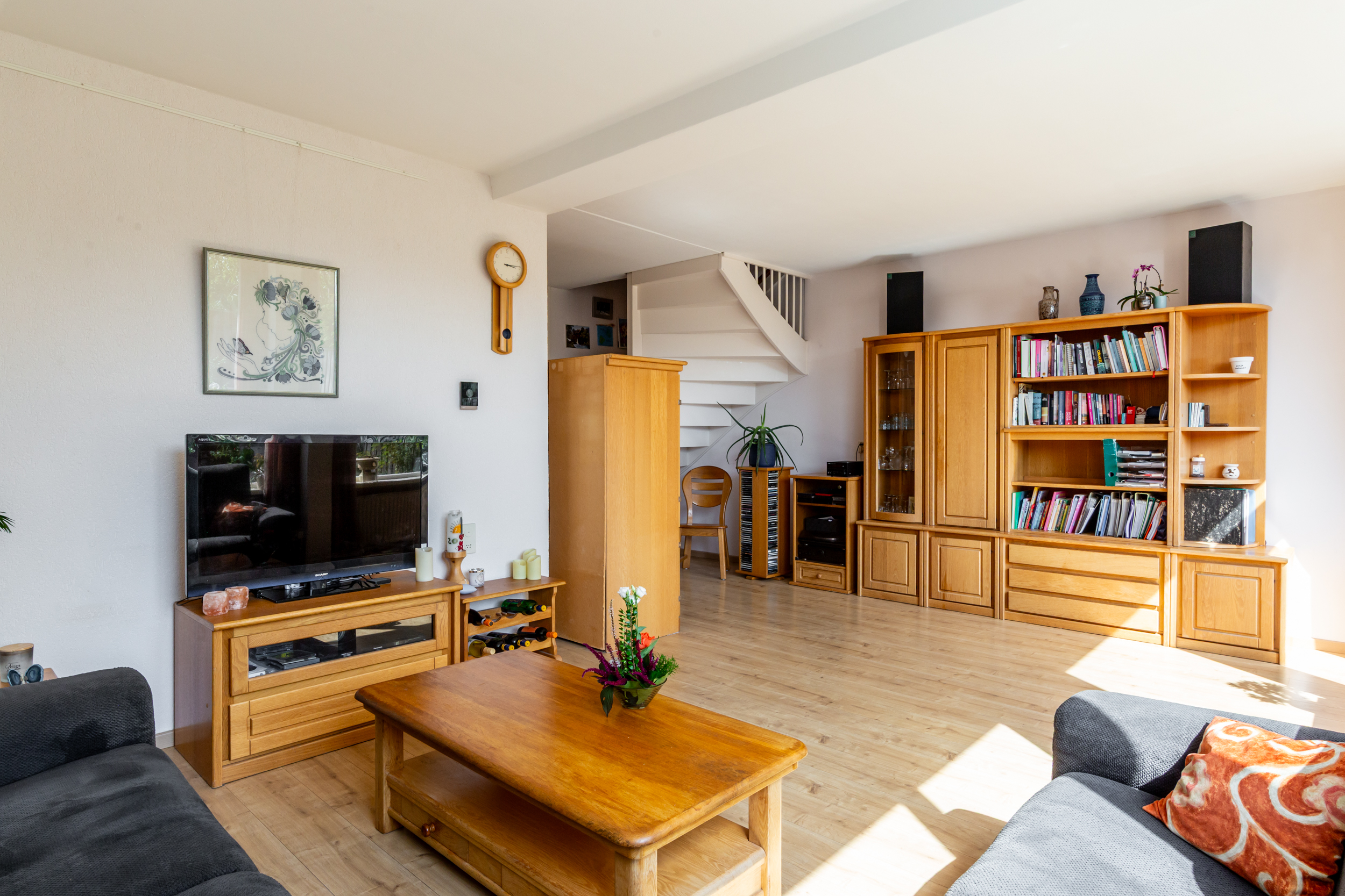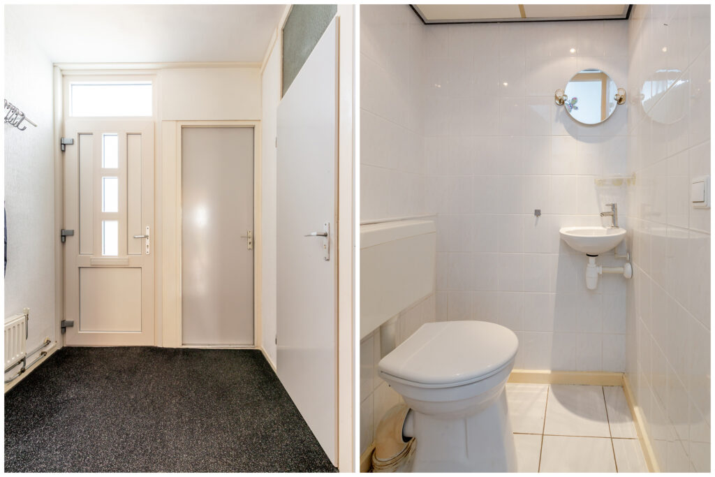 Ruime entree/hal met meterkast, toilet met fonteintje, extra kastruimte en toegang tot de royale inpandige berging (ca. 5 x 2 m) en de woonkamer. De tuingerichte woonkamer is ruim opgezet en kenmerkt zich door de grote raampartijen en prettige lichtinval. Daarnaast biedt deze volop mogelijkheden voor het plaatsen van een royale zithoek en eettafel. Vanuit de woonkamer is er toegang tot de trapopgang naar de eerste verdieping.