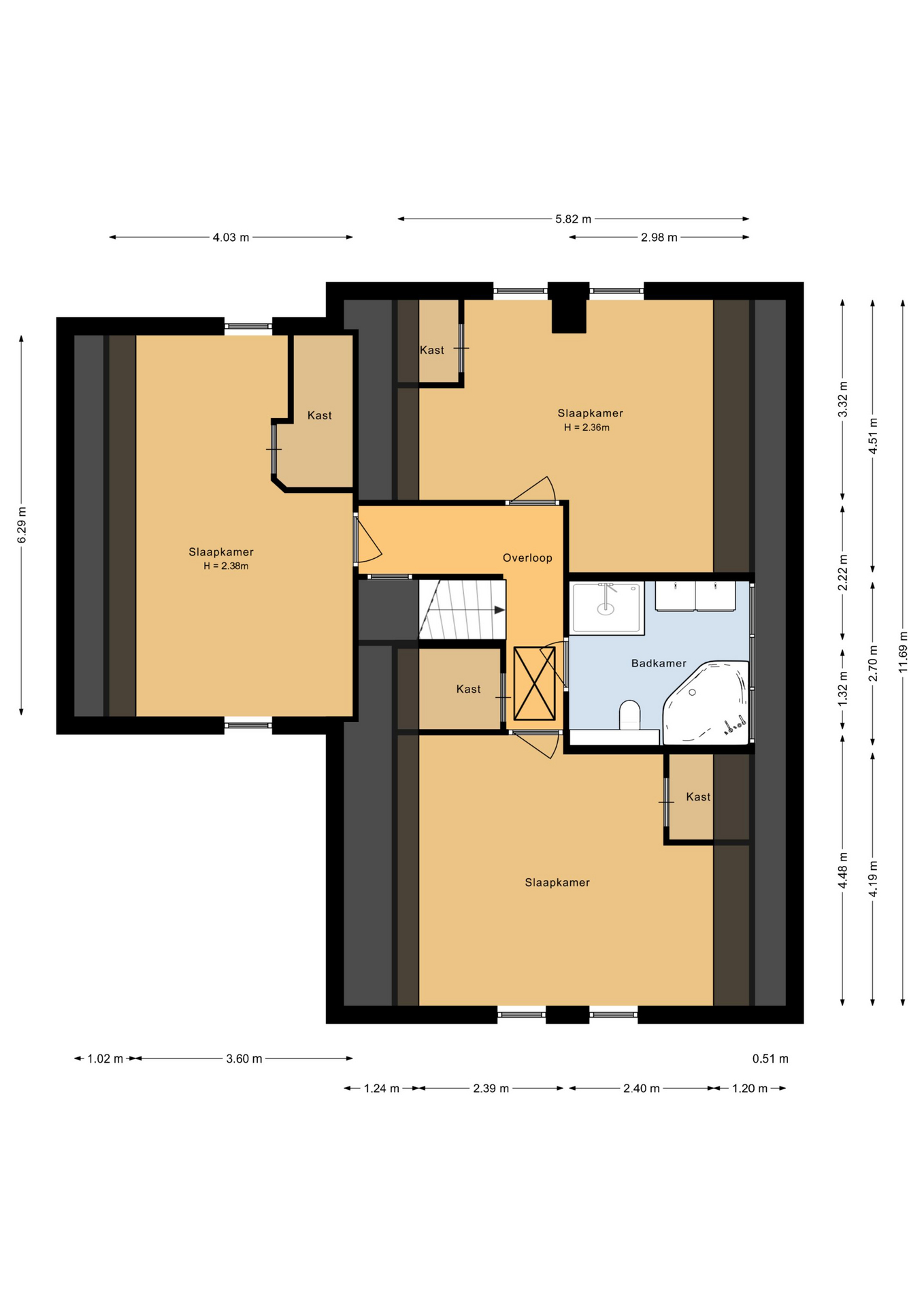 Ruime overloop met een praktische bergkast en toegang tot diverse vertrekken. De verdieping is voorzien van 3 ruime slaapkamers (ca. 22 / 21 / 19 m2), welke allen voorzien zijn van een ingebouwde kastenwand. De slaapkamers zijn dermate ruim, dat de mogelijkheid bestaat om 4 of 5 slaapkamers te realiseren. De moderne badkamer (2016) is vergroot middels een dakkapel en voorzien van een ligbad/whirlpool, douche, wastafelmeubel, 2e toilet, een designradiator en een raam voor de natuurlijke ventilatie. De verdieping is voorzien van een fraaie laminaatvloer.
