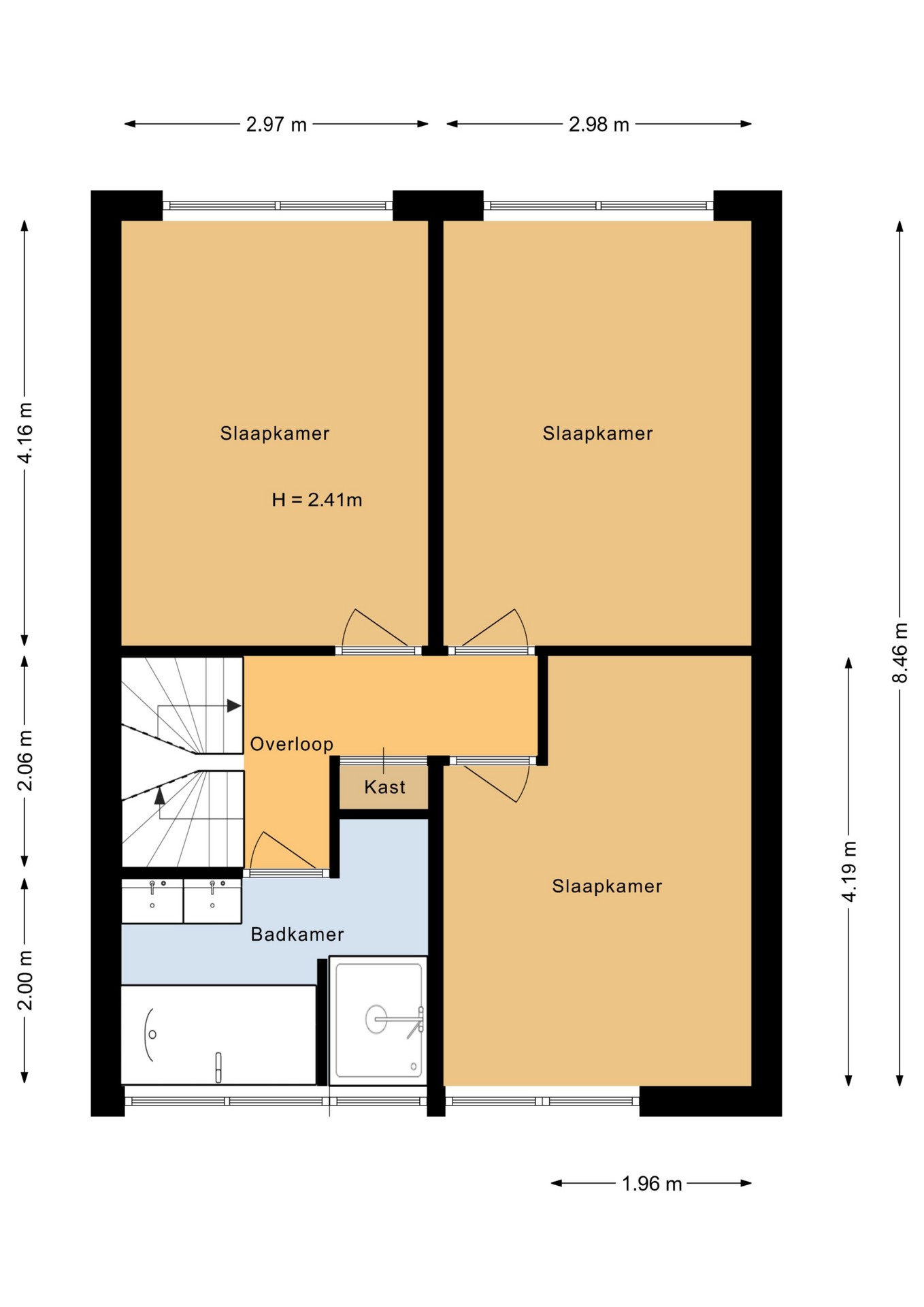 Op de eerste verdieping vindt u drie ruime slaapkamers, allen goed van formaat en netjes afgewerkt. De badkamer is compleet uitgevoerd en biedt alles wat u nodig heeft: een ligbad, een aparte douche, een toilet en een dubbele wastafel met modern meubel – ideaal voor het drukke gezinsleven.